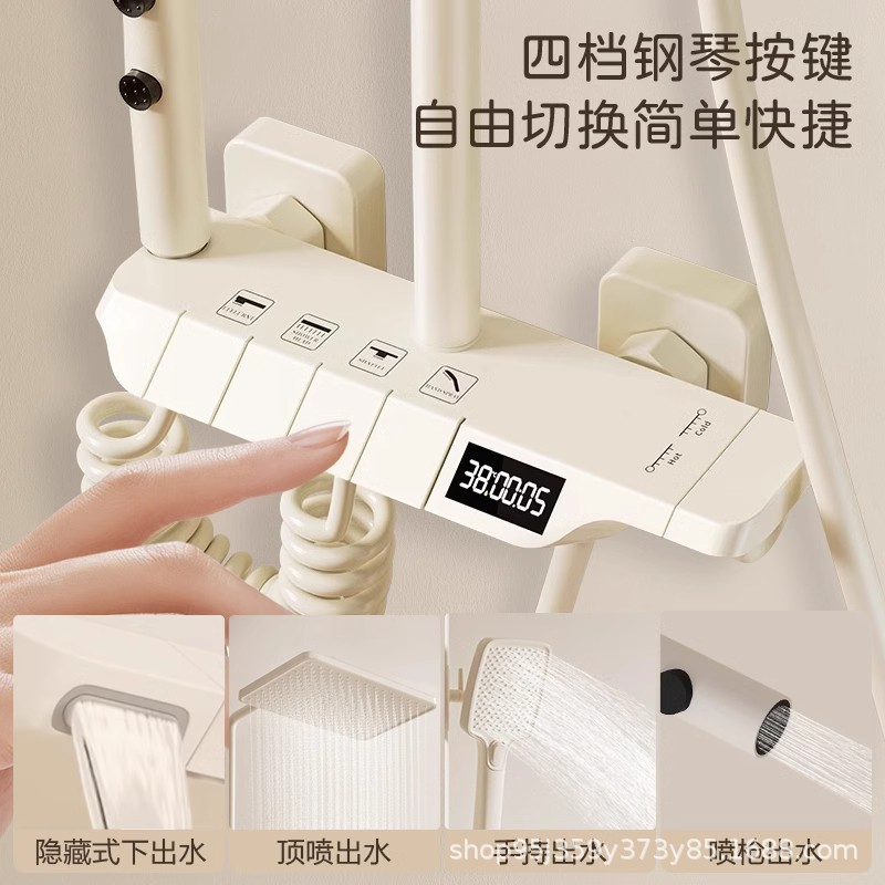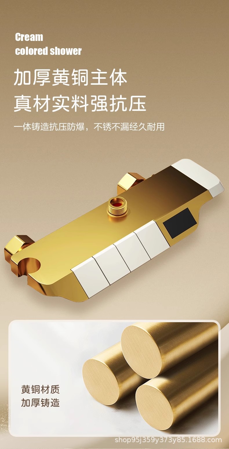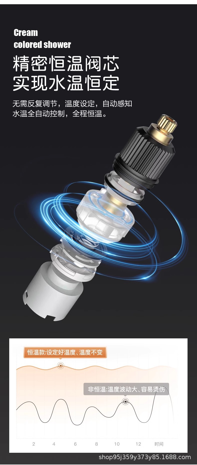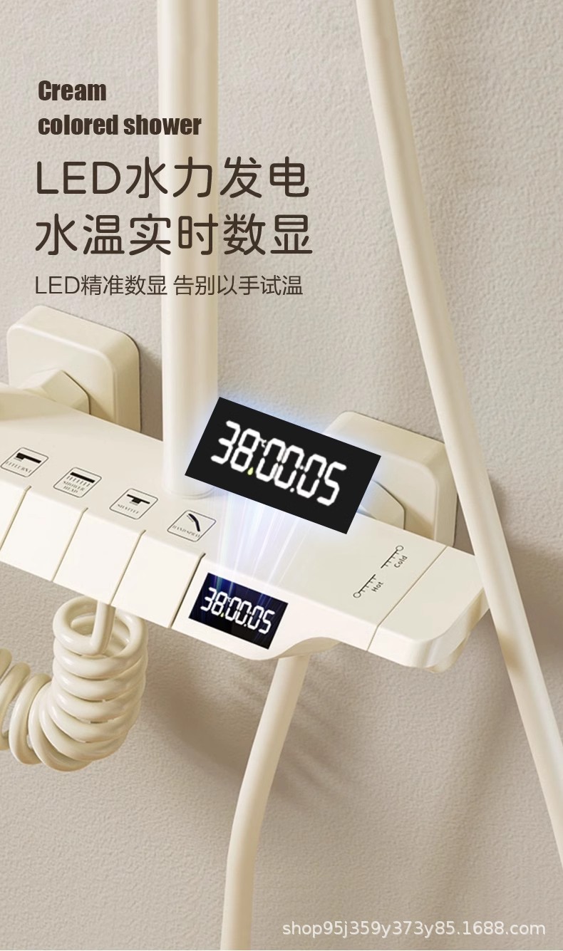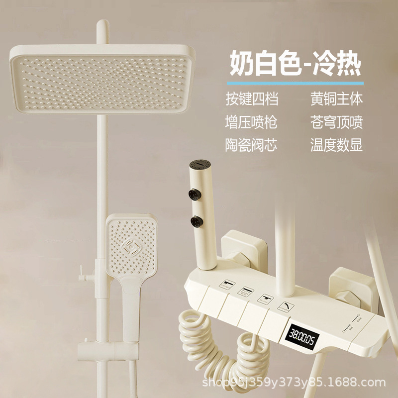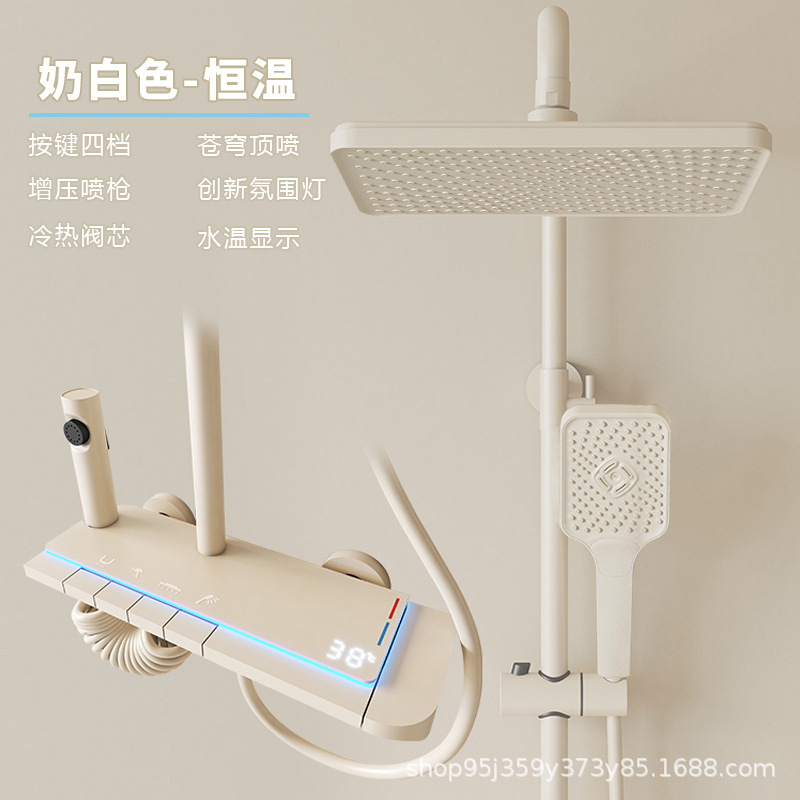 奶白家用氛围灯恒温数显淋浴花洒套装卫生间全铜增压淋雨沐浴喷枪