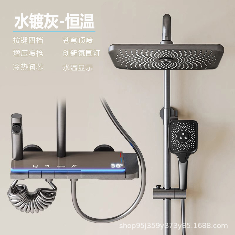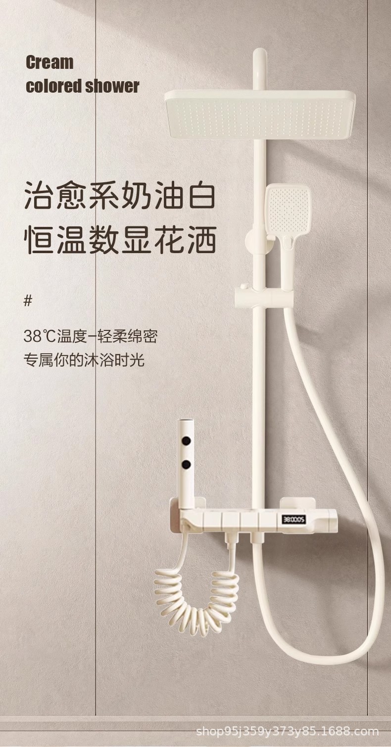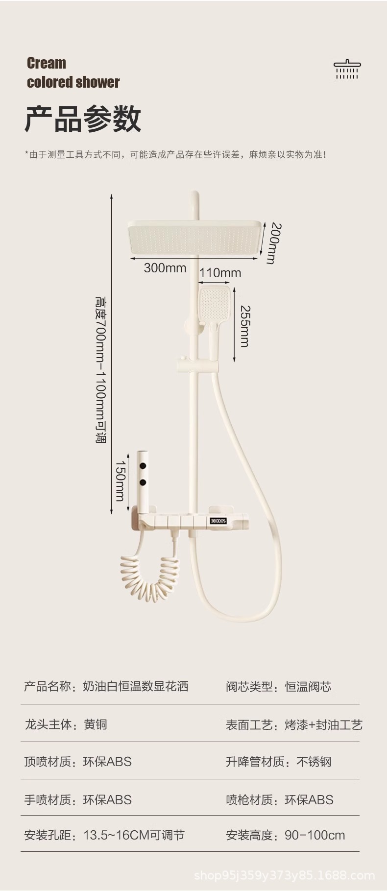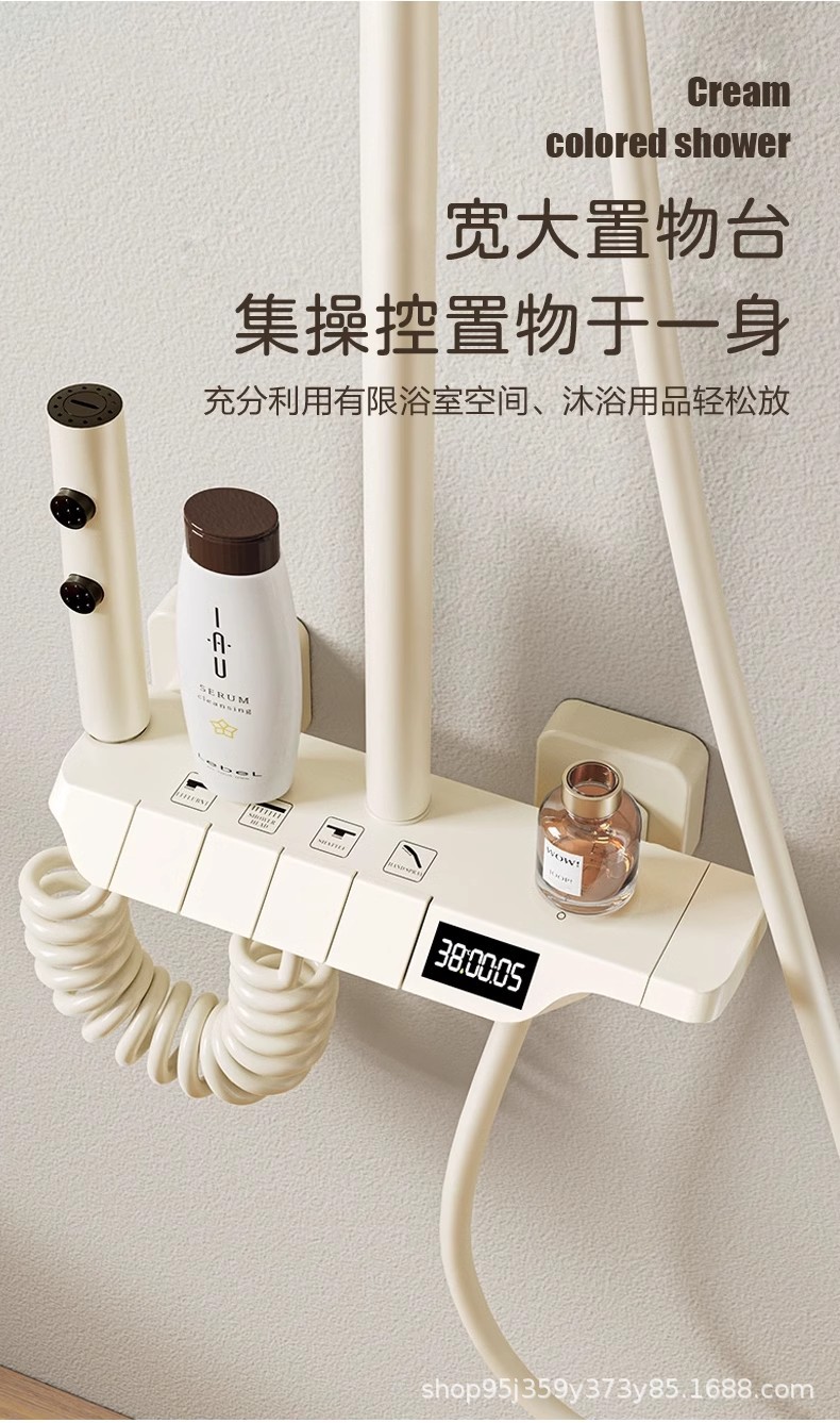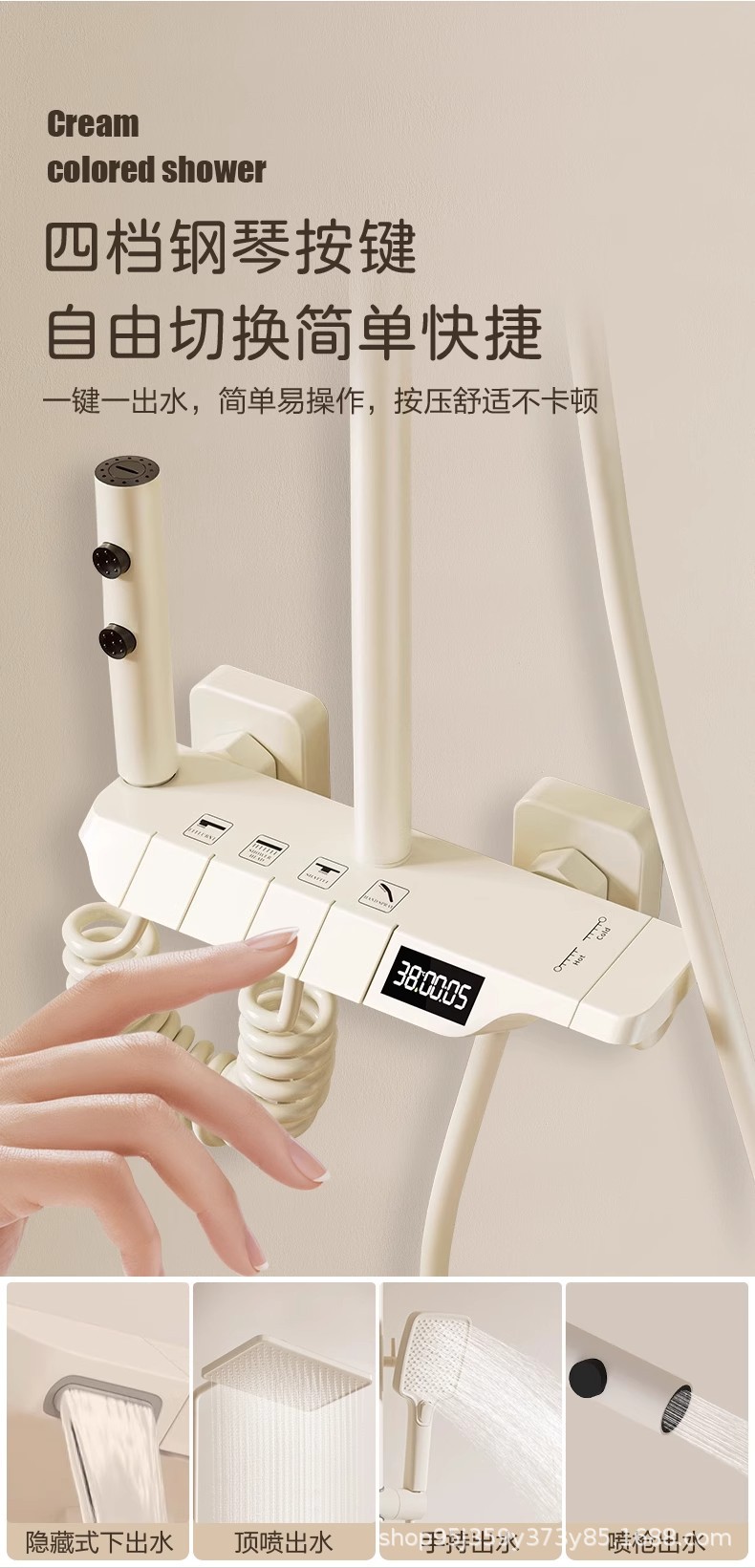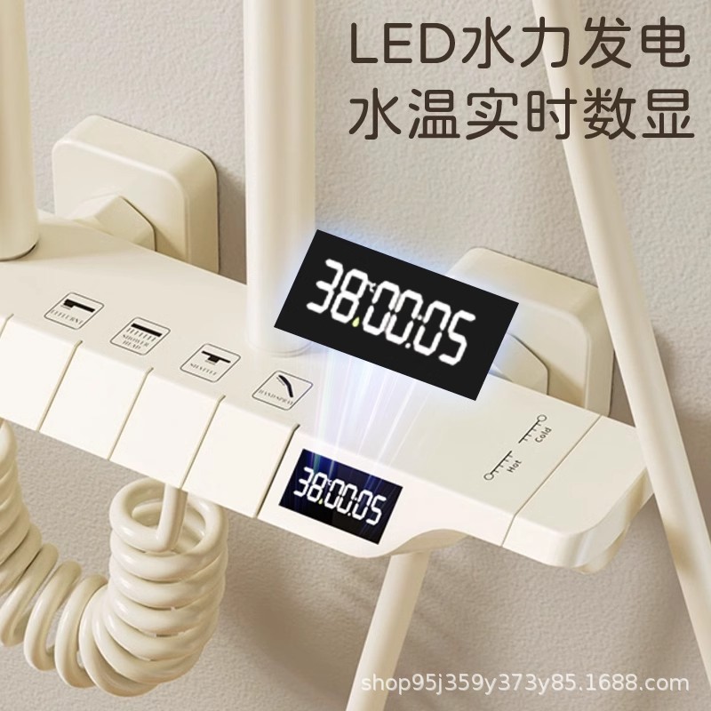 奶白家用氛围灯恒温数显淋浴花洒套装卫生间全铜增压淋雨沐浴喷枪