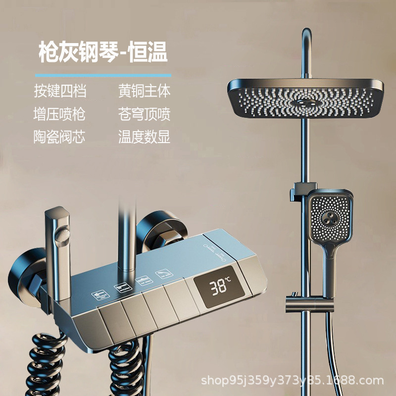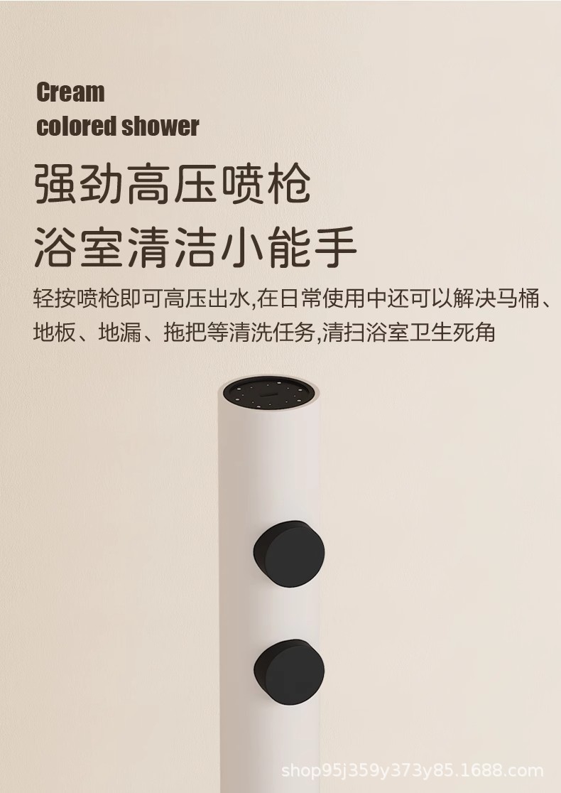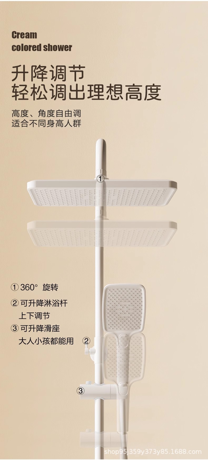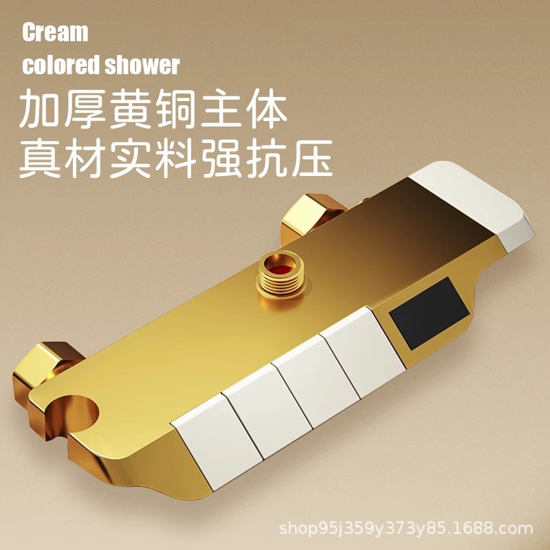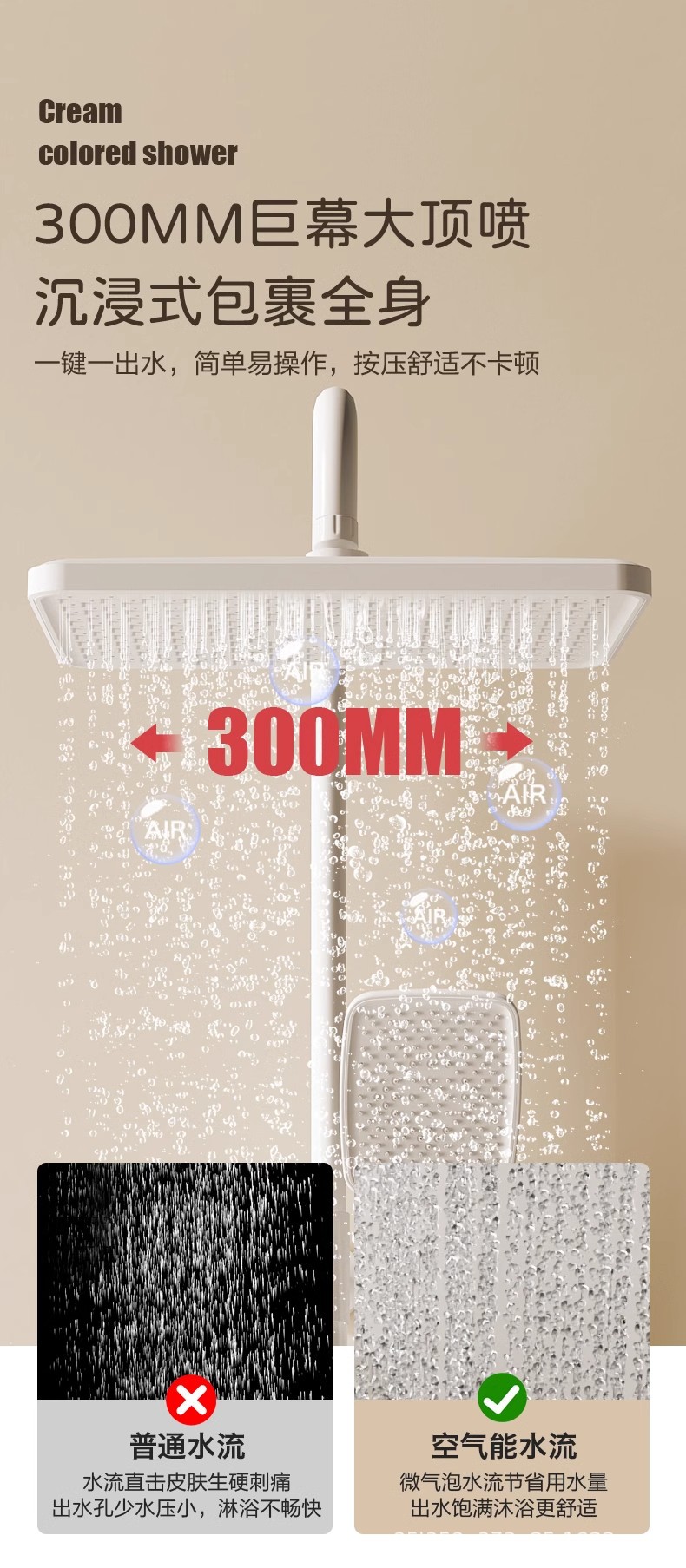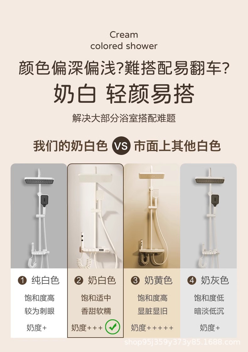 奶白家用氛围灯恒温数显淋浴花洒套装卫生间全铜增压淋雨沐浴喷枪