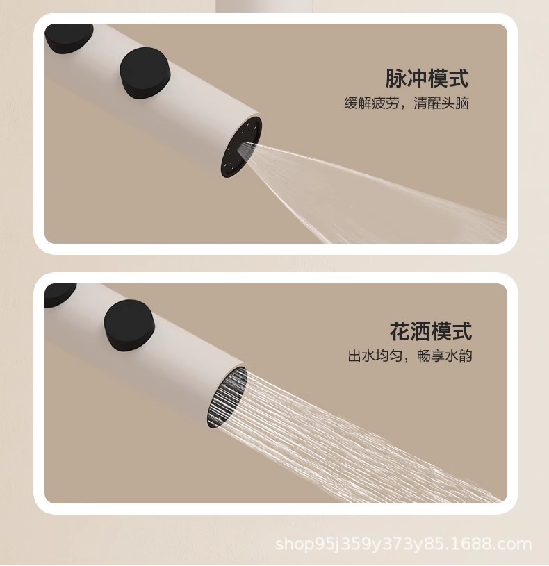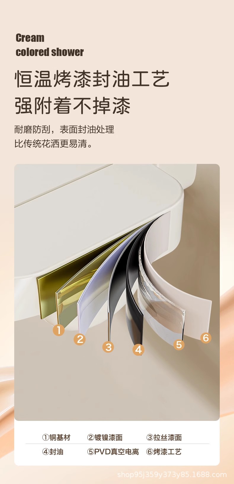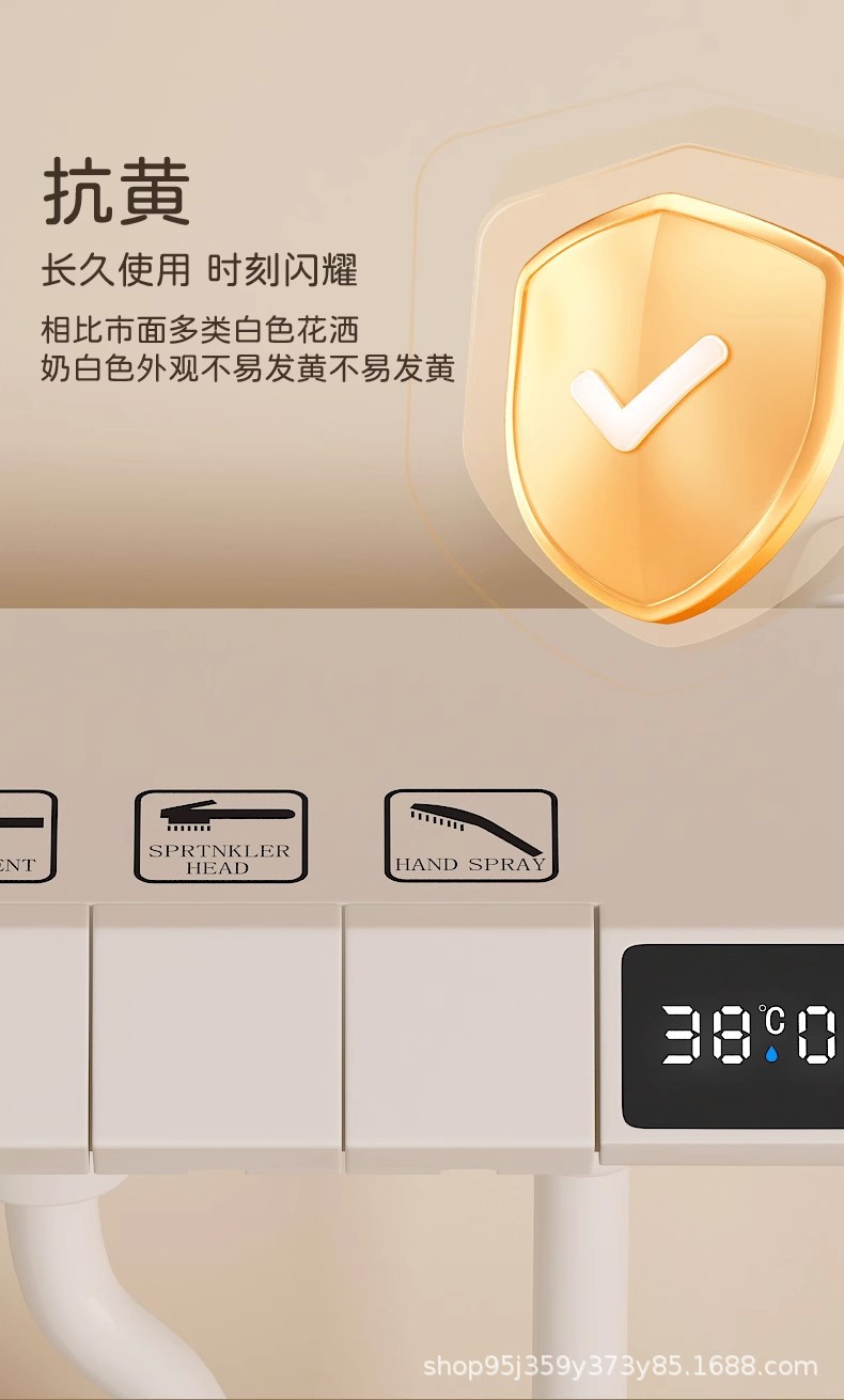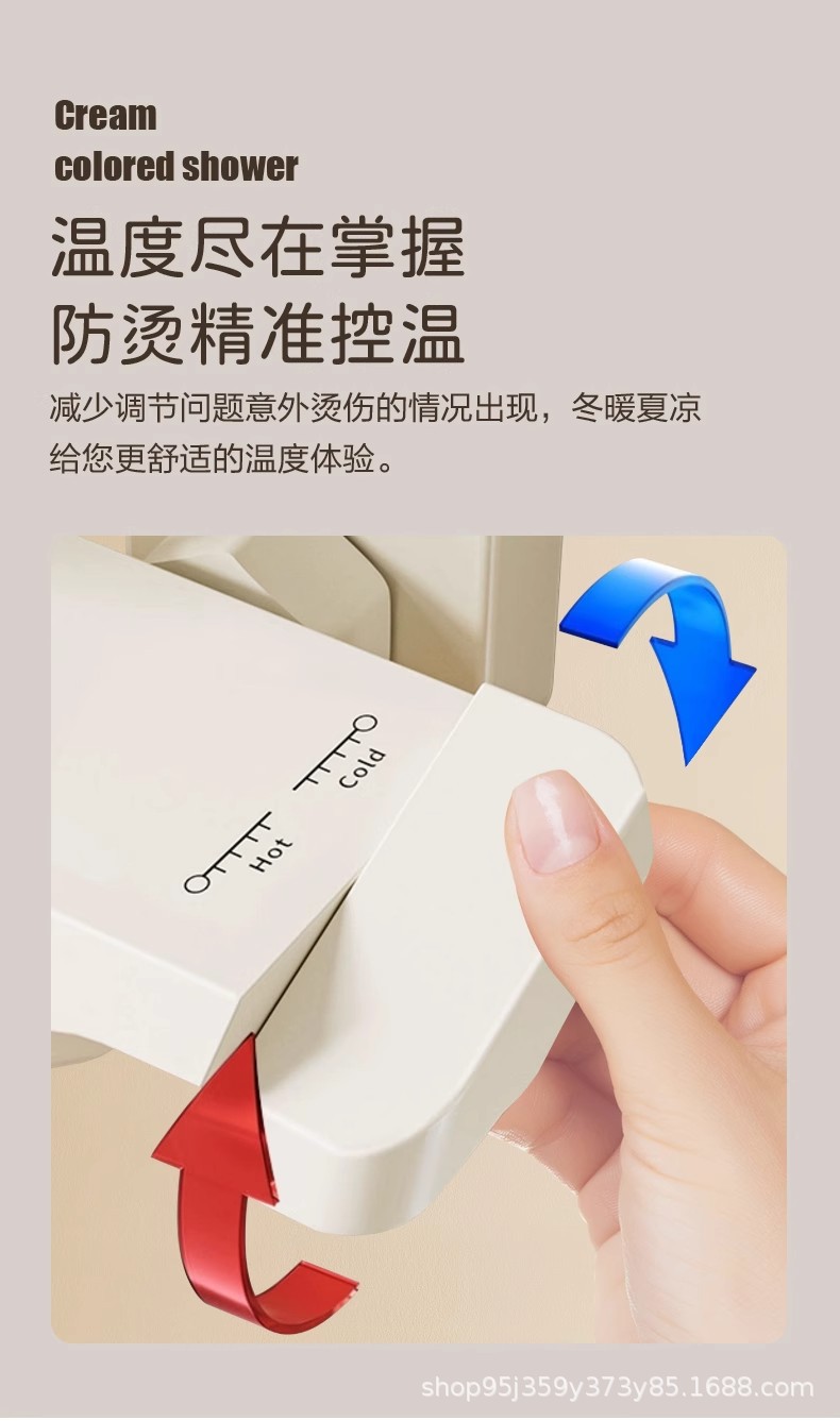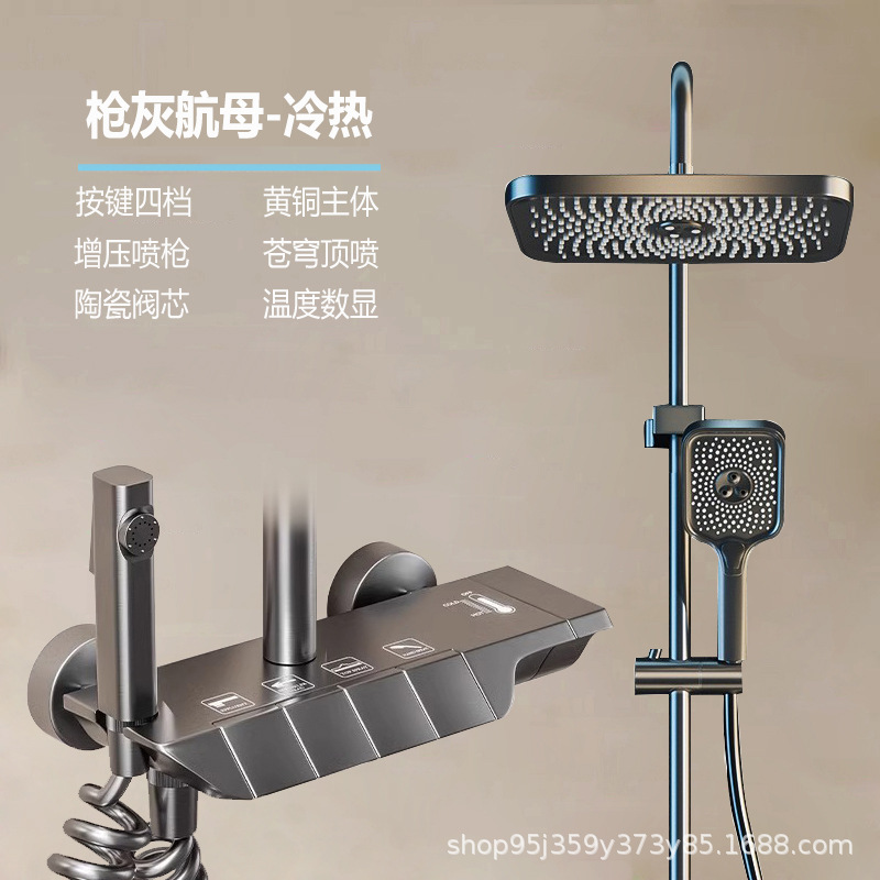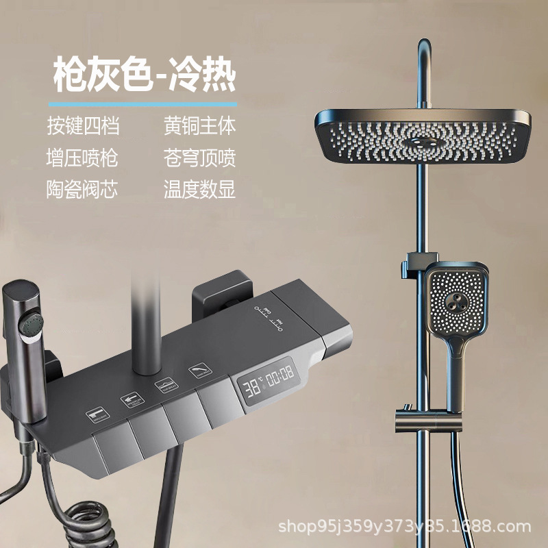 奶白家用氛围灯恒温数显淋浴花洒套装卫生间全铜增压淋雨沐浴喷枪
