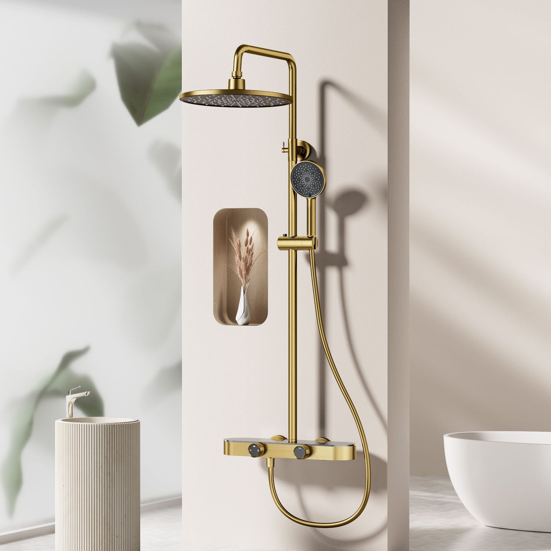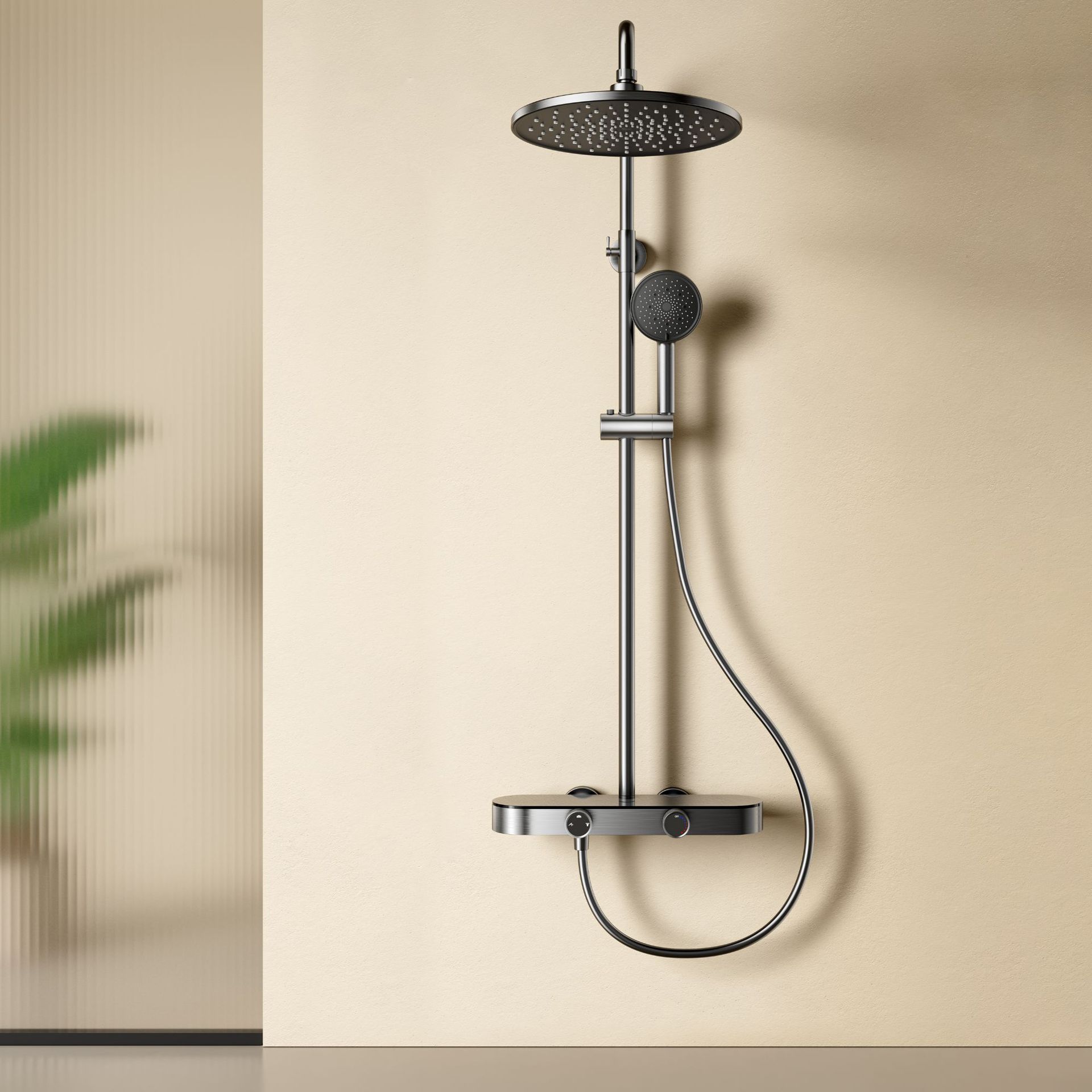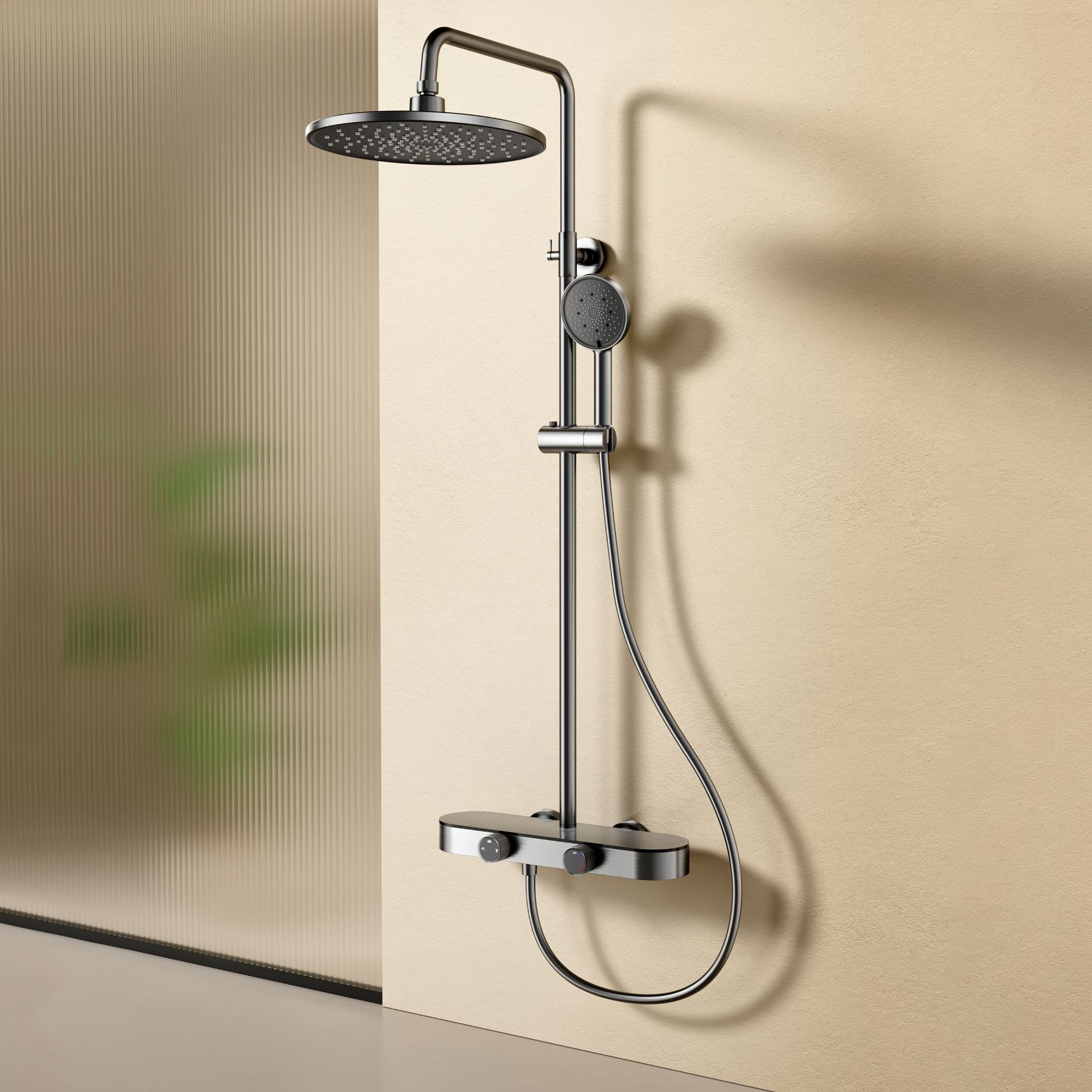 跨境简约304不锈钢三功能瀑布出水口 家用浴室花洒套装淋浴全套