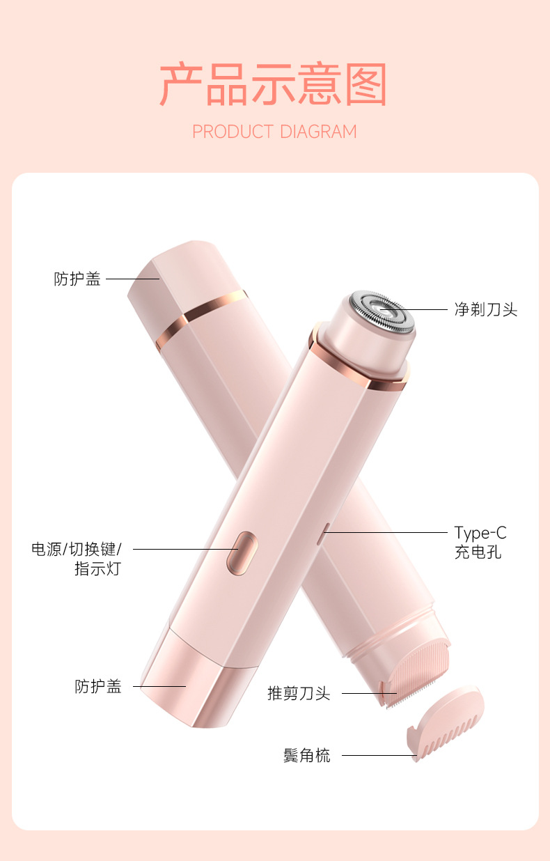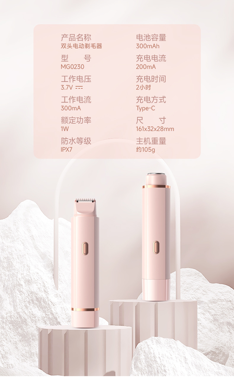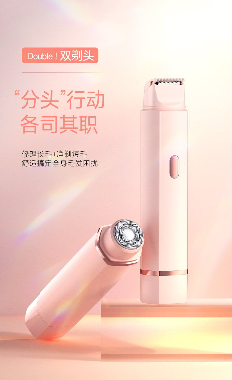 跨境爆款双头二合一女士私密剃毛器电动阴毛刮毛器全身毛发剃毛器