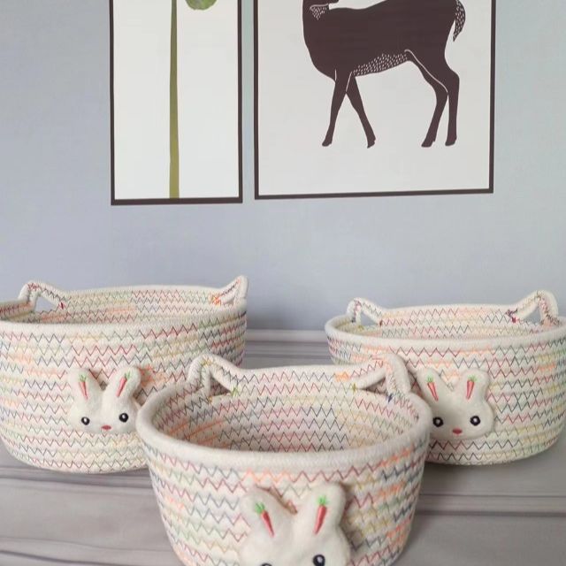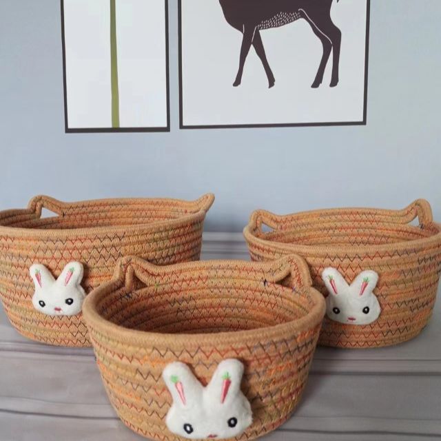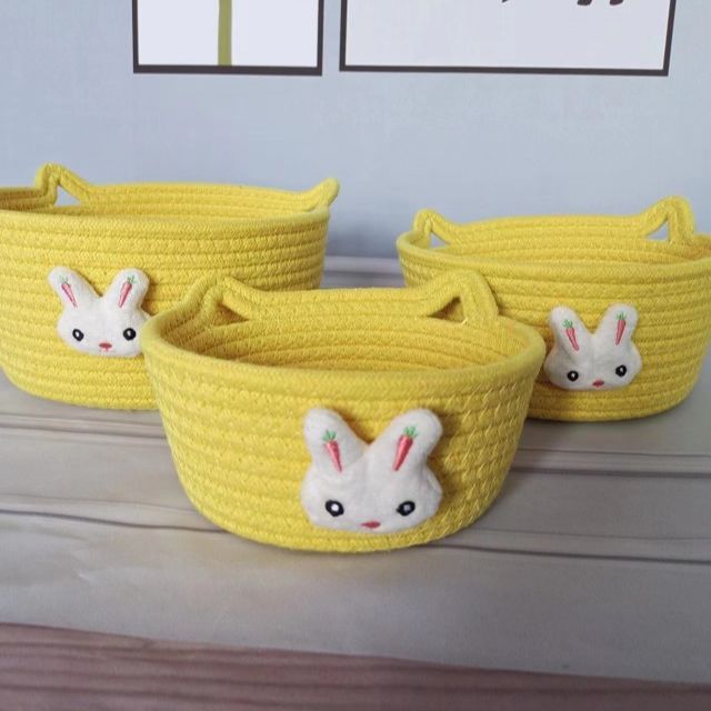 桌面玄关放钥匙小收纳编织筐卡通可爱杂物篮装饰遥控器钥匙收纳篮