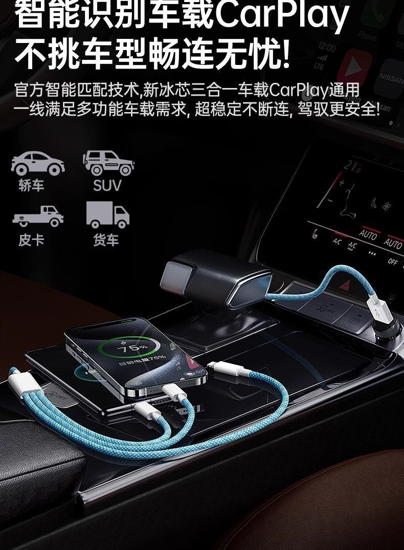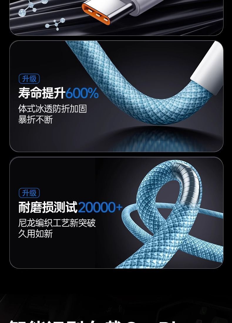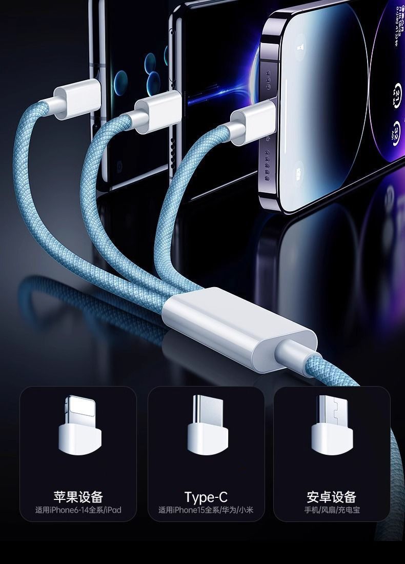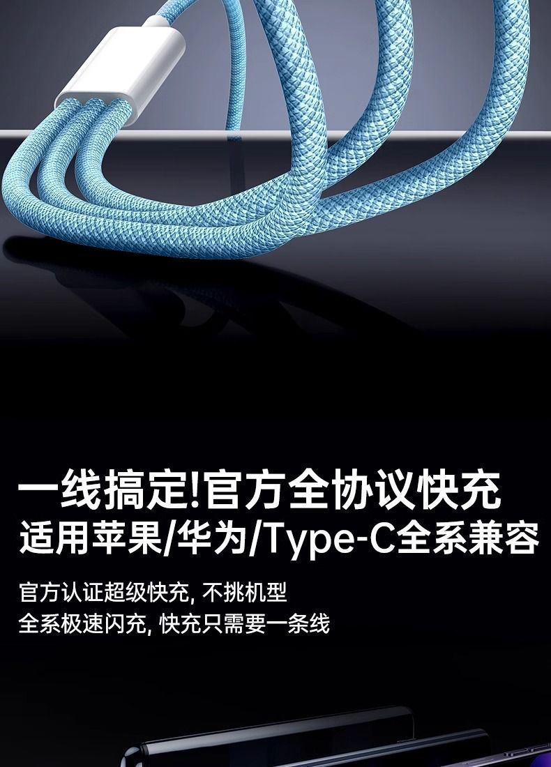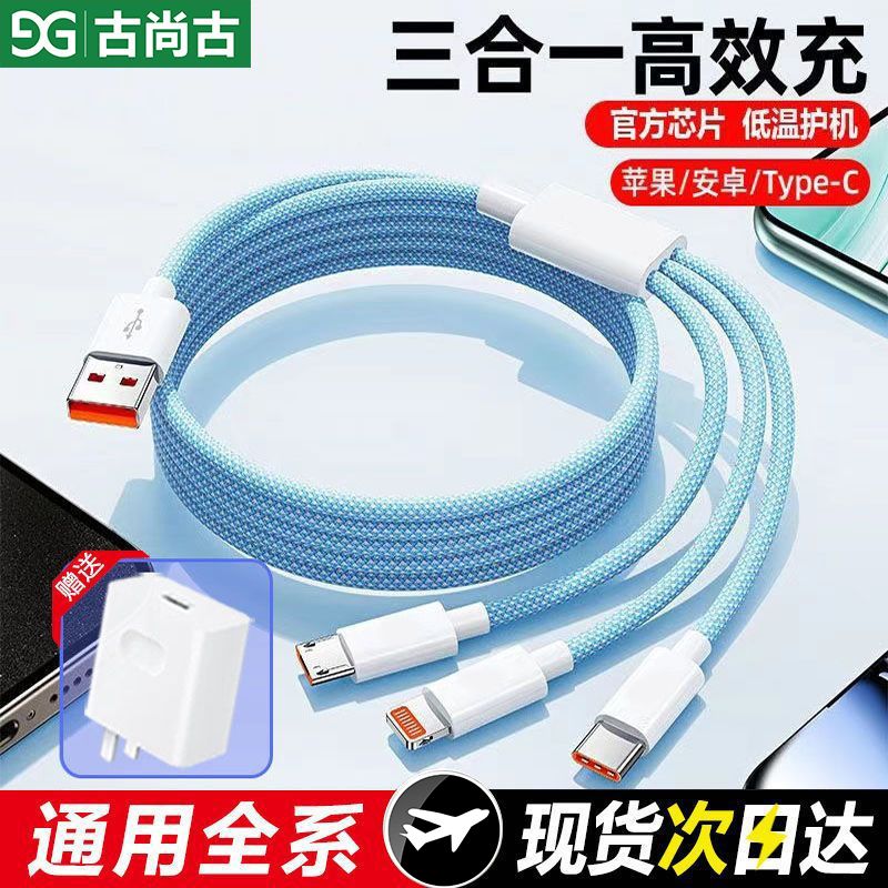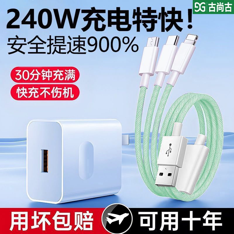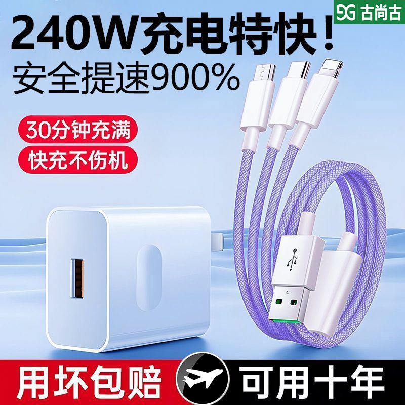 古尚古【赠快充头】240W超级快充一拖三编织数据线适用华为三合一
