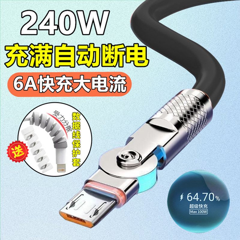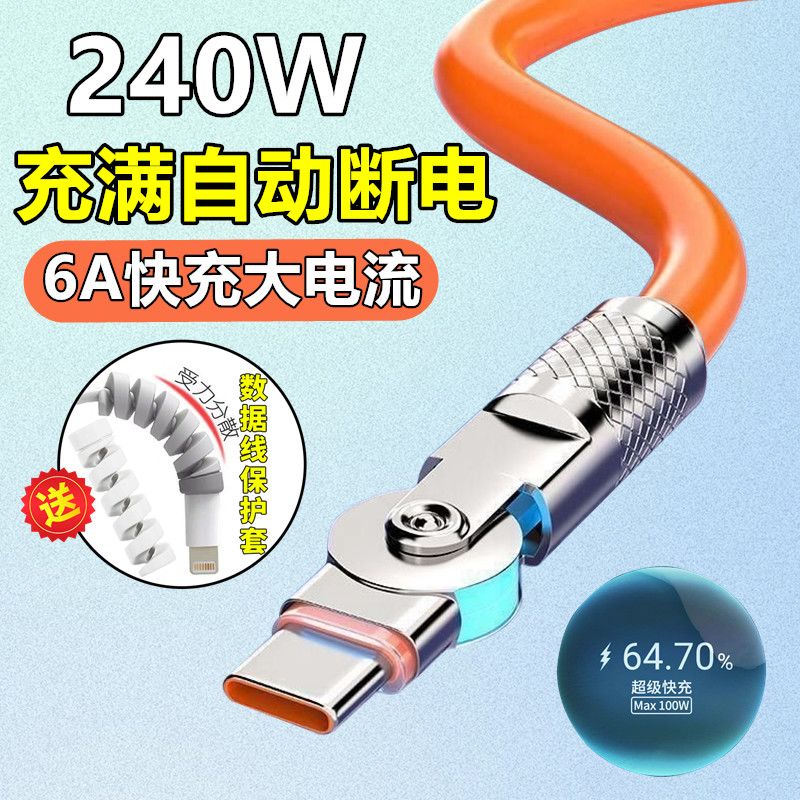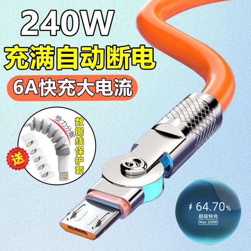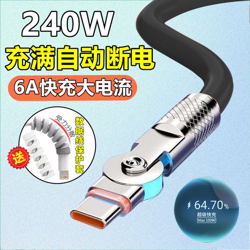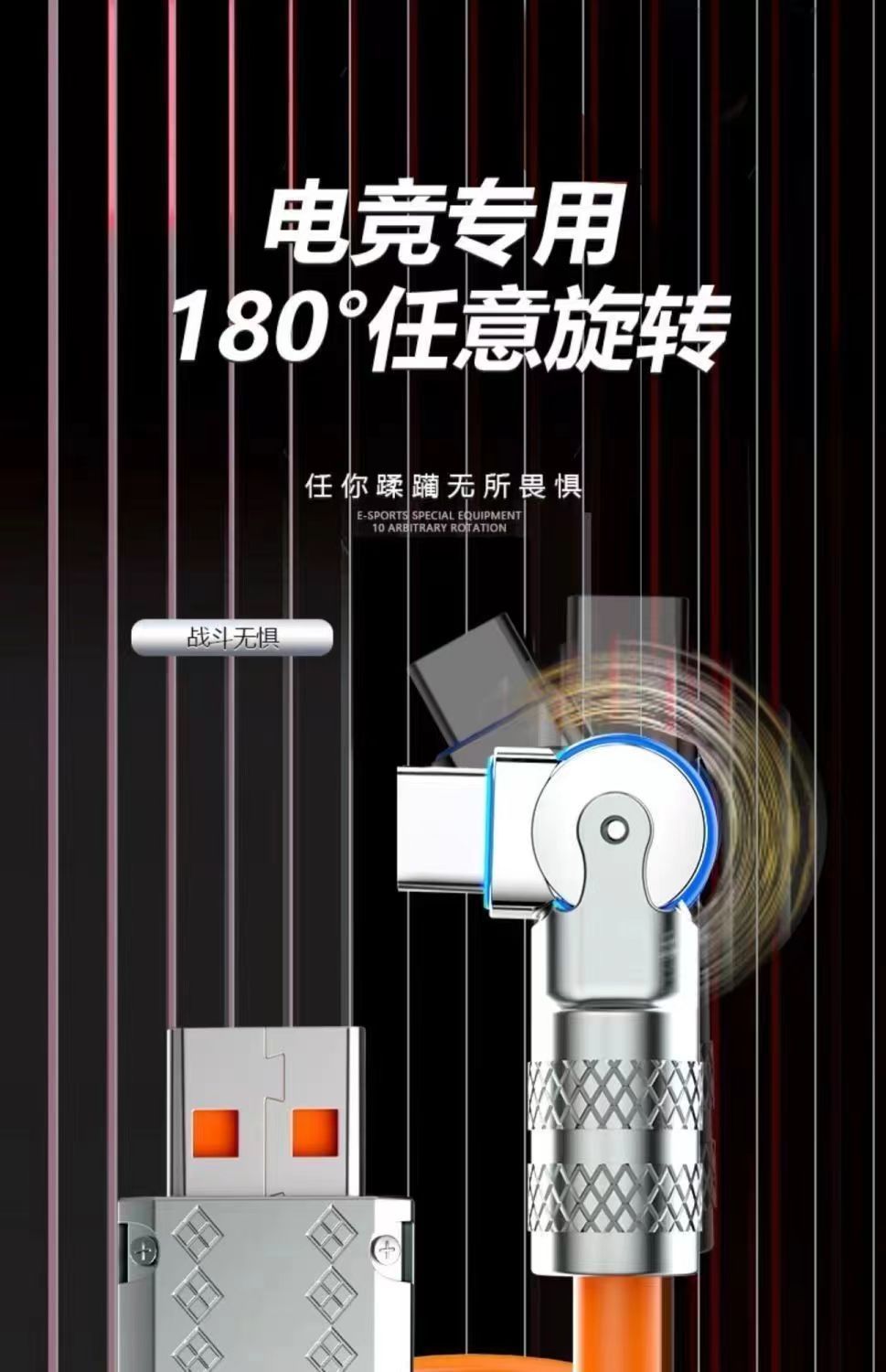 6A安卓充电线typec快充线180旋转弯头适用华为OPPO荣耀vivo数据线