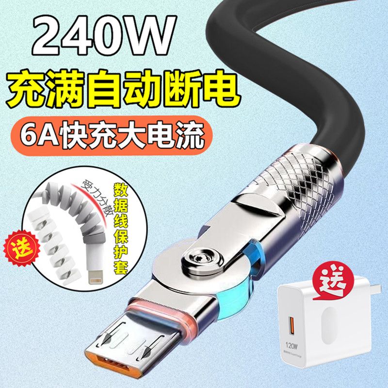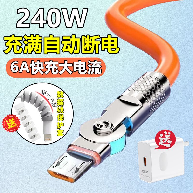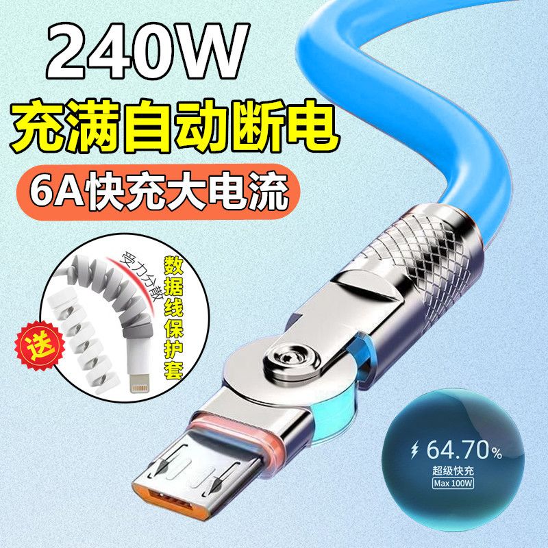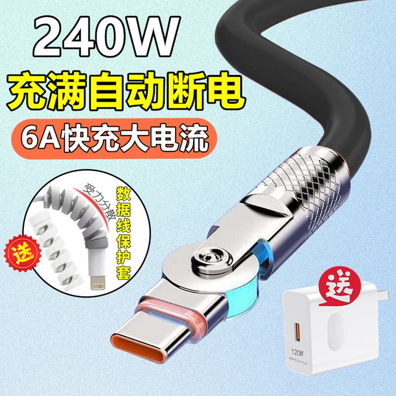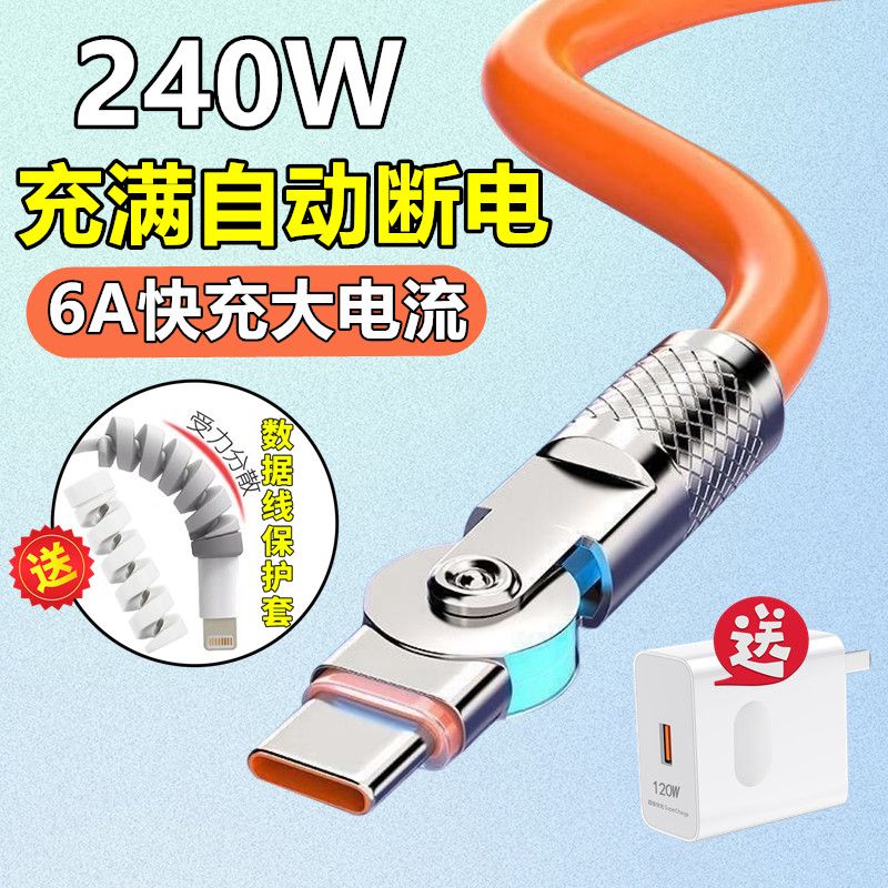 6A安卓充电线typec快充线180旋转弯头适用华为OPPO荣耀vivo数据线