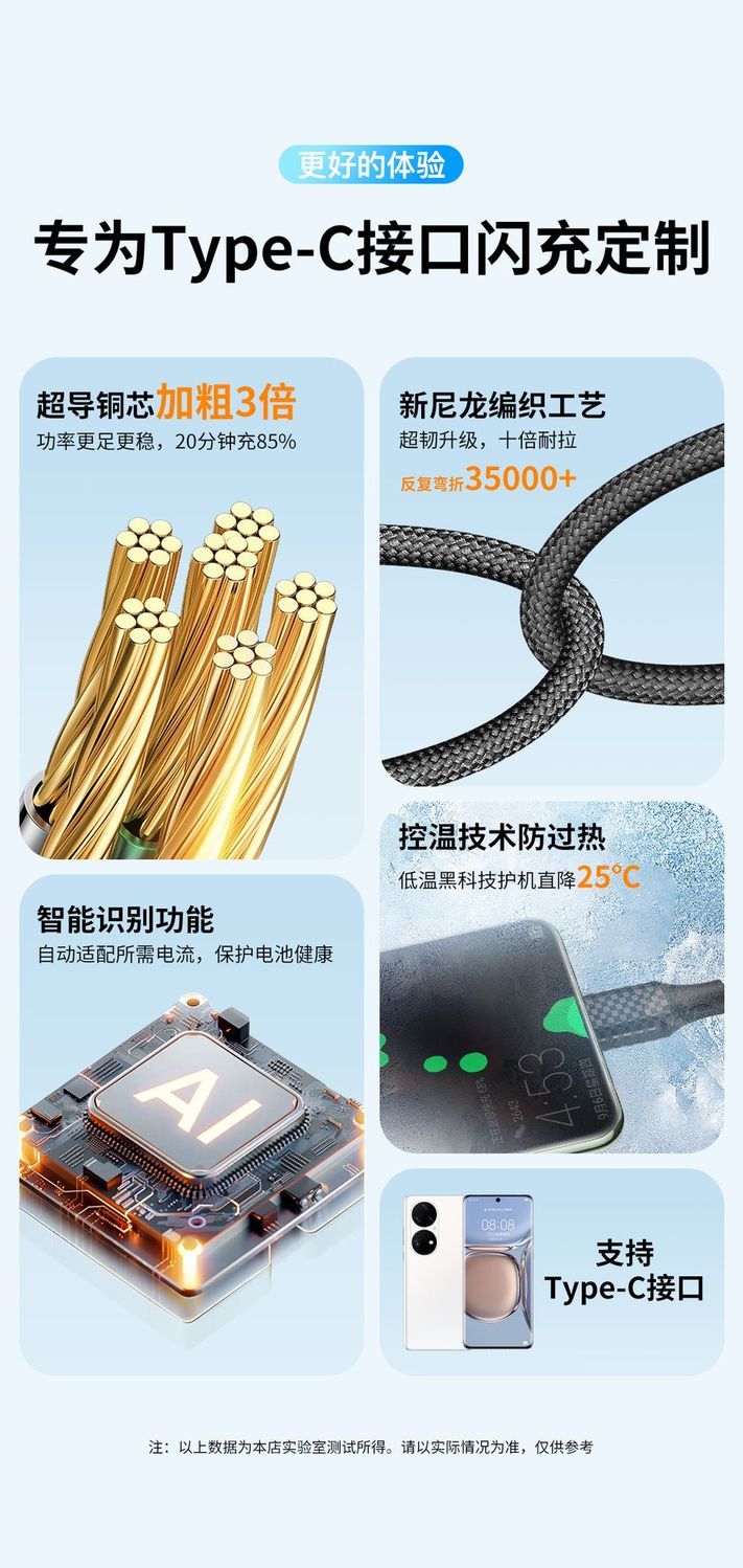 6800w超级快充自动断电数据线typec充电线适用vivo华为荣耀OPPO