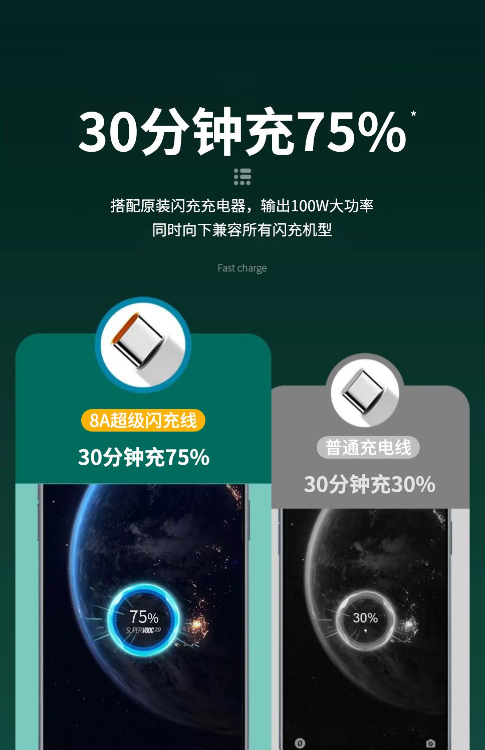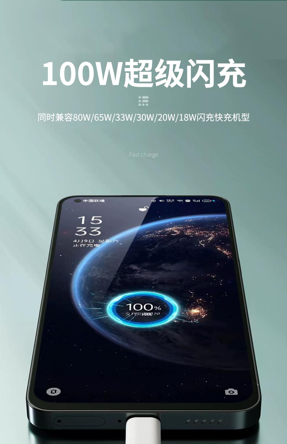适用OPPO充电线10A超级闪充100W快充Reno3/4/5/6/7/9/10Pro数据线