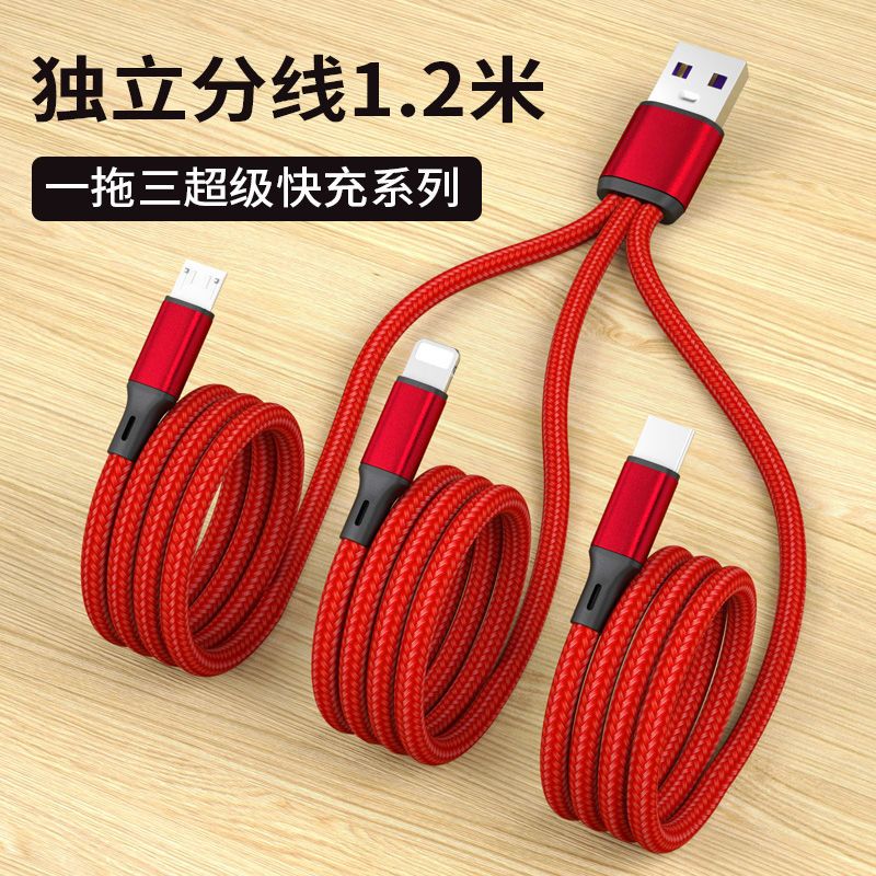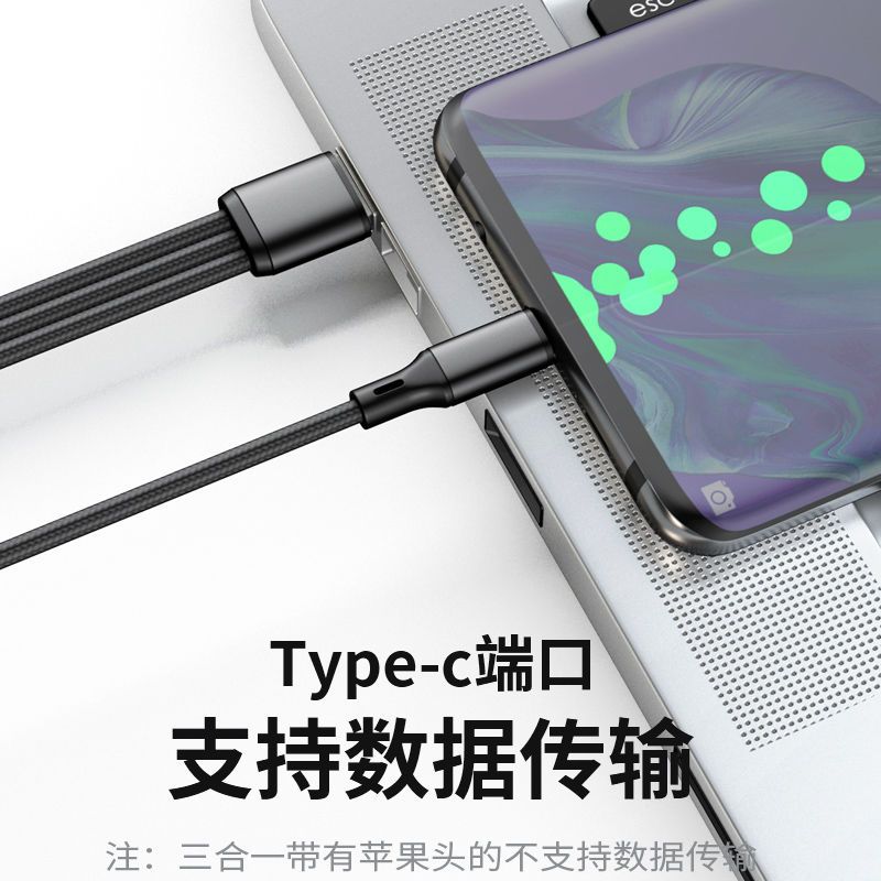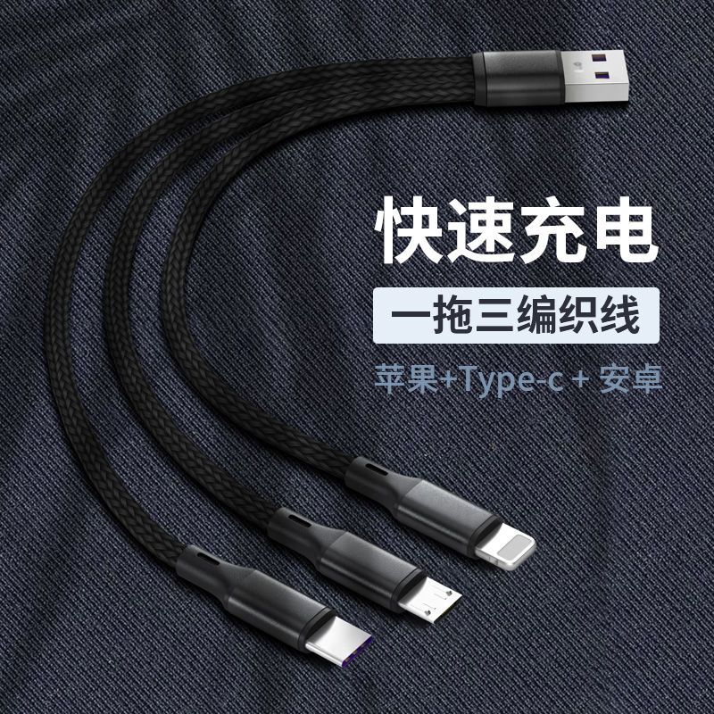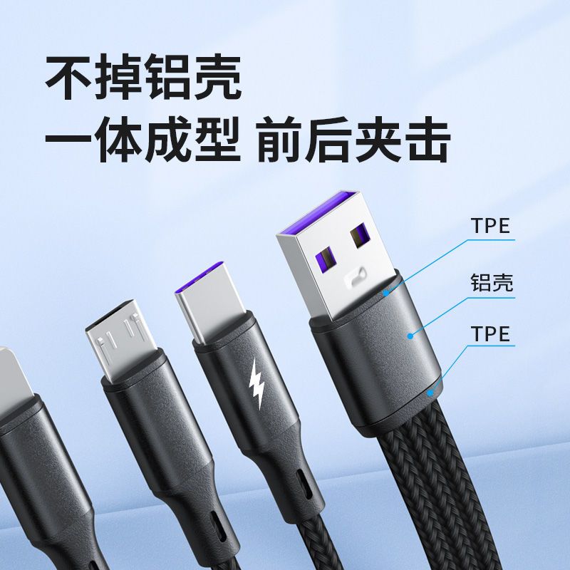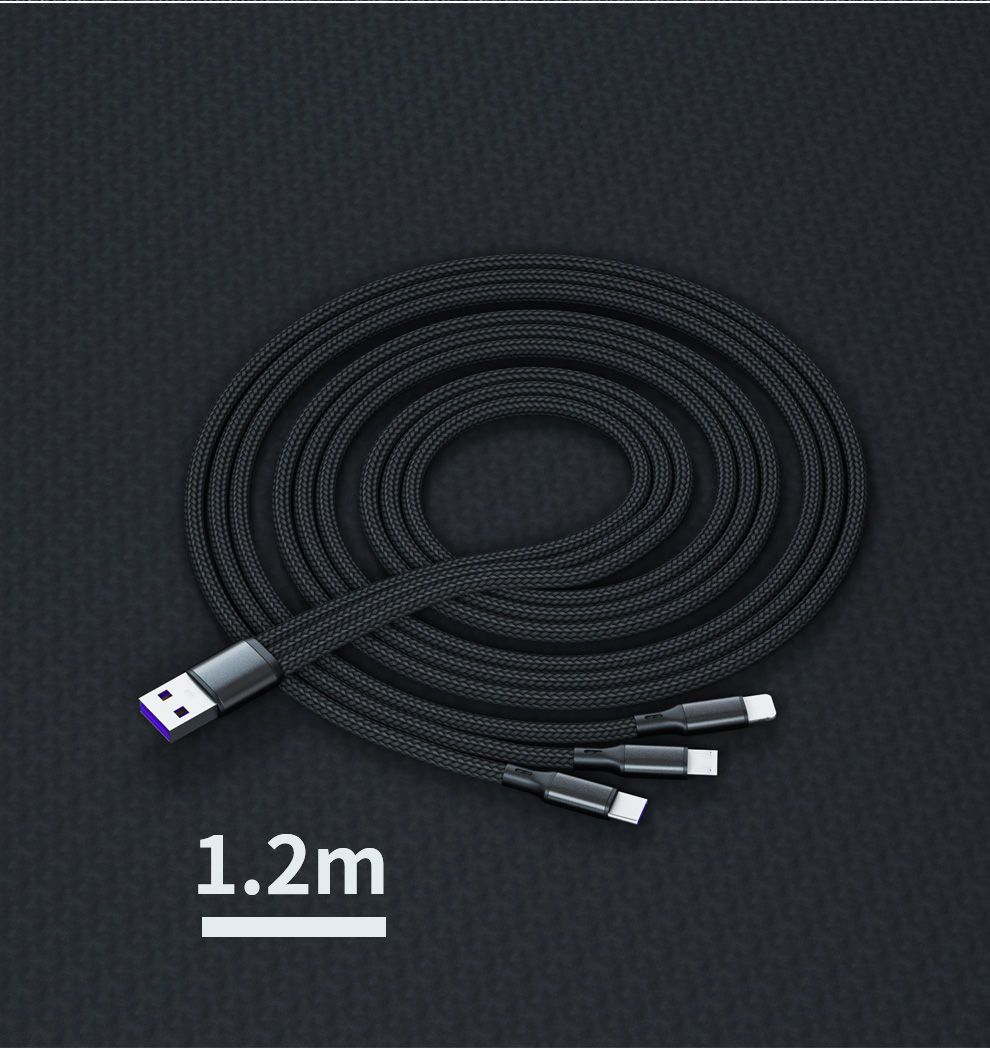 5A超级快充一拖三数据线适用于华为苹果安卓三合一车载充电线快充