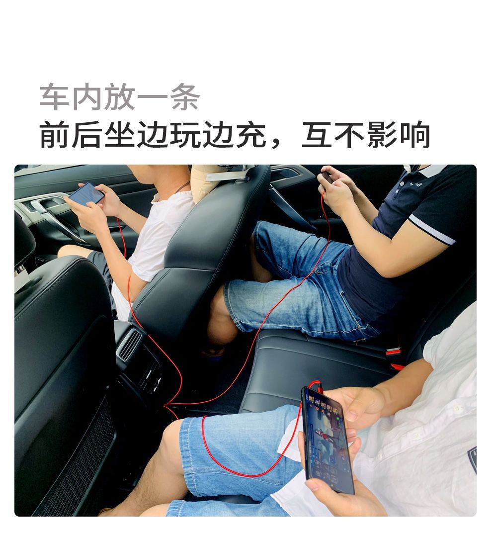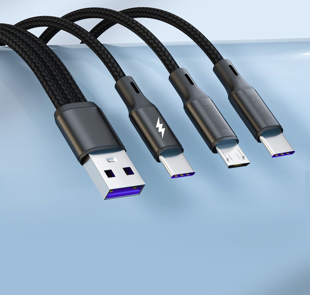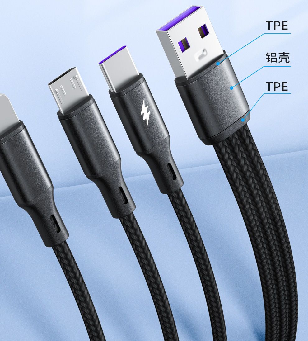 5A超级快充一拖三数据线适用于华为苹果安卓三合一车载充电线快充
