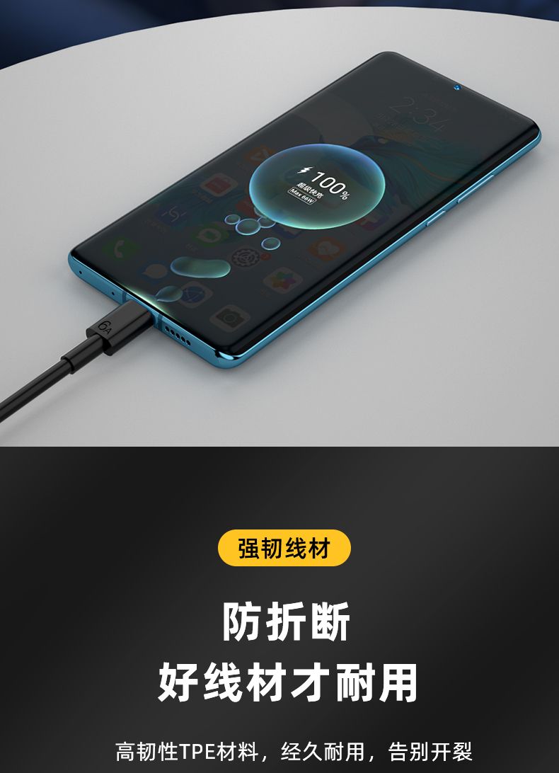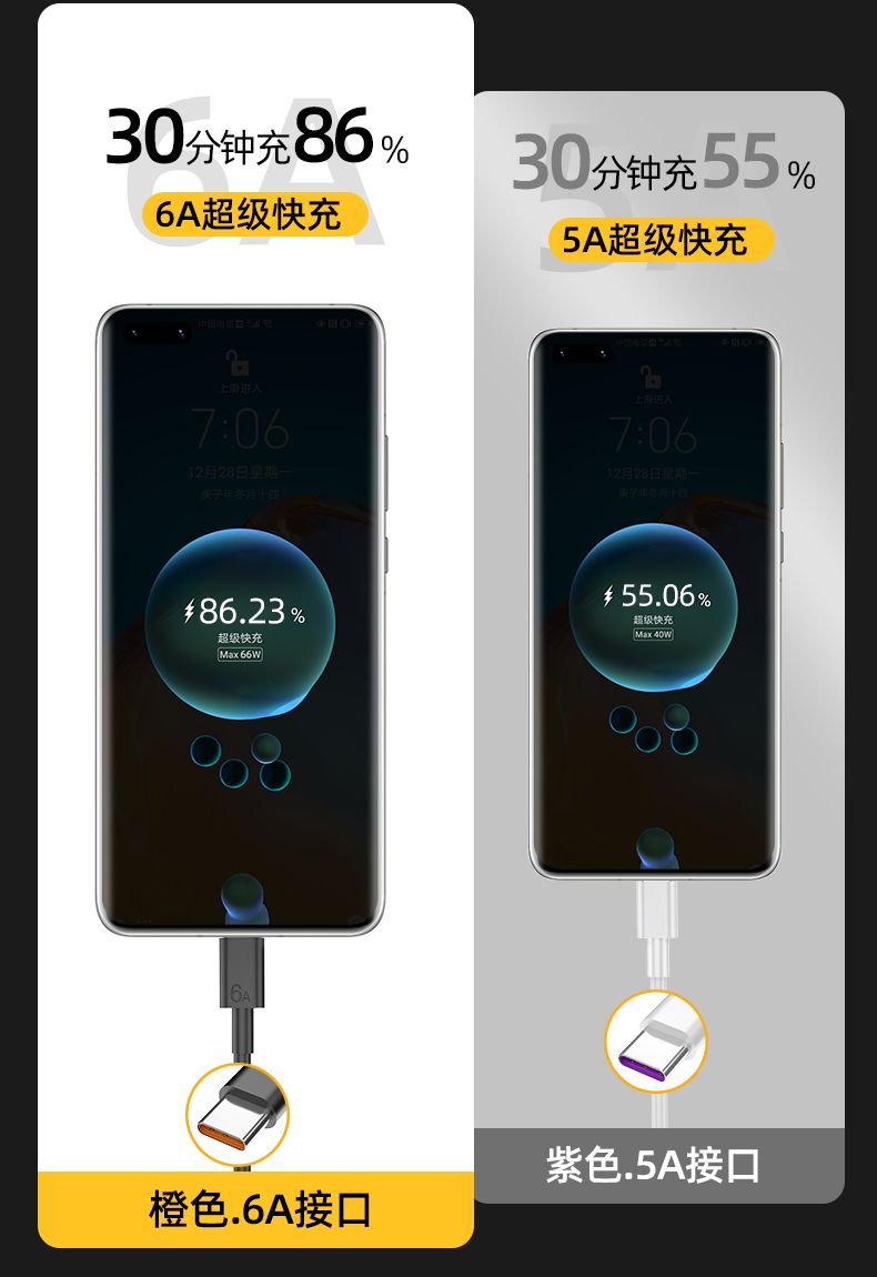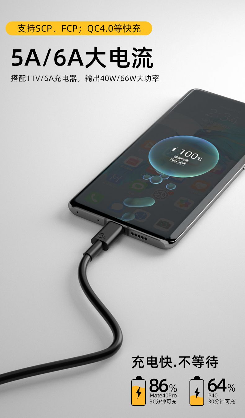适用华为数据线typec充电线超级快充p30p20nova7mate40小米荣耀50