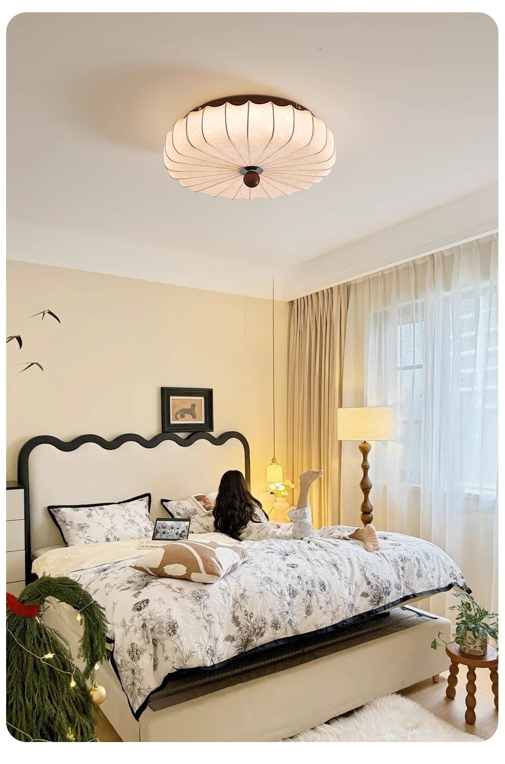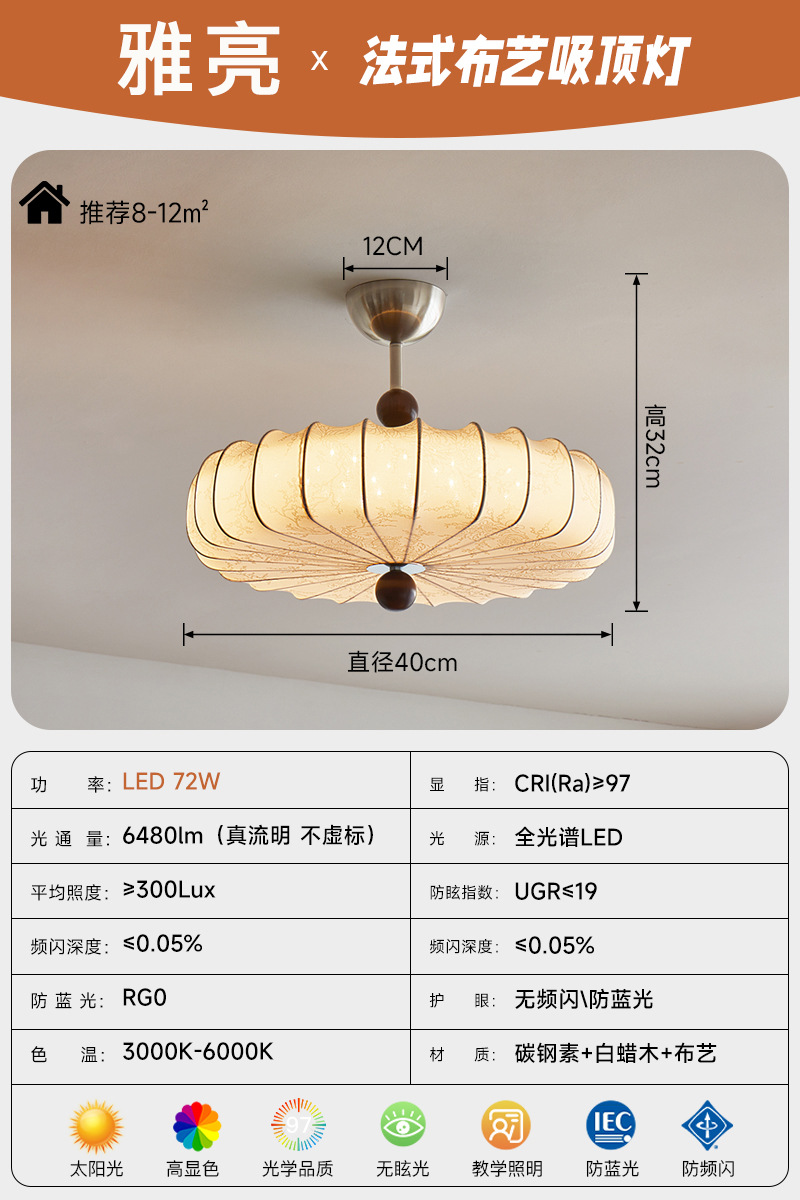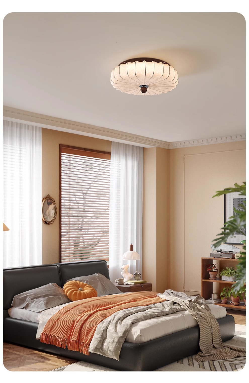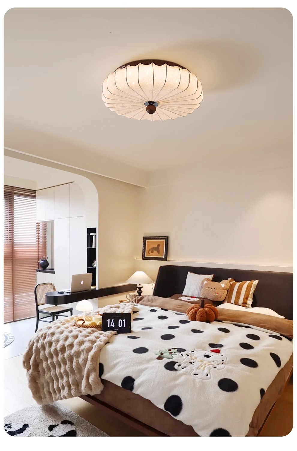 2025年实木卧室吸顶灯日系中古法式侘寂风客厅复古布艺书房主卧灯