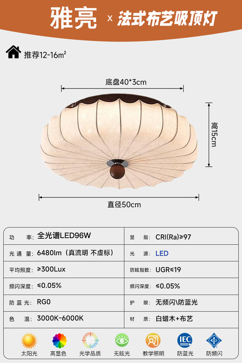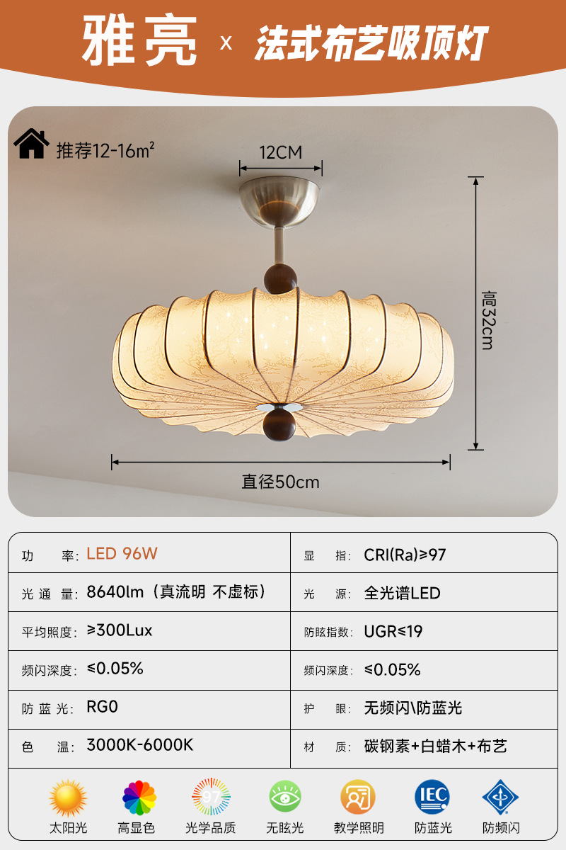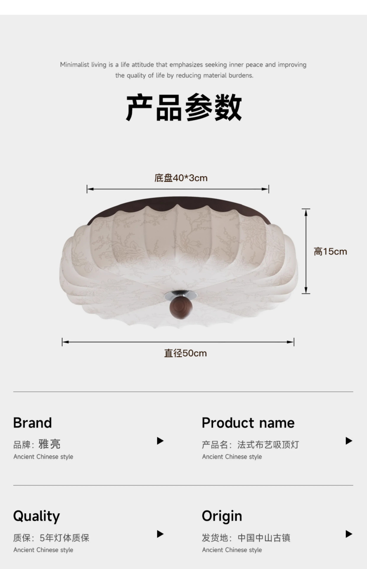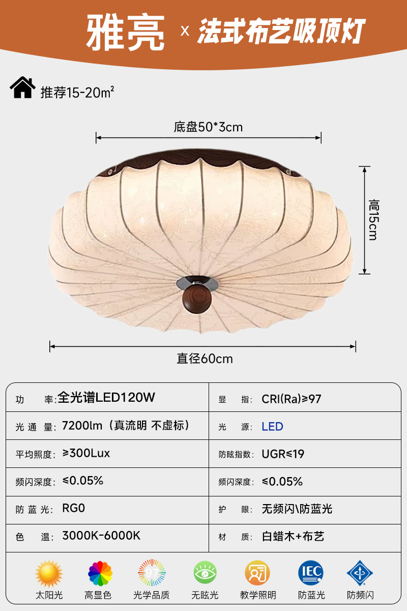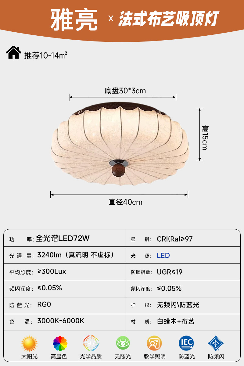 2025年实木卧室吸顶灯日系中古法式侘寂风客厅复古布艺书房主卧灯