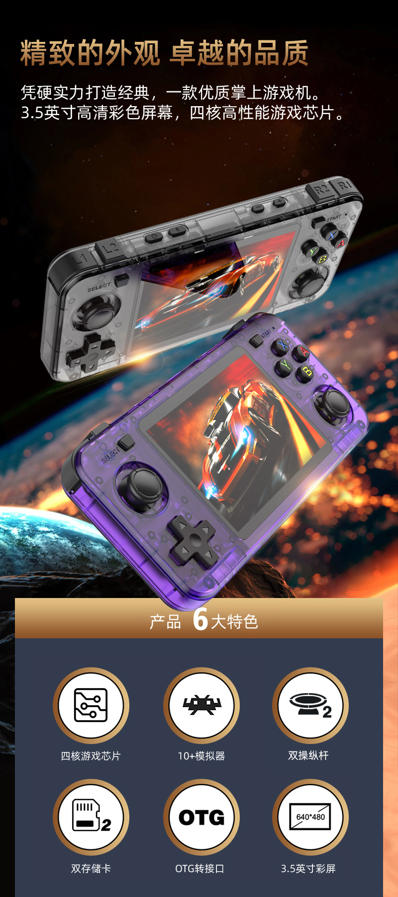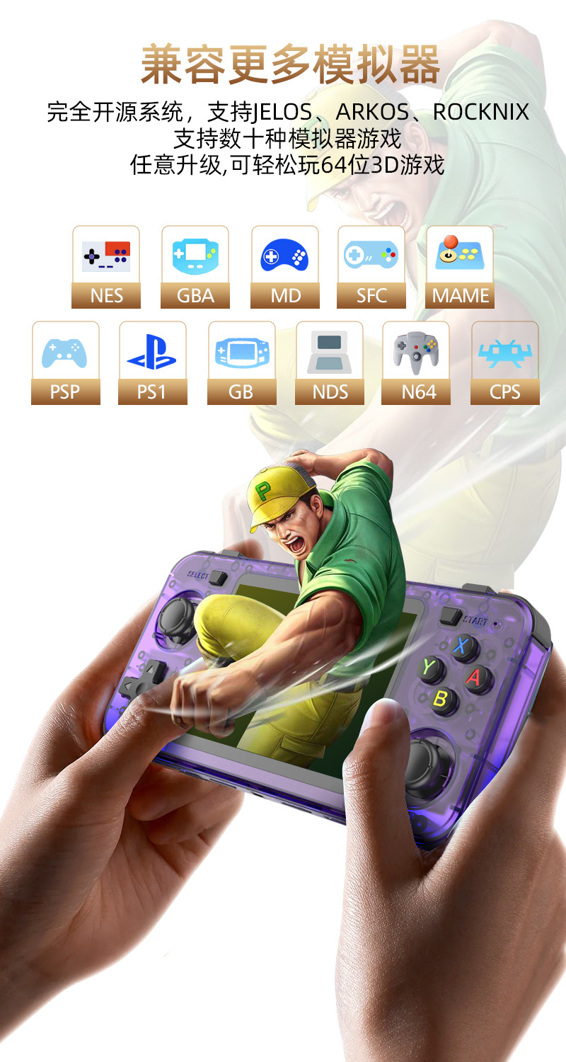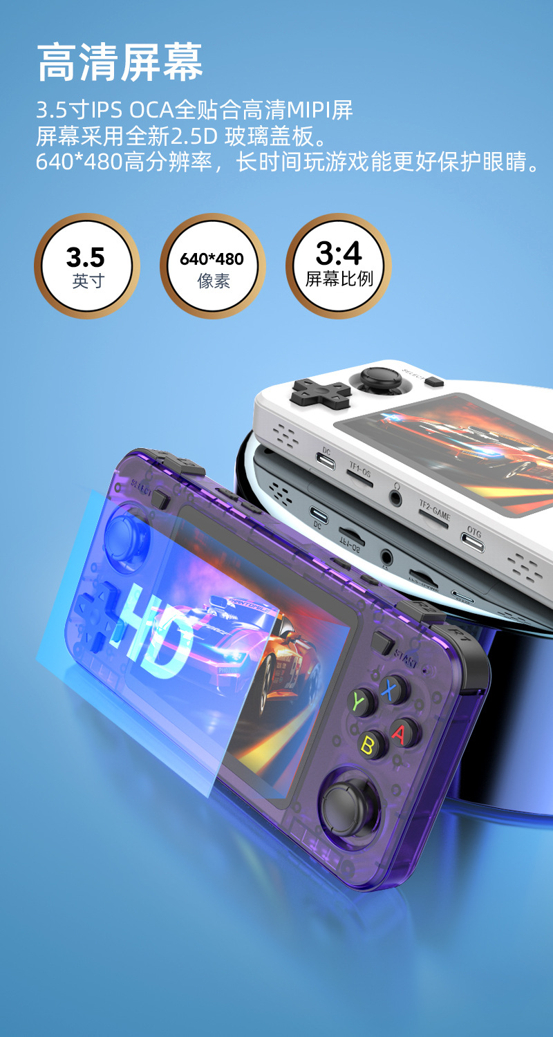 2025新款跨境R36H掌机双摇杆街机复古掌上游戏机便携Linux系统psp