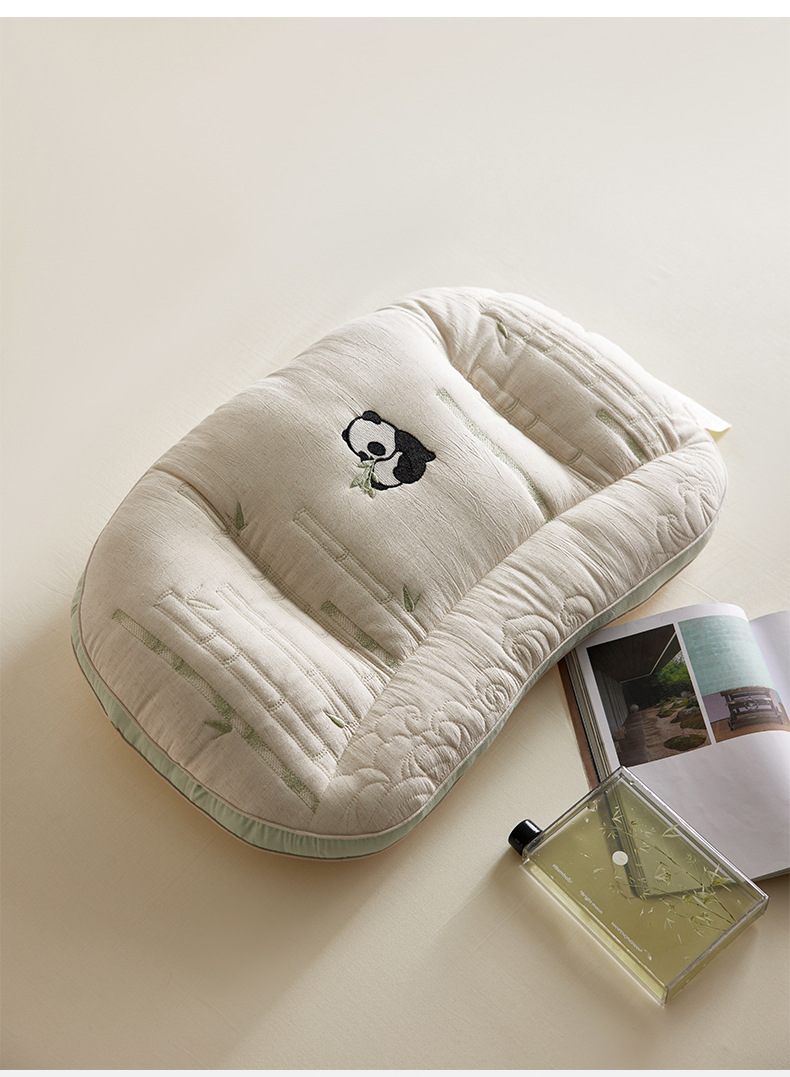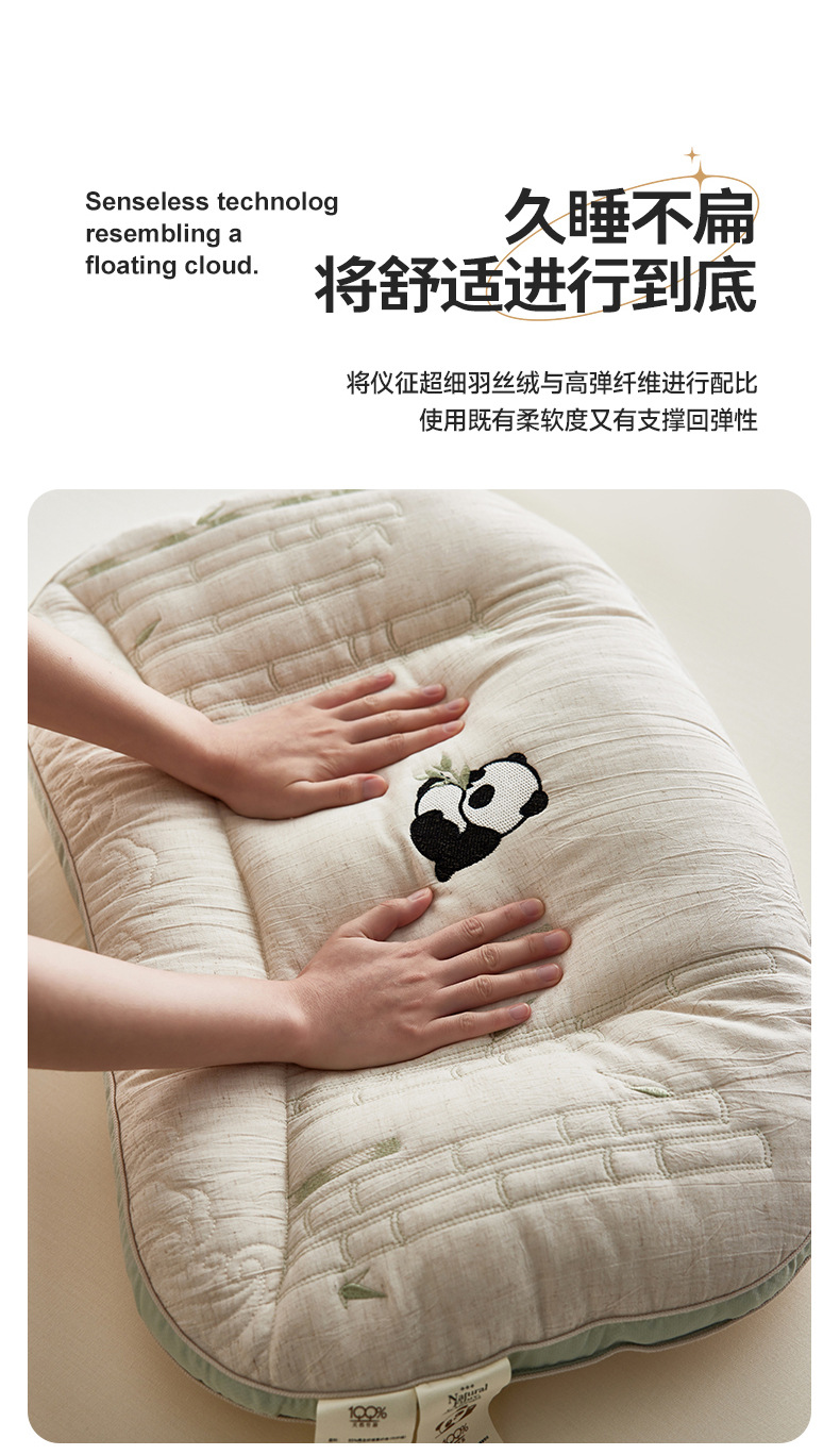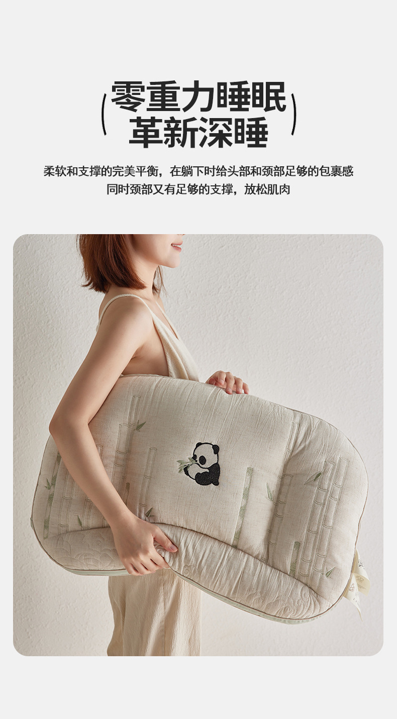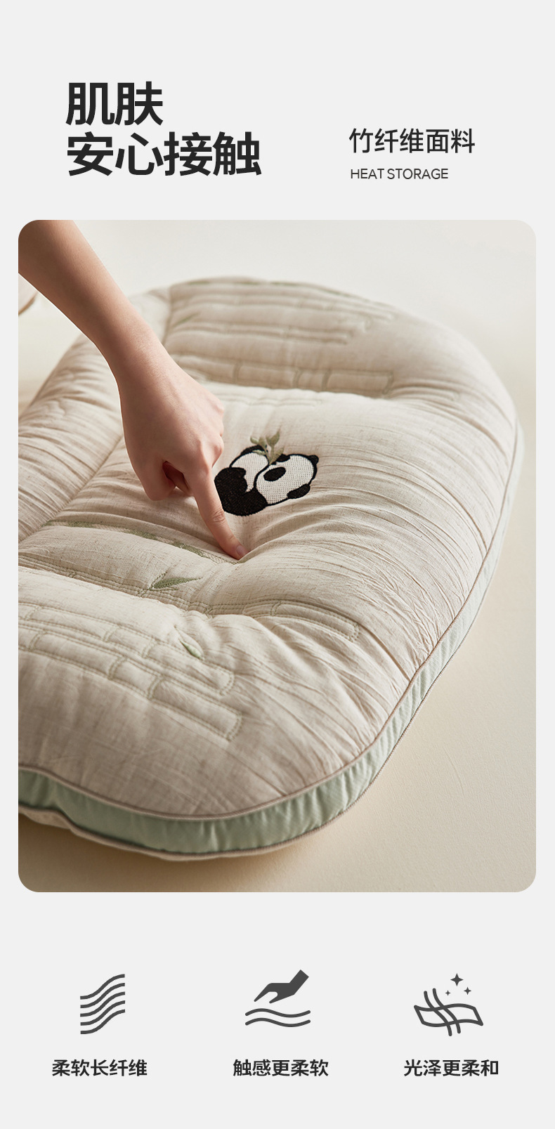 熊猫抱竹护颈枕家用单人竹纤维枕头护颈椎助睡眠枕芯学生宿舍枕头