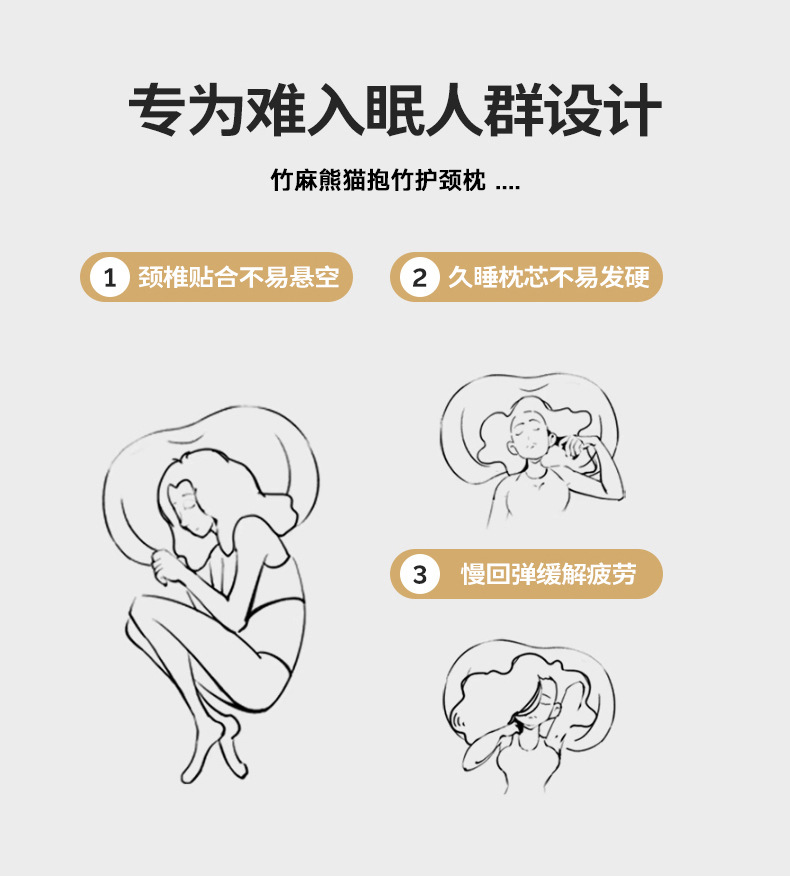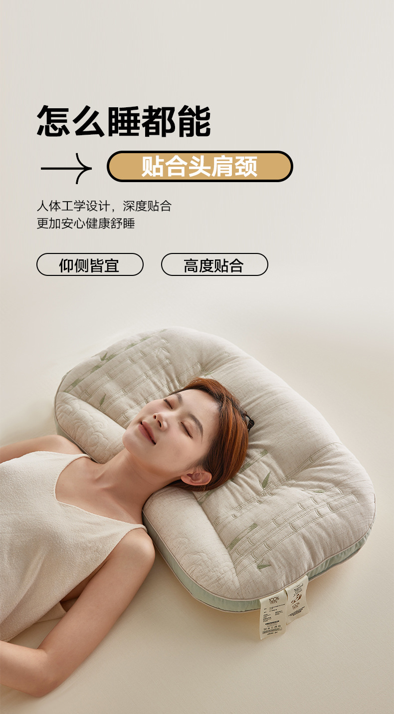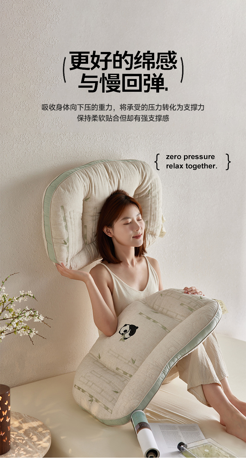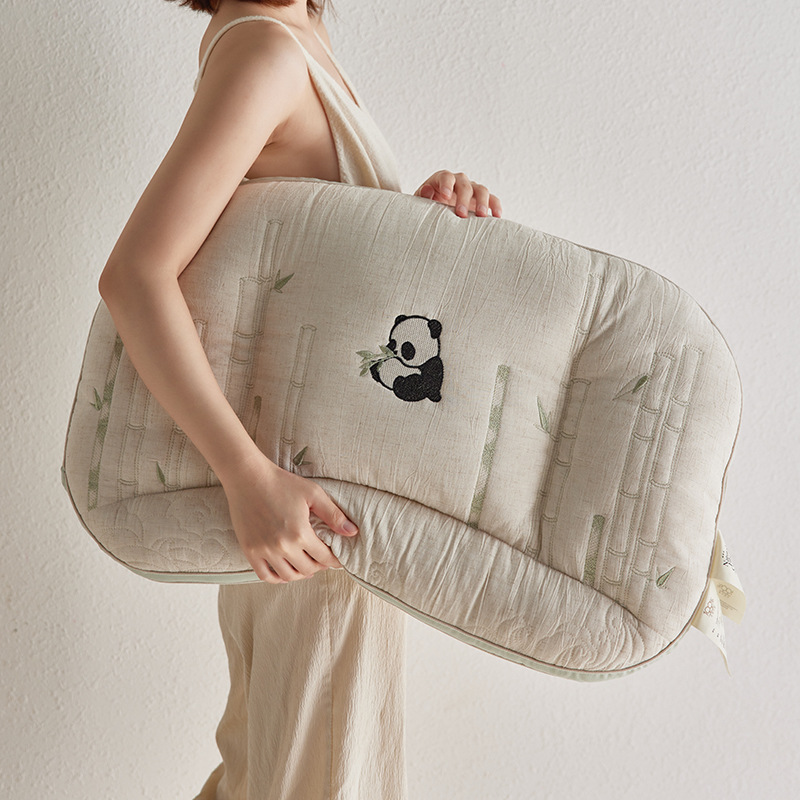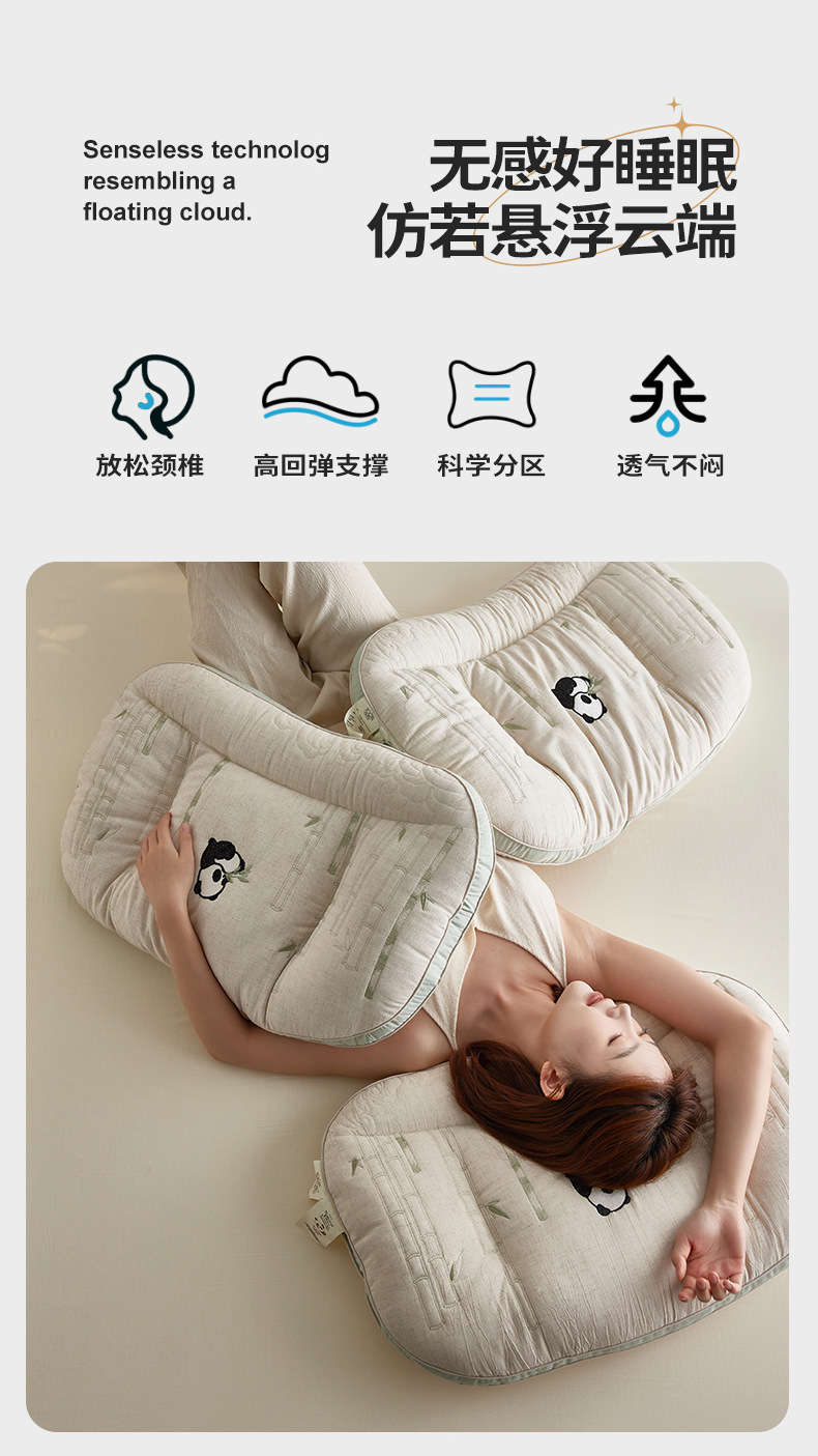 熊猫抱竹护颈枕家用单人竹纤维枕头护颈椎助睡眠枕芯学生宿舍枕头