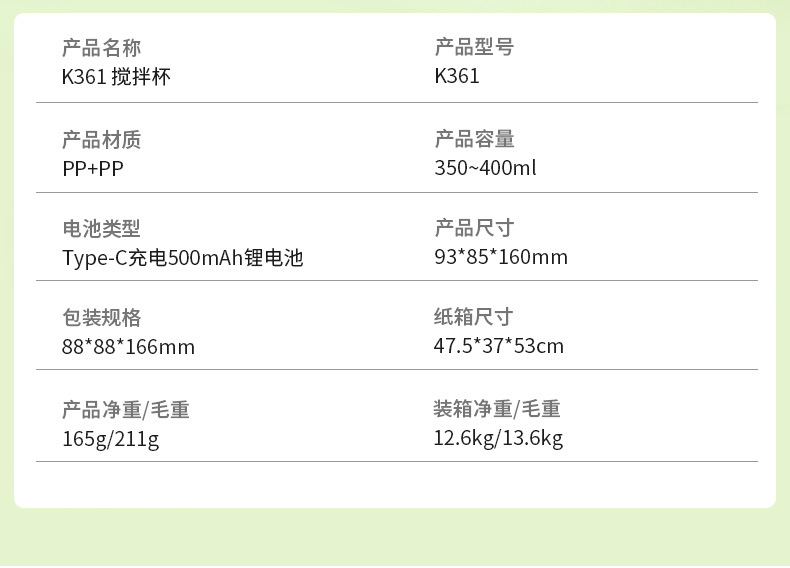 新款耐高温食品级电动搅拌杯摇摇杯pp材质大容量自动搅拌杯批发