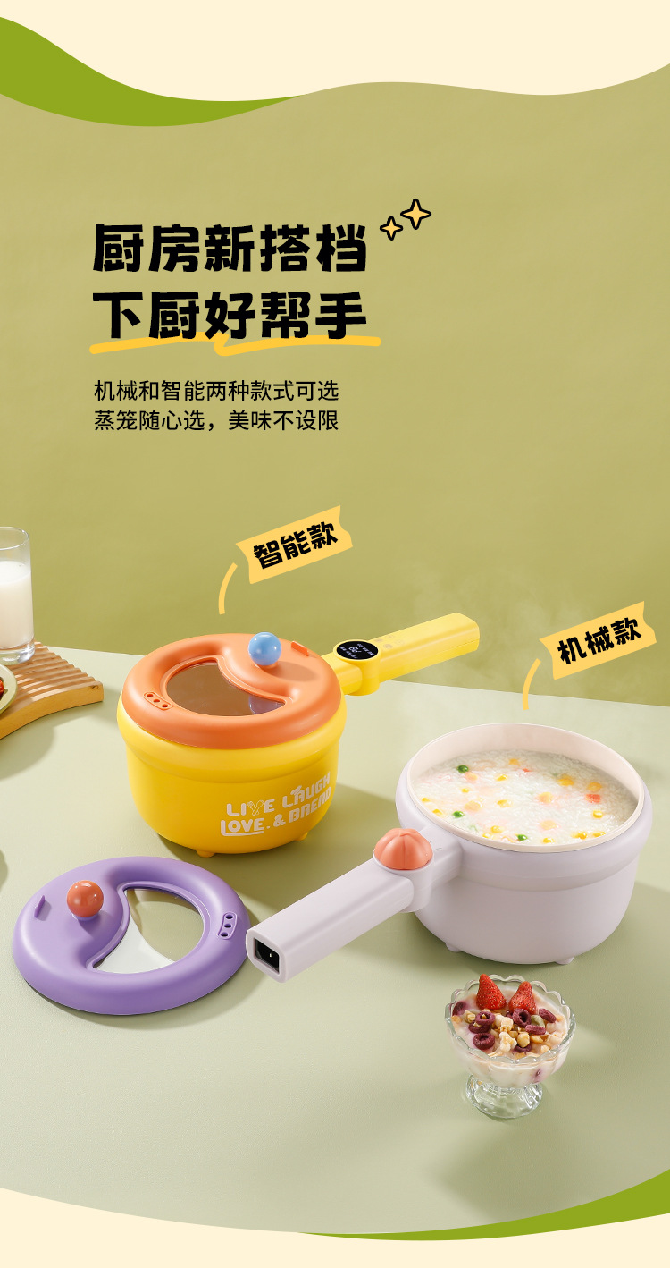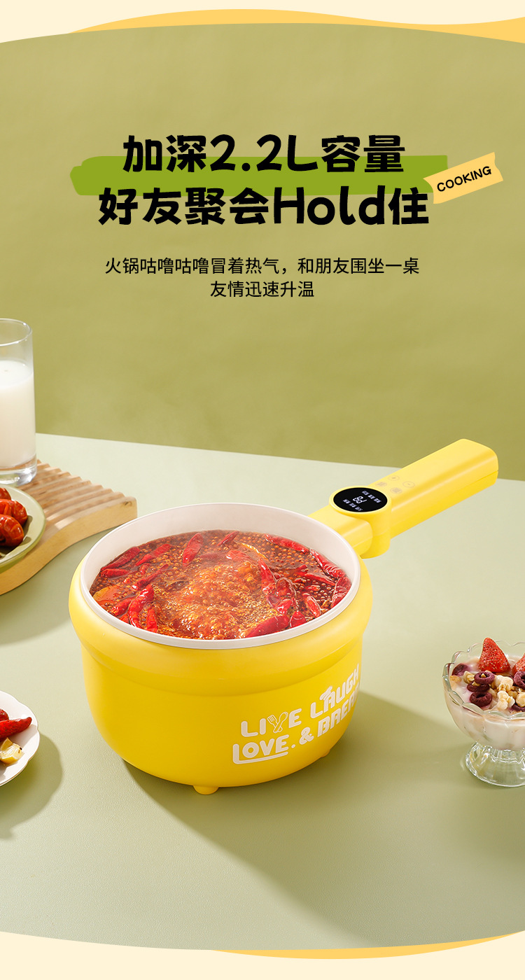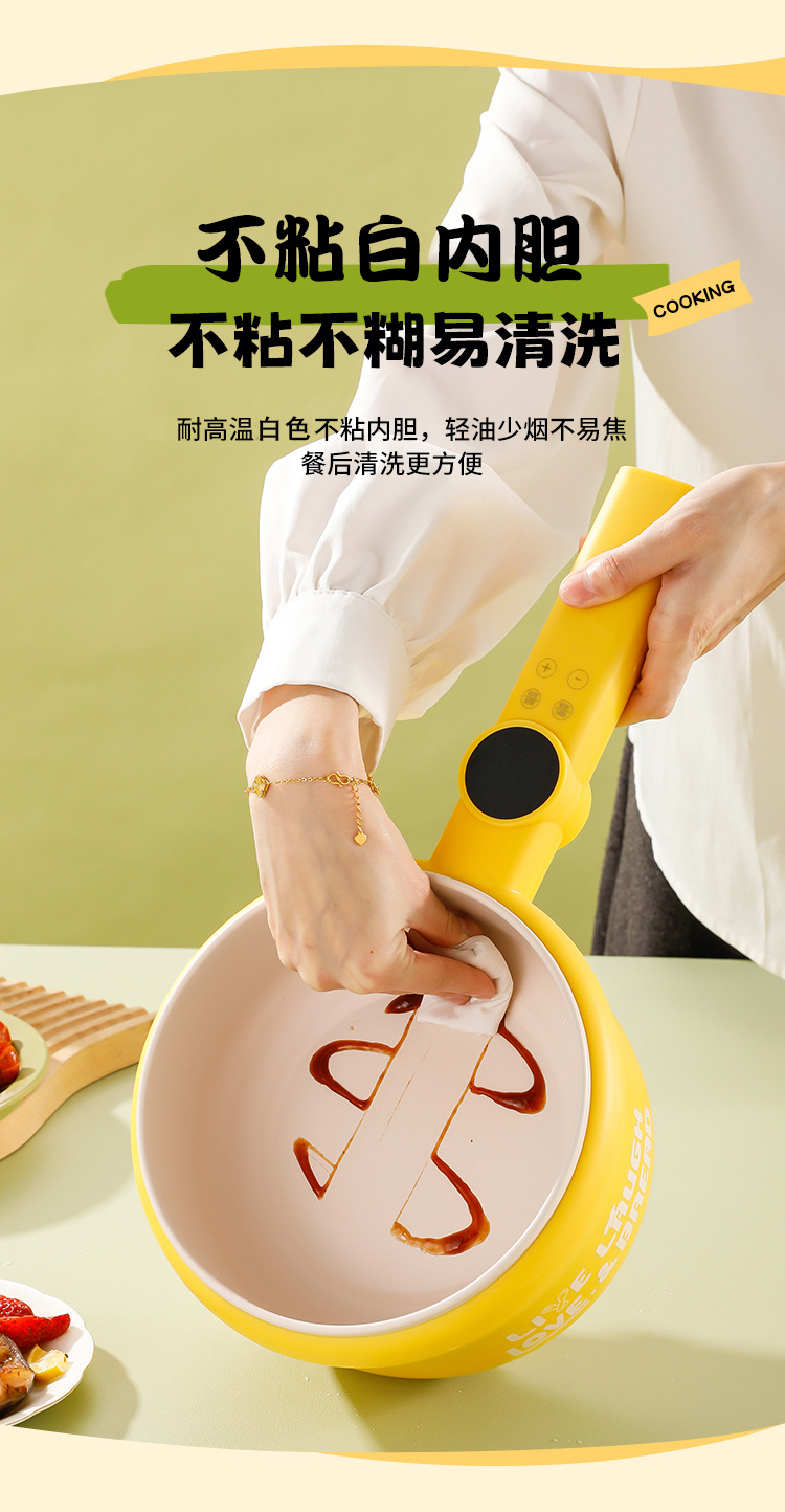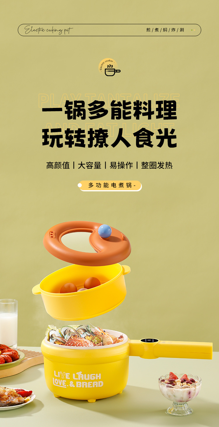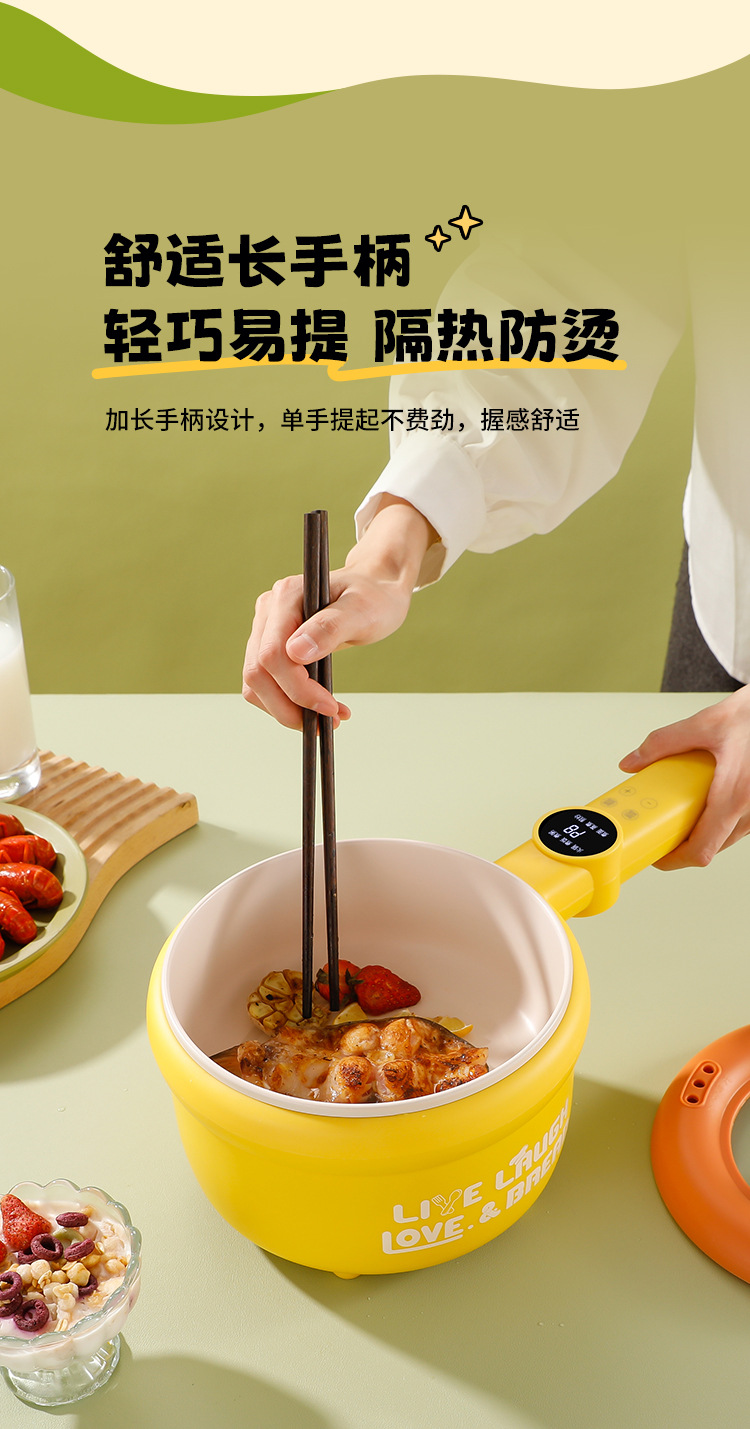 粤尔德直供 网红高颜值长柄电锅家用电蒸煮一体锅小型不粘锅 代发