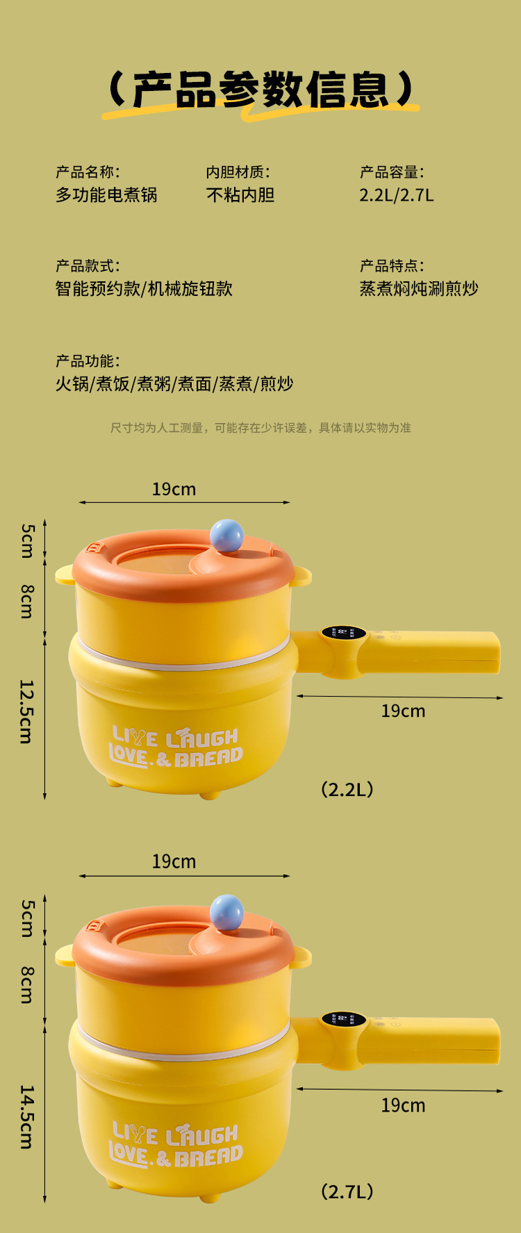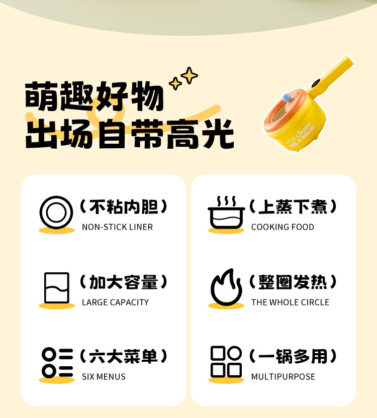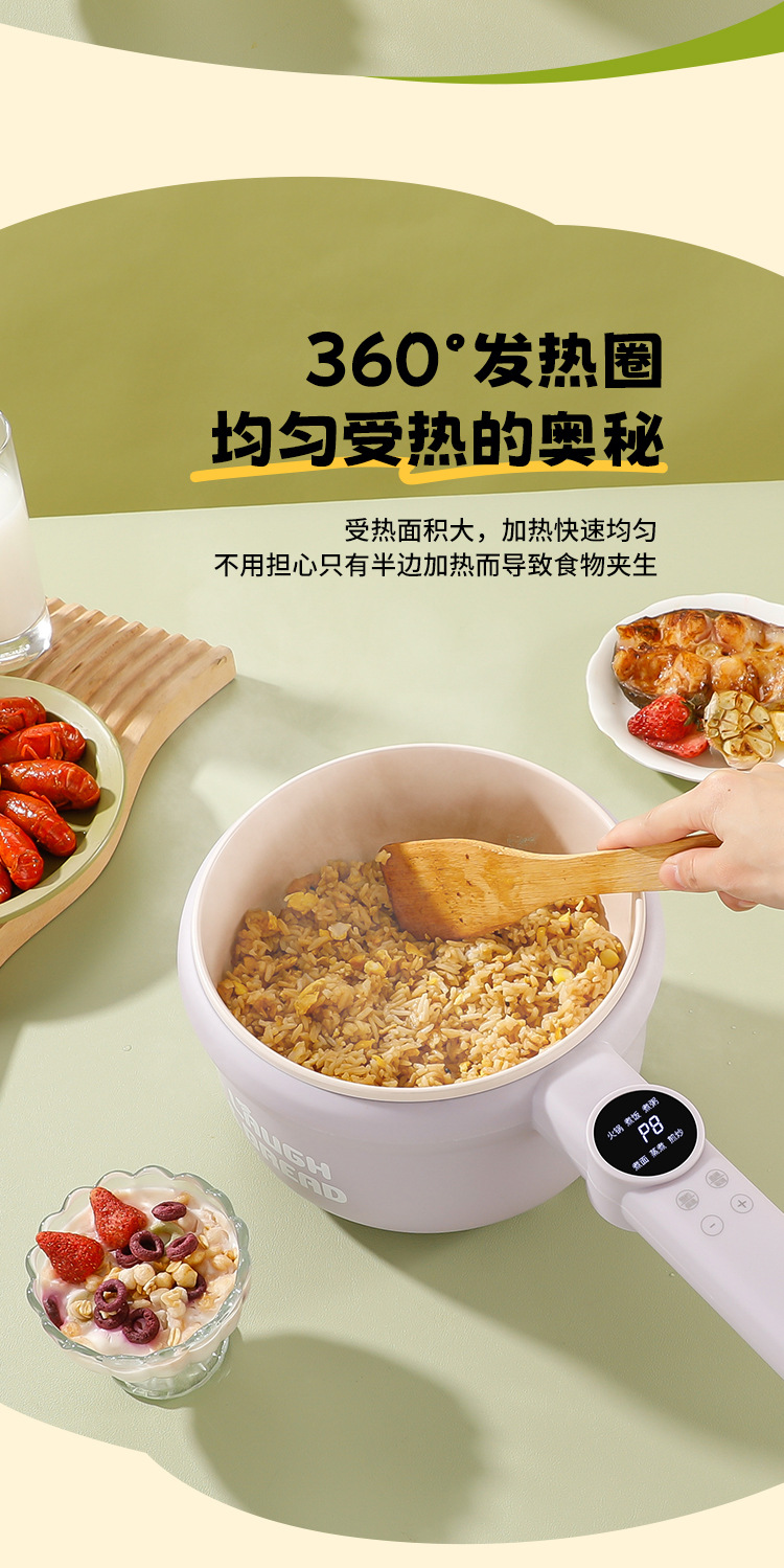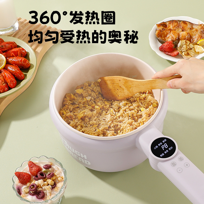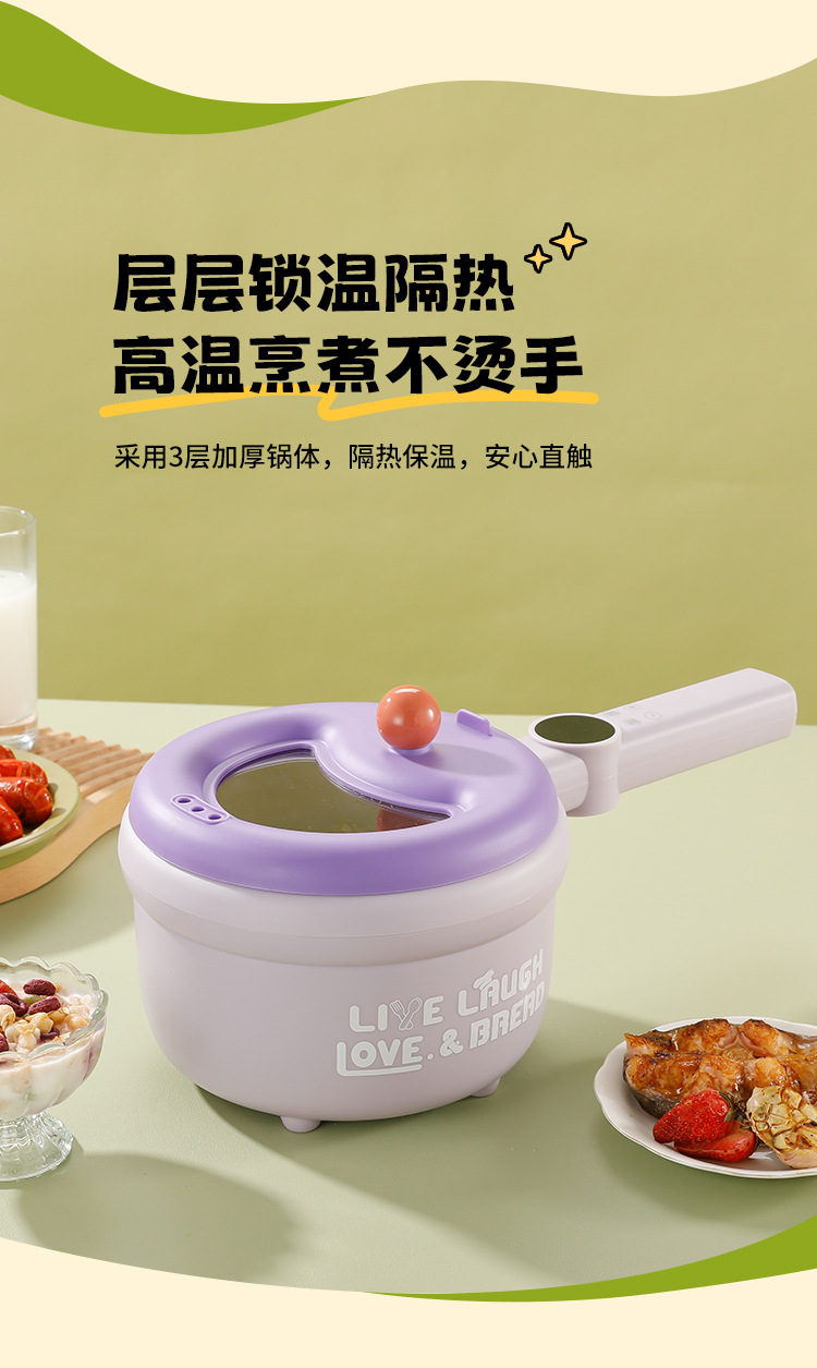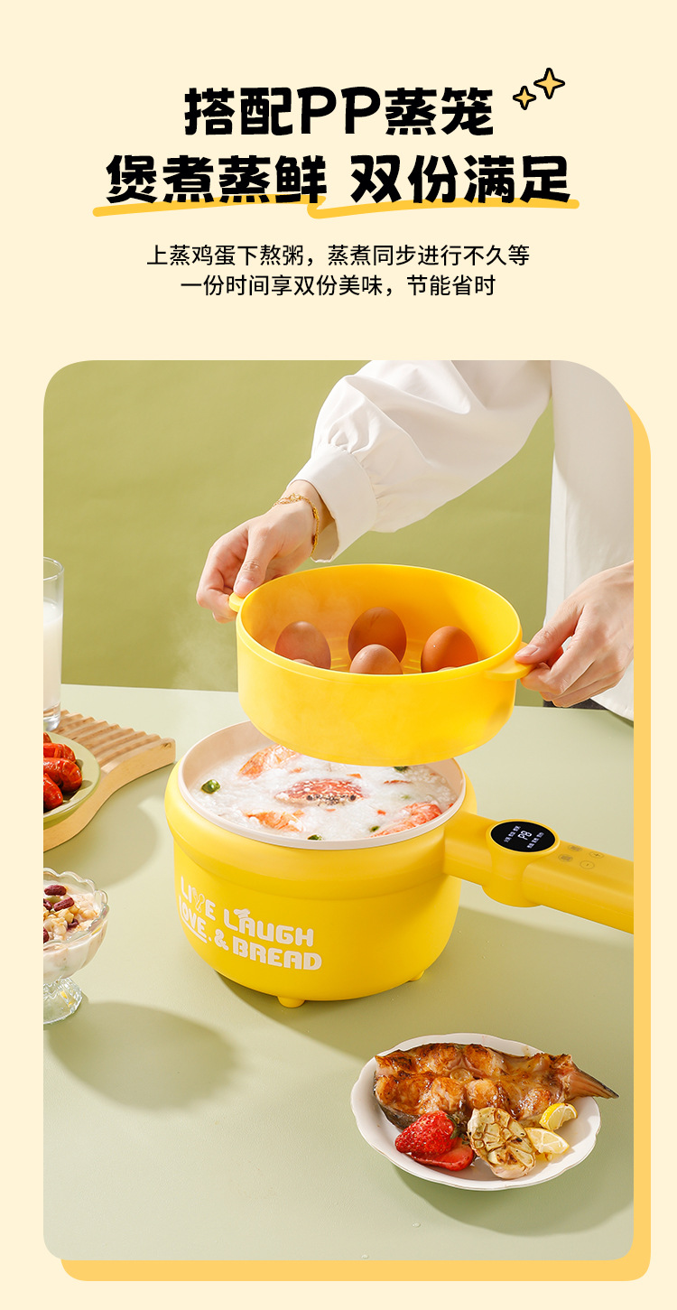 粤尔德直供 网红高颜值长柄电锅家用电蒸煮一体锅小型不粘锅 代发