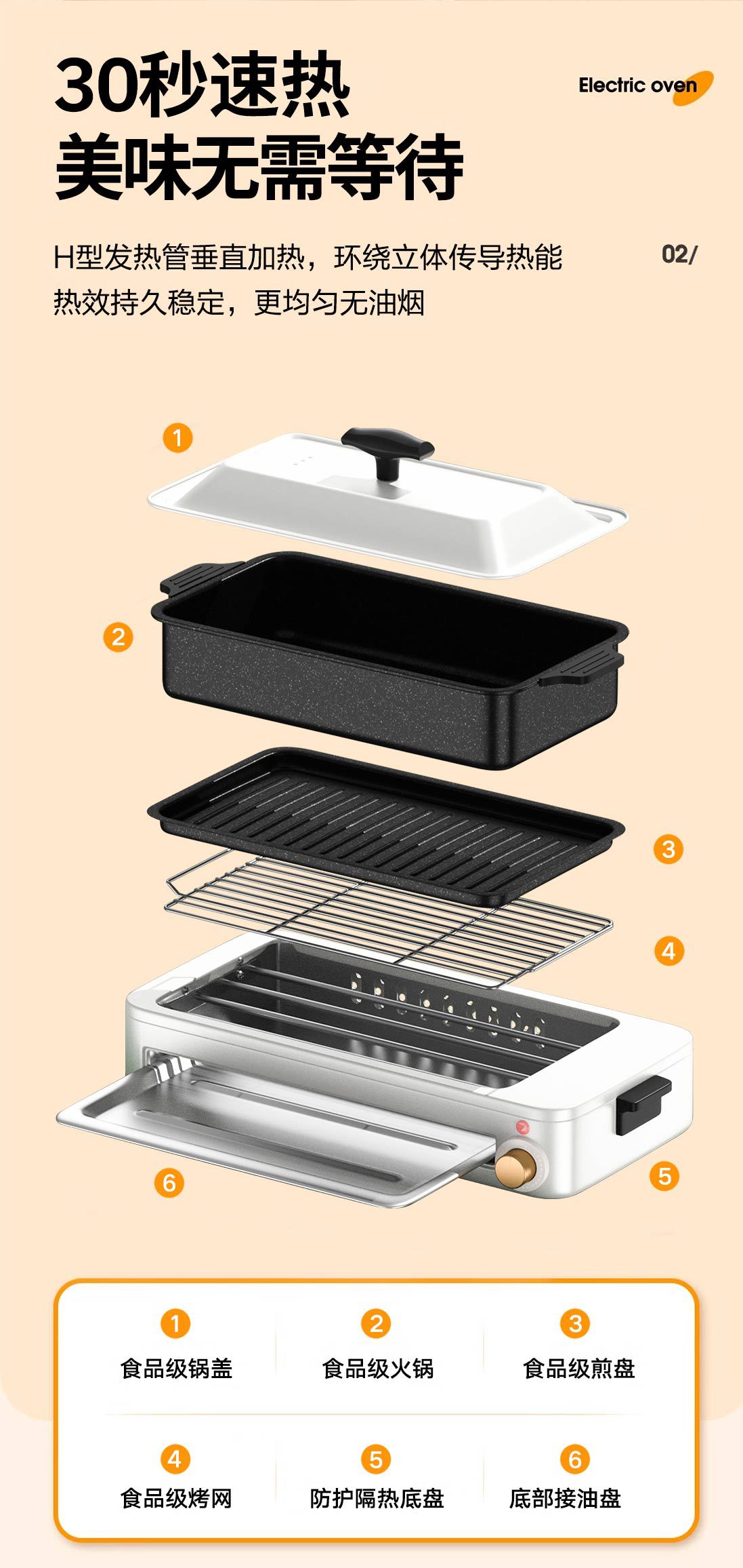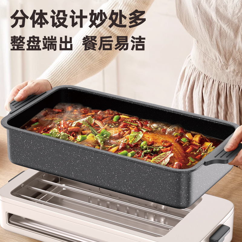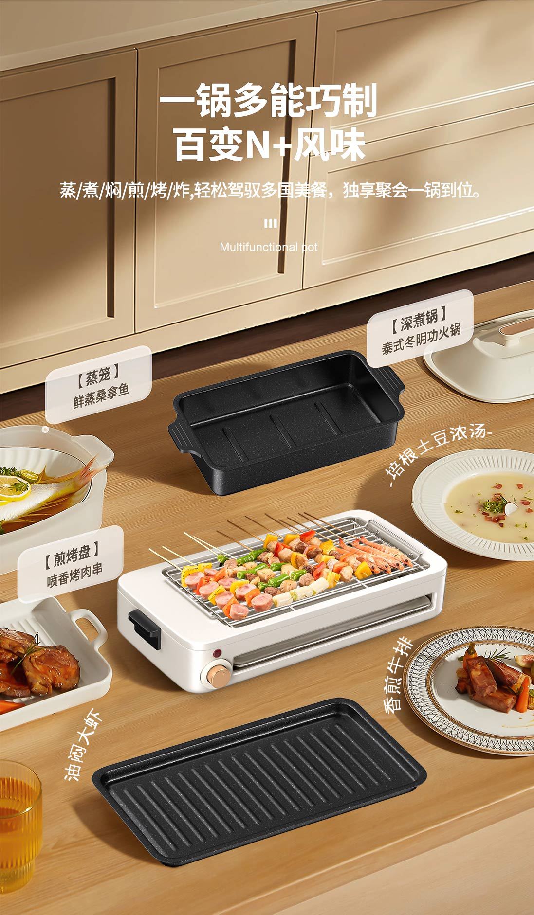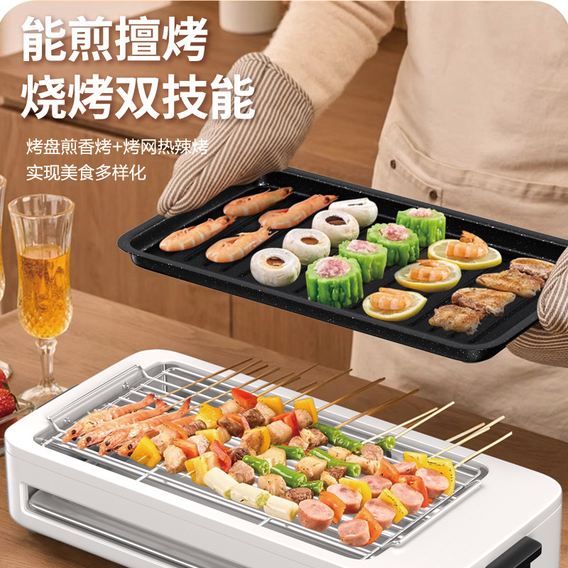 家用多功能电烧烤炉户外轻烟便携烧烤架室内烤肉烤串不粘电烤盘