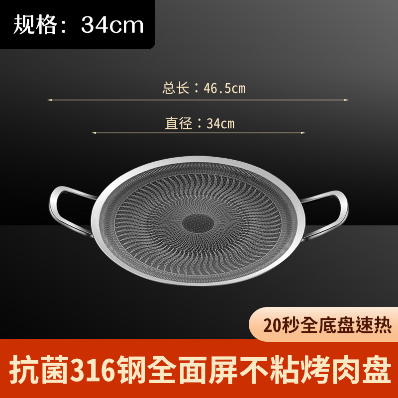 316不锈钢烤盘韩式户外露营不粘锅 卡式炉专用铁板烧煎烤肉盘家用