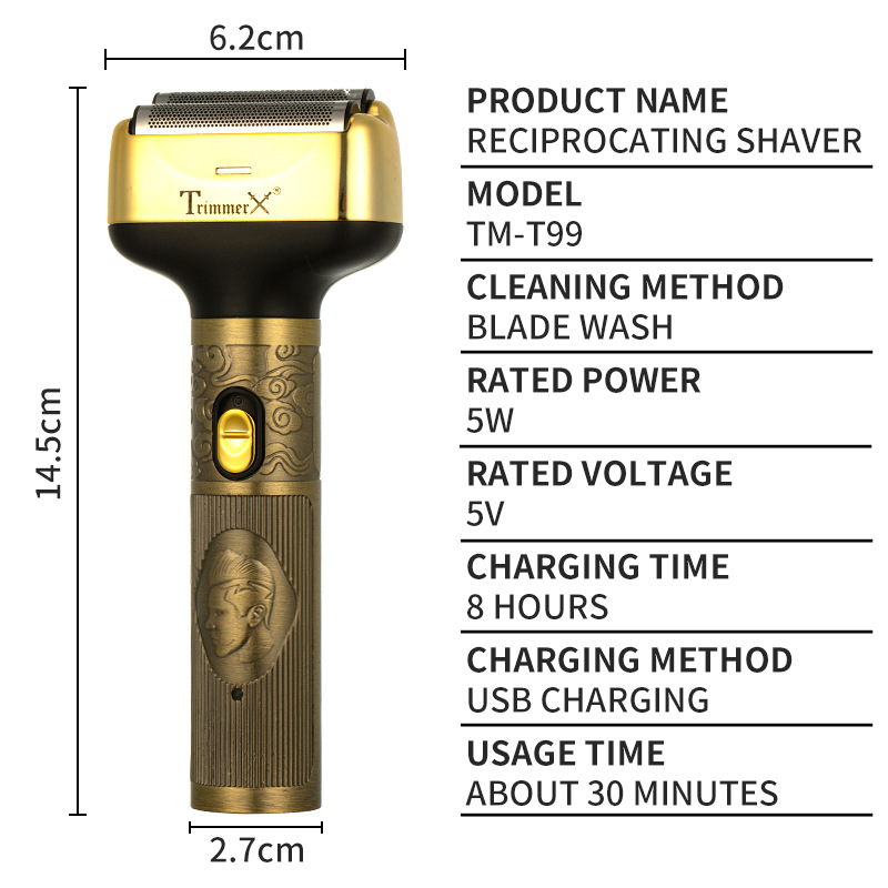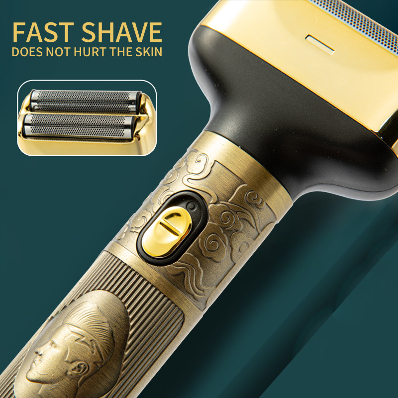 新款三合一电动往复式剃须刀鼻毛修剪器复古理发剪套装金属铜批发
