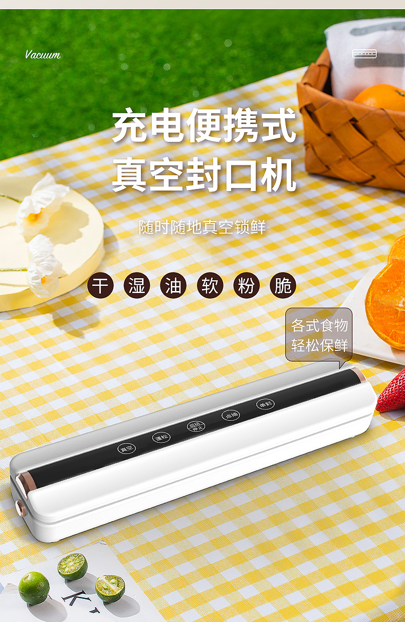 无线充电大吸力真空机家用食品保鲜机厨房便捷式自动压缩袋密封机