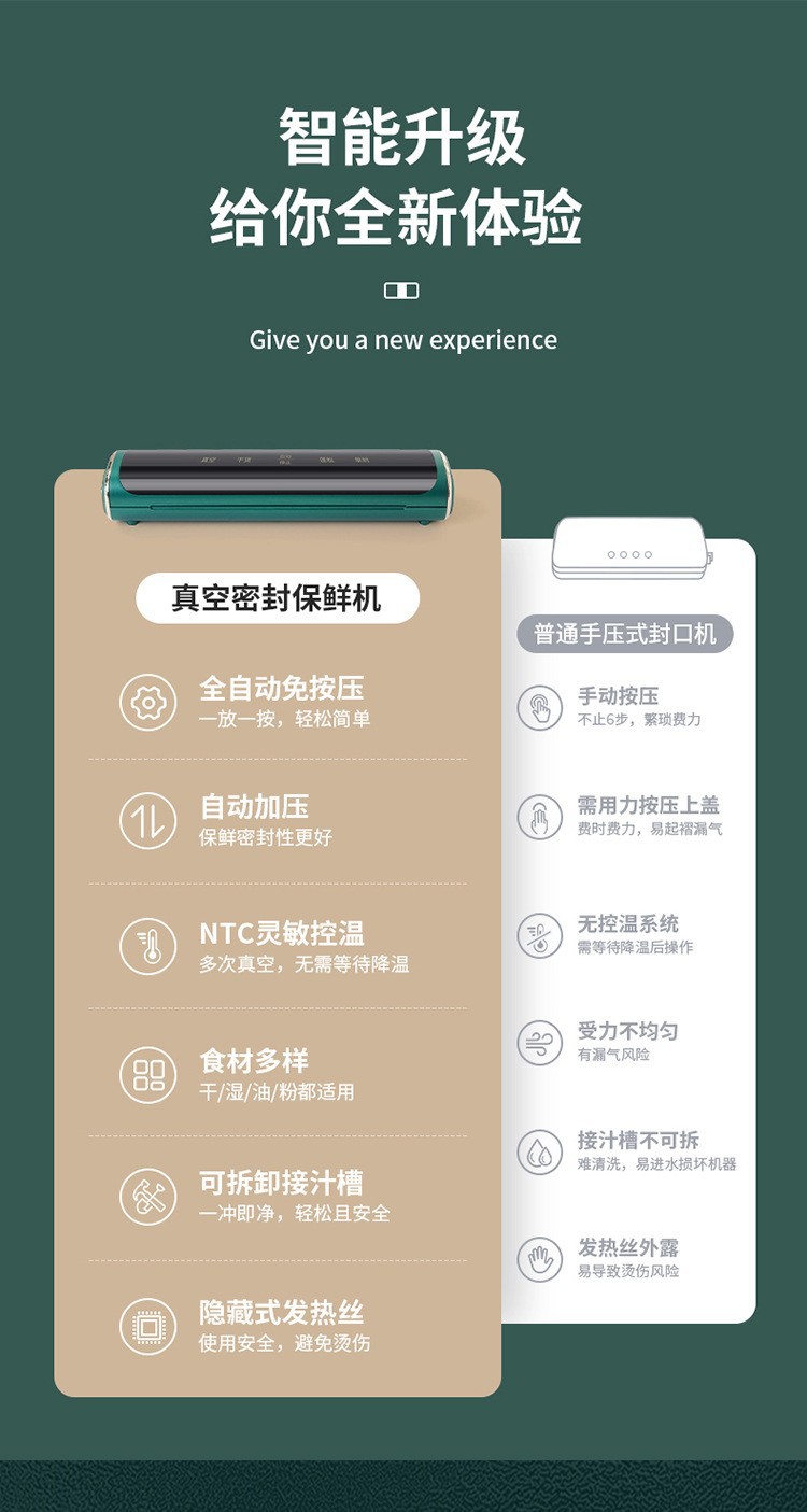 跨境真空包装机家用自动真空封口机小型塑封机便携式厨房保鲜机