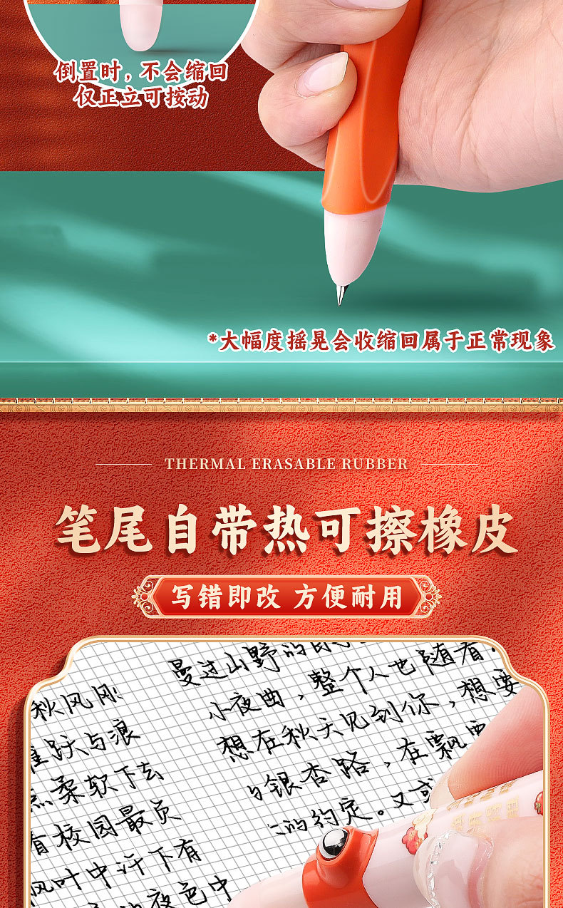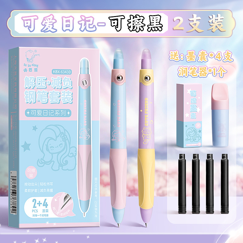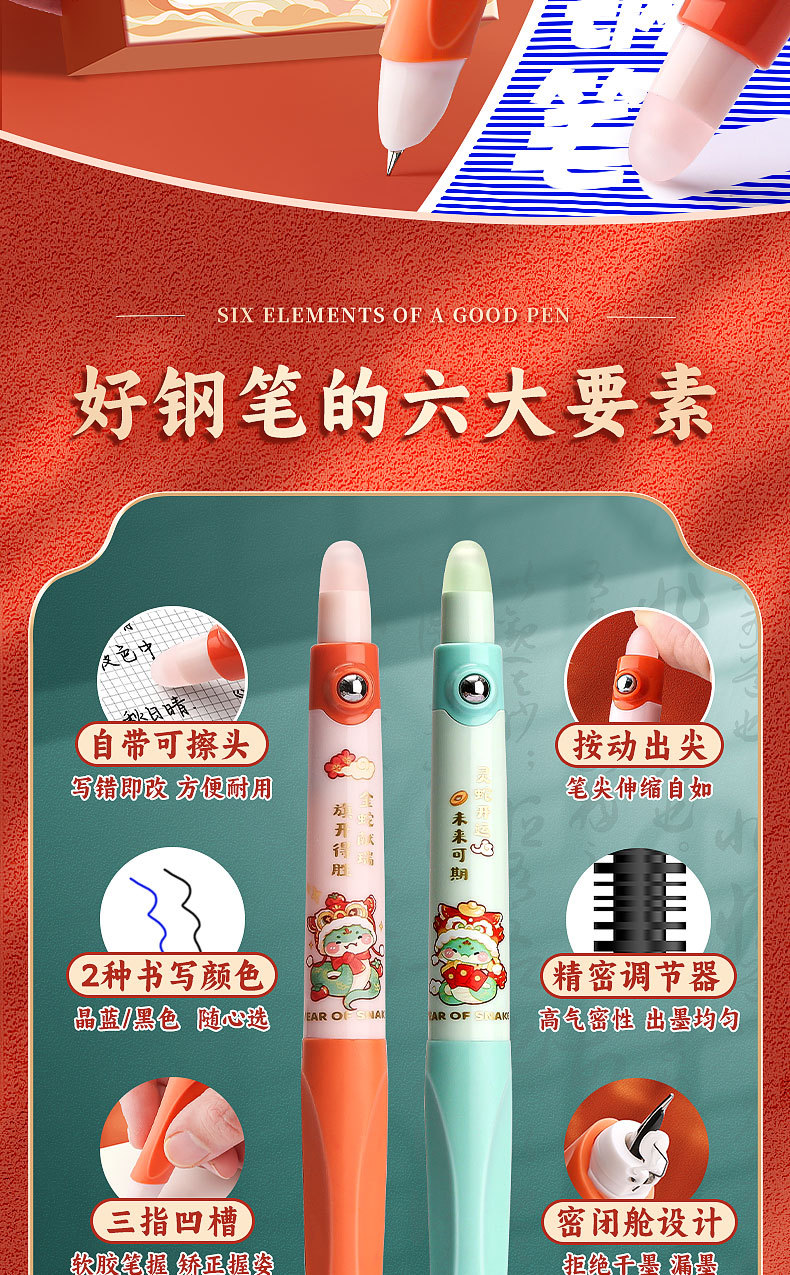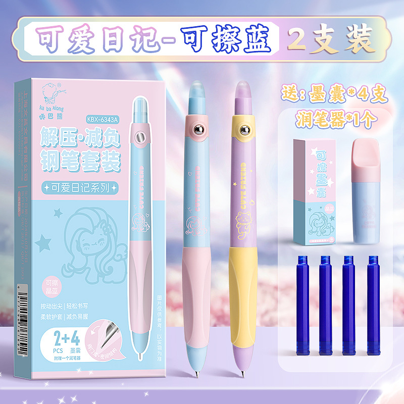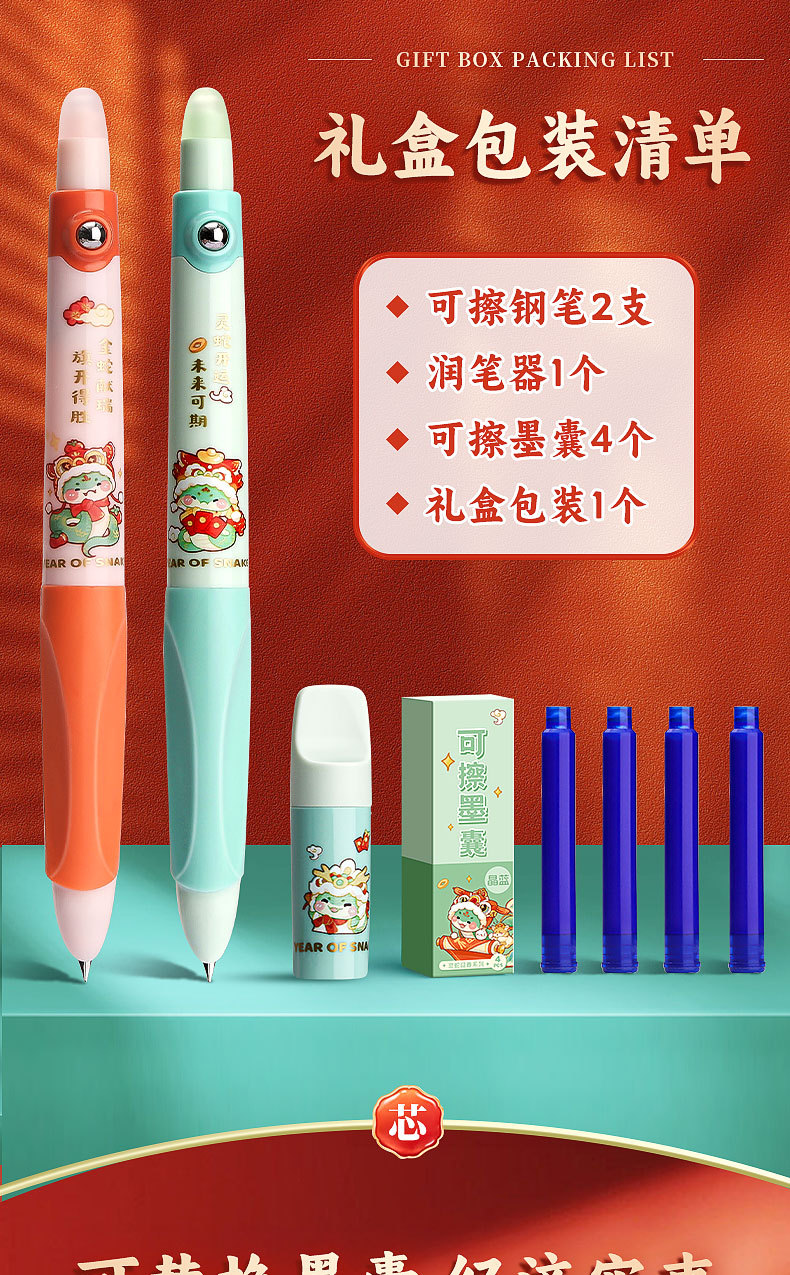 按动钢笔热敏可擦礼盒套装男女生墨囊橡皮摩磨可易擦钢笔晶蓝黑色