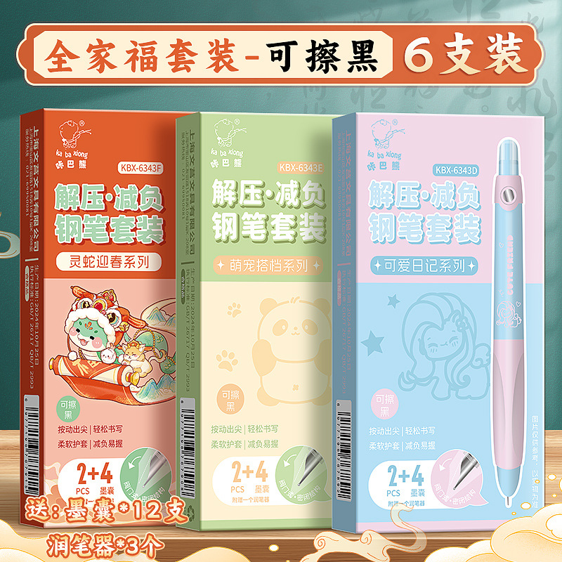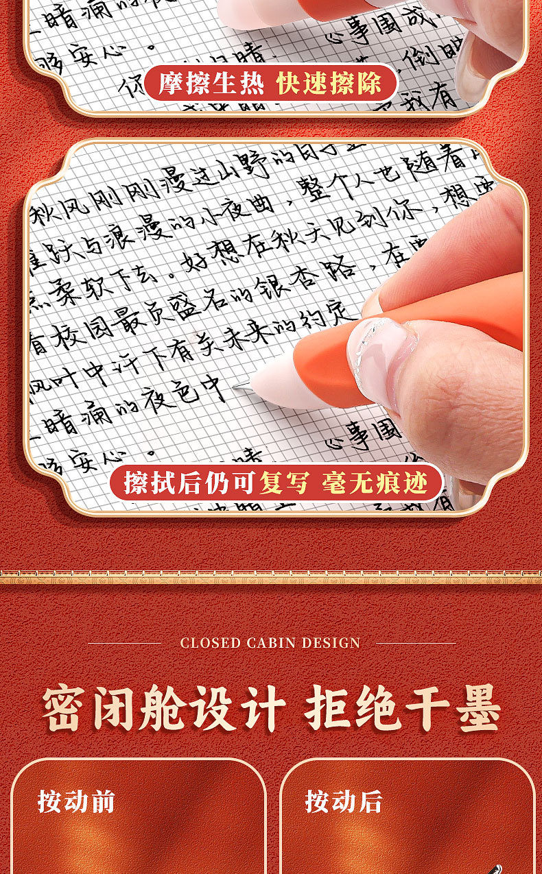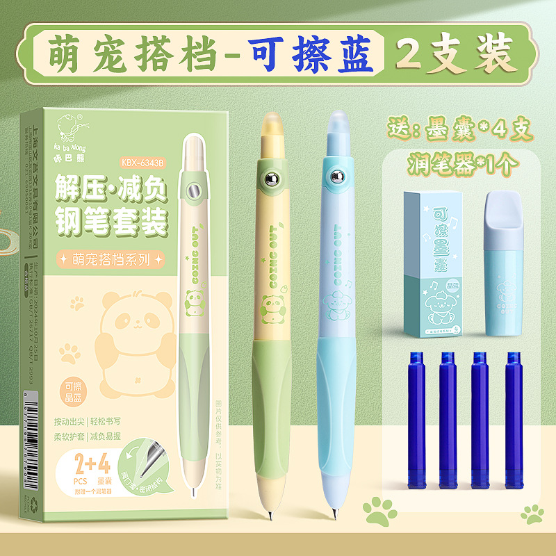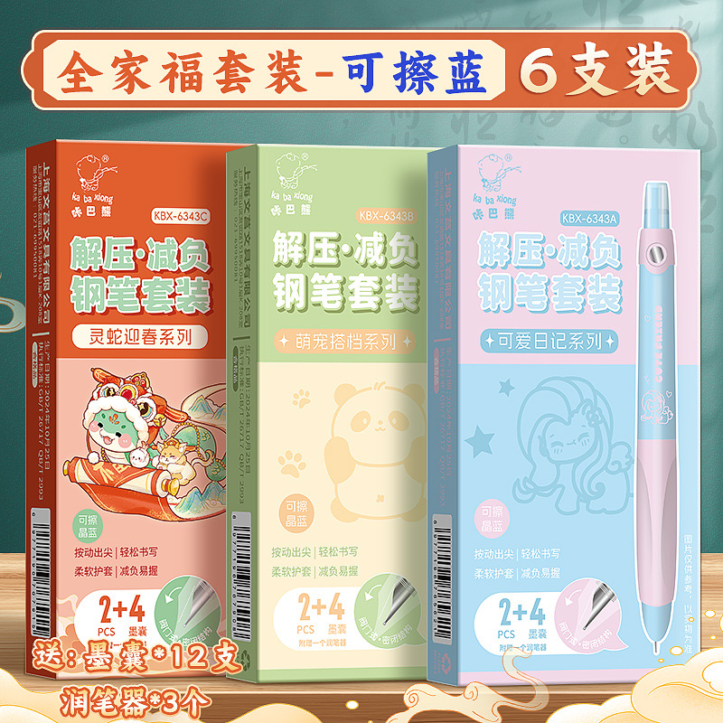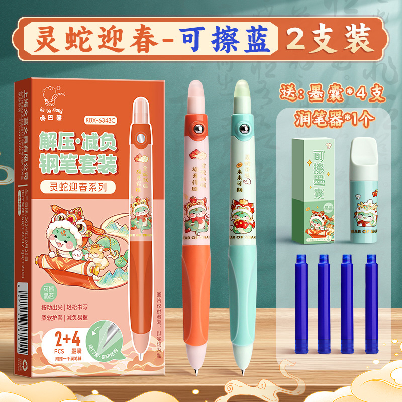 按动钢笔热敏可擦礼盒套装男女生墨囊橡皮摩磨可易擦钢笔晶蓝黑色