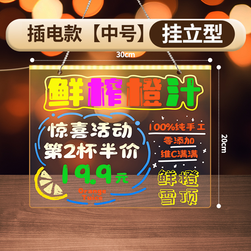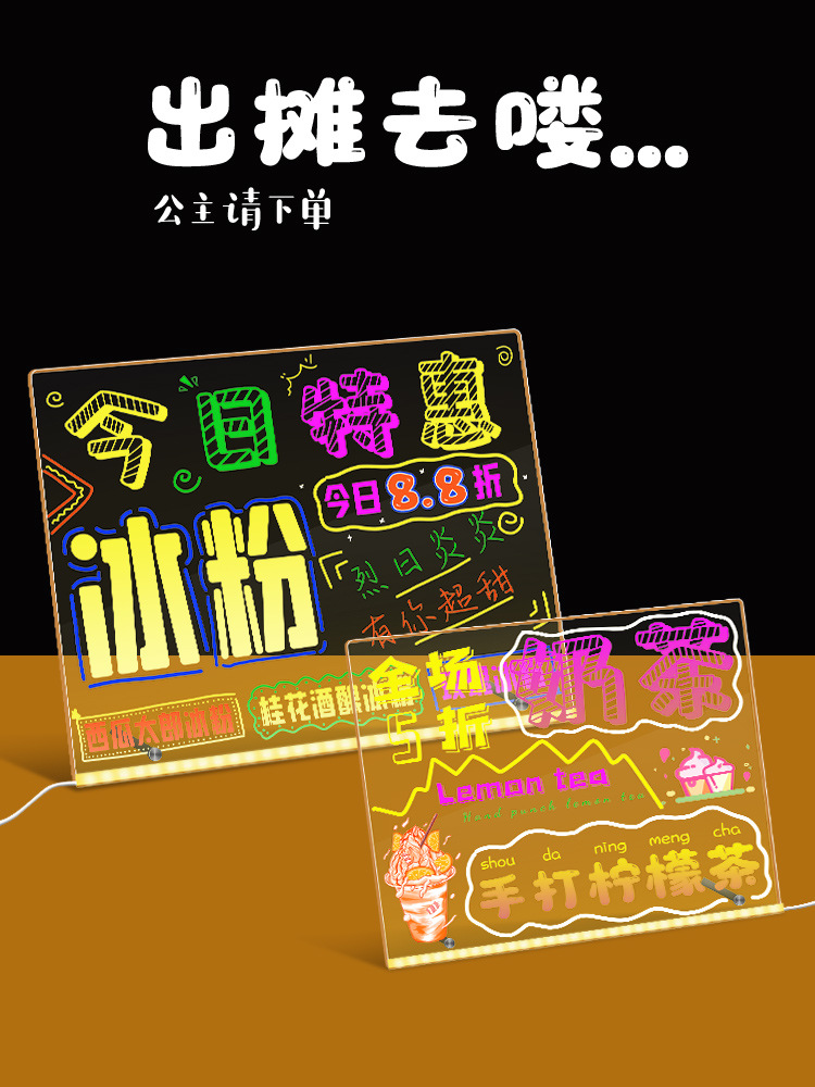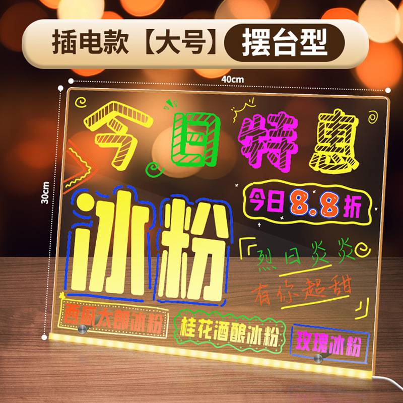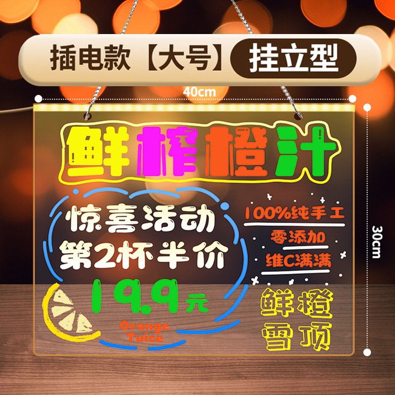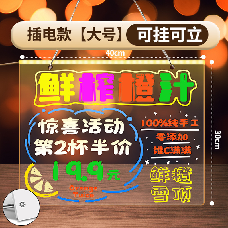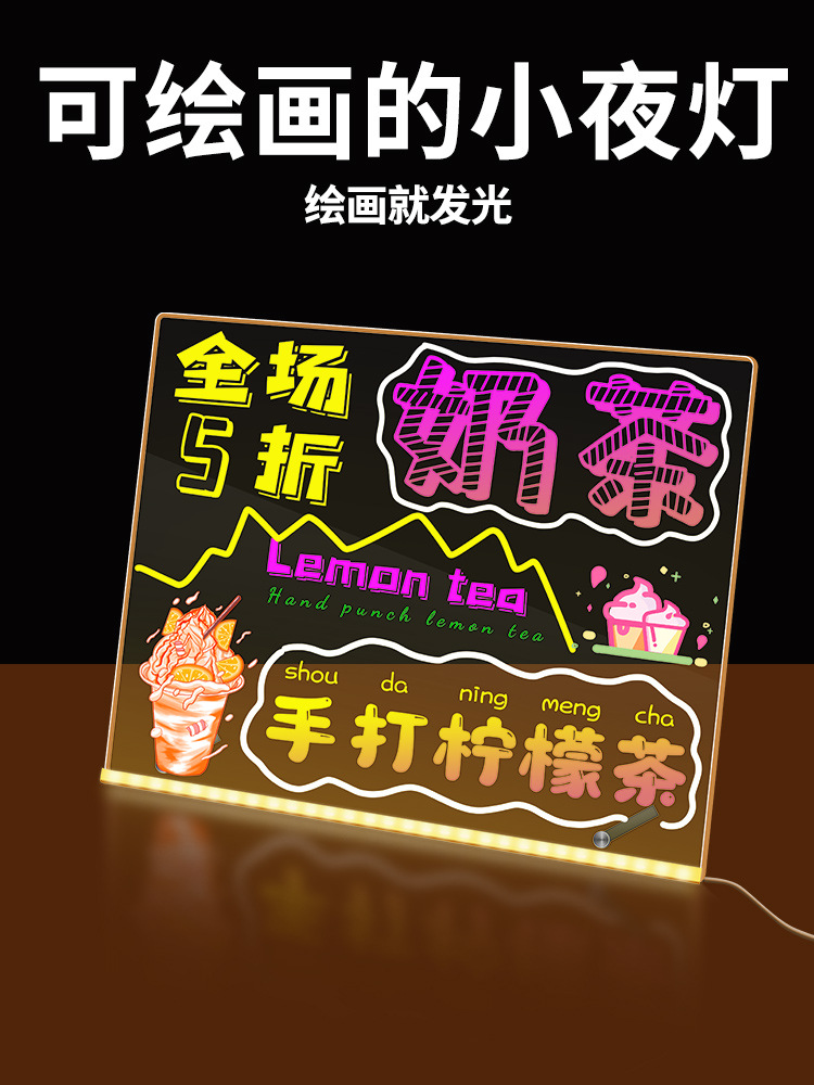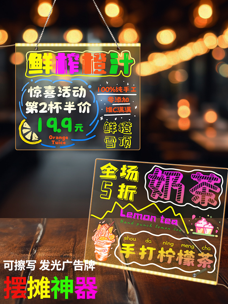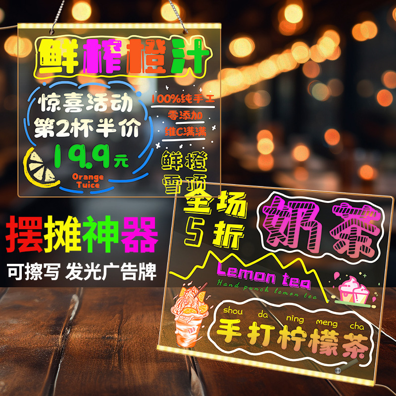 ins可擦写夜光发光广告板小黑板写字板led广告牌摆摊展示牌荧光板