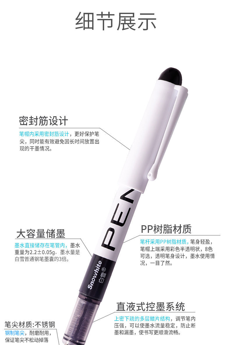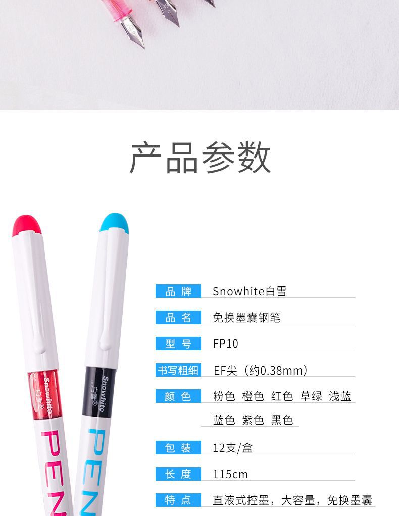 白雪直液式钢笔高颜值免换墨囊钢笔小学生专用一次性可擦钢笔批发