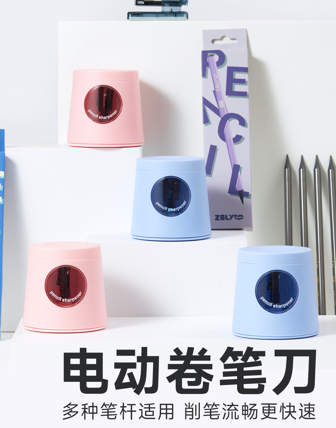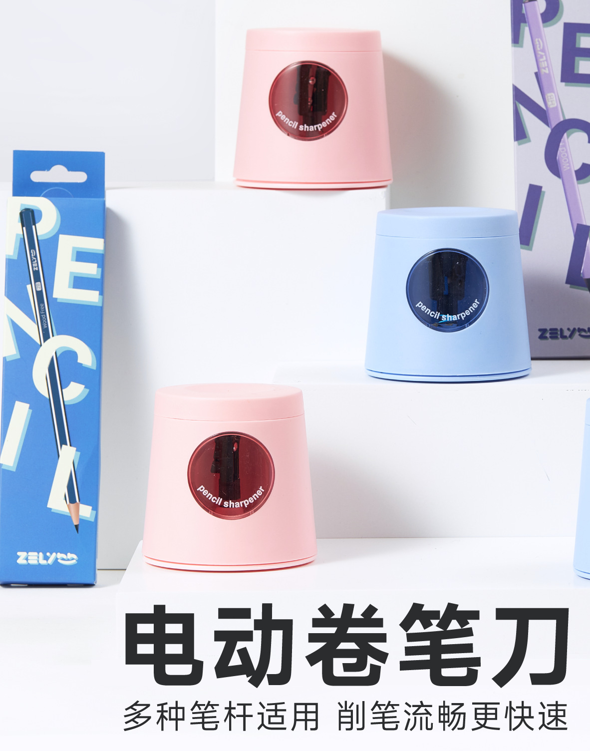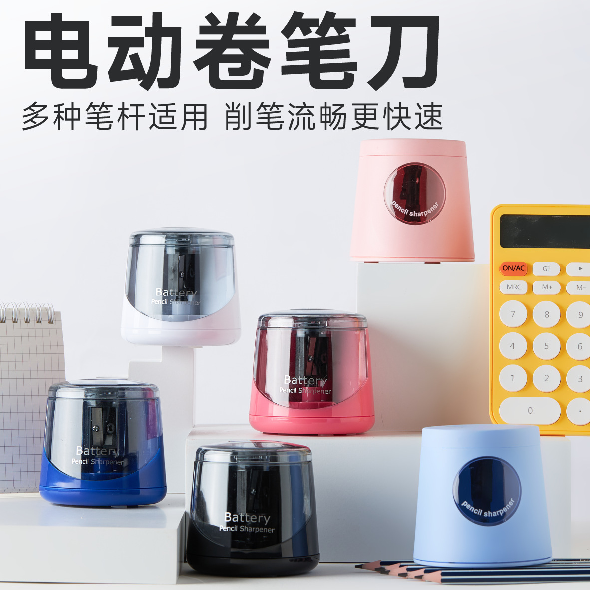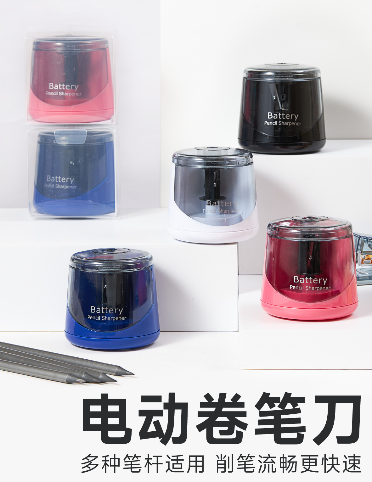 电动卷笔刀小学生儿童跨境自动削笔器转笔刀电池全自动进铅铅笔刀