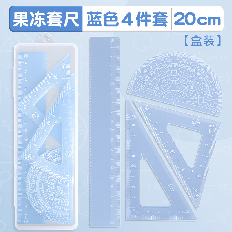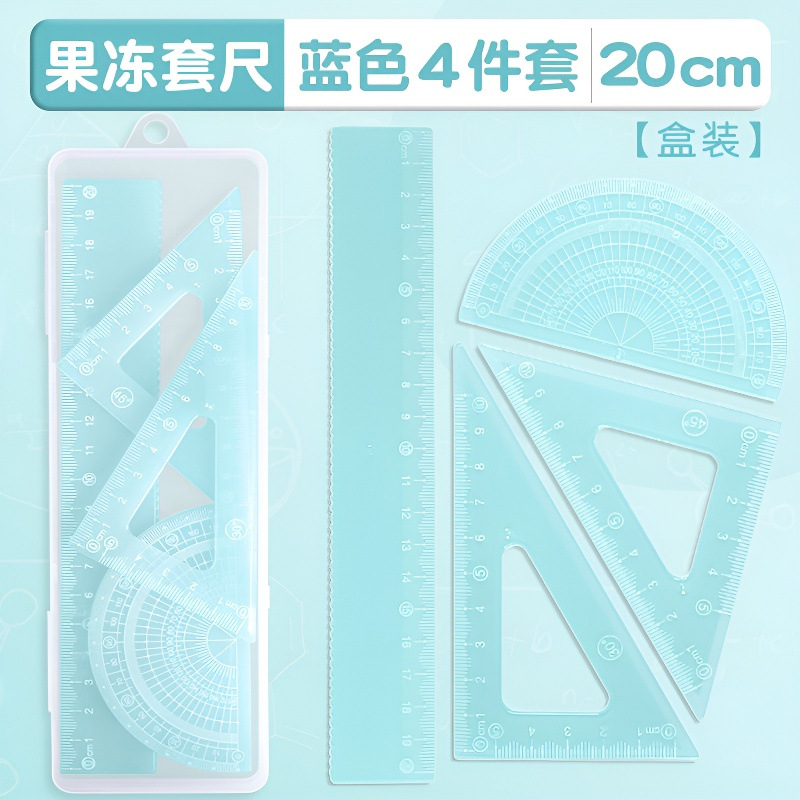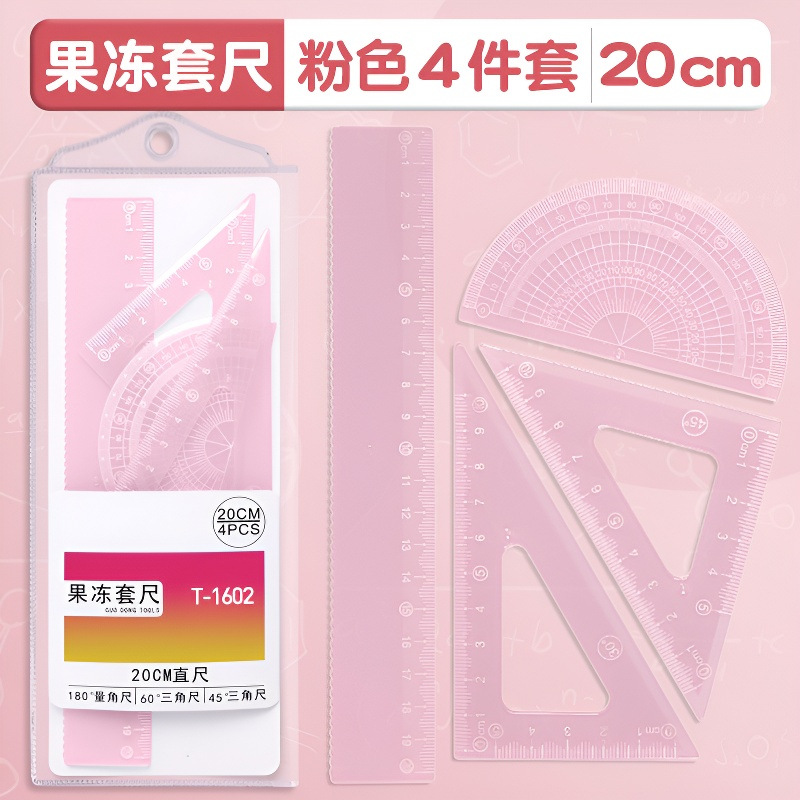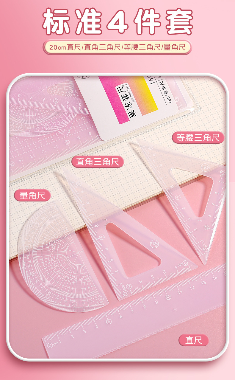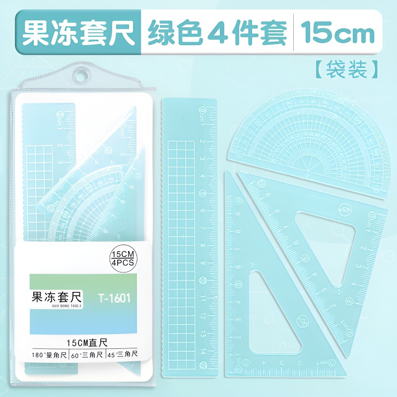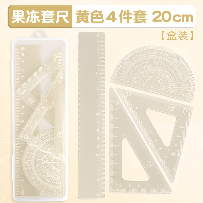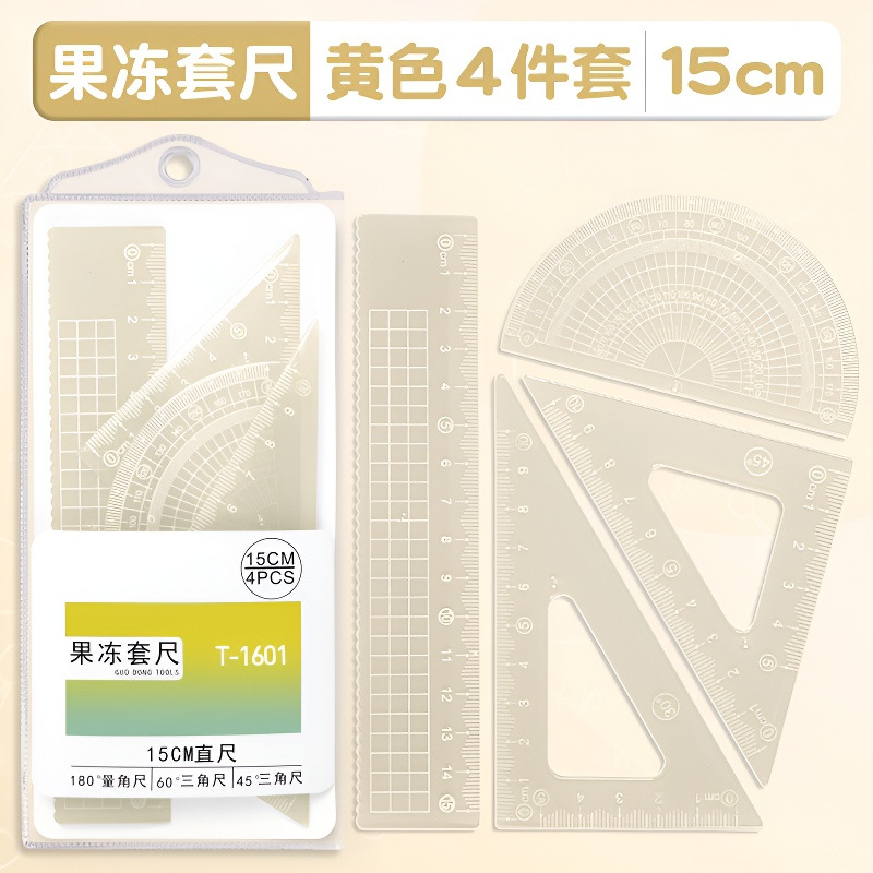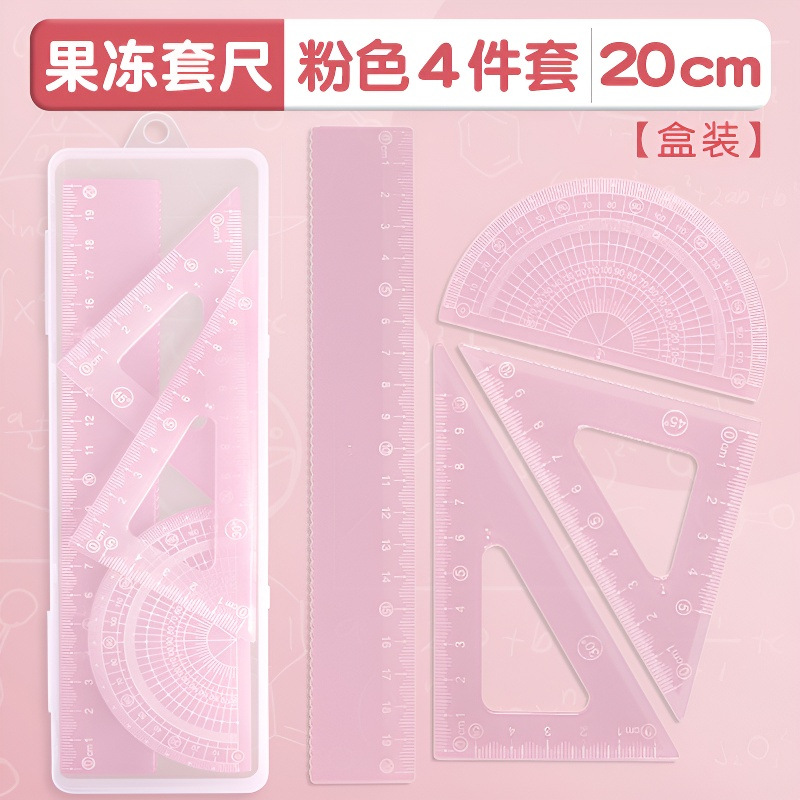 15cm果冻色套尺ins高颜值小学生考试直尺三角板量角器透明简约尺