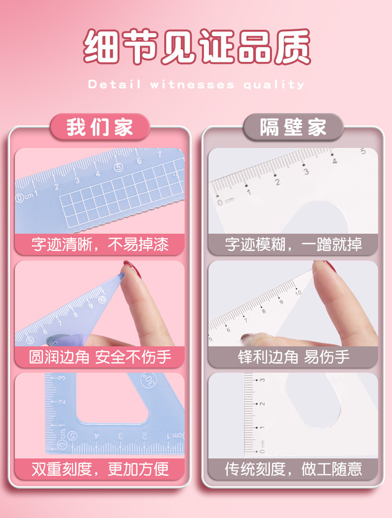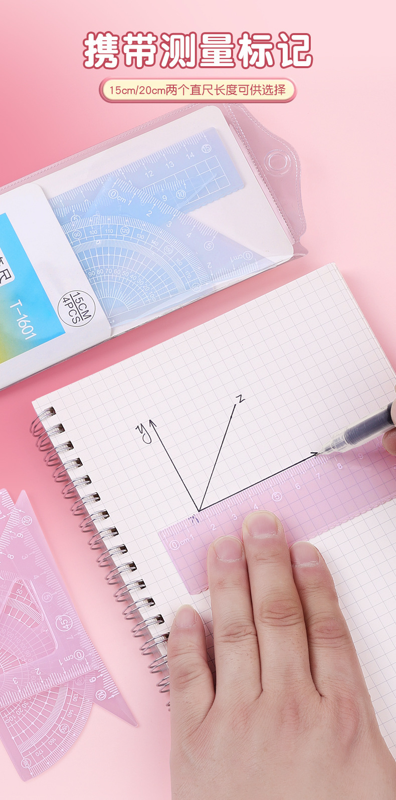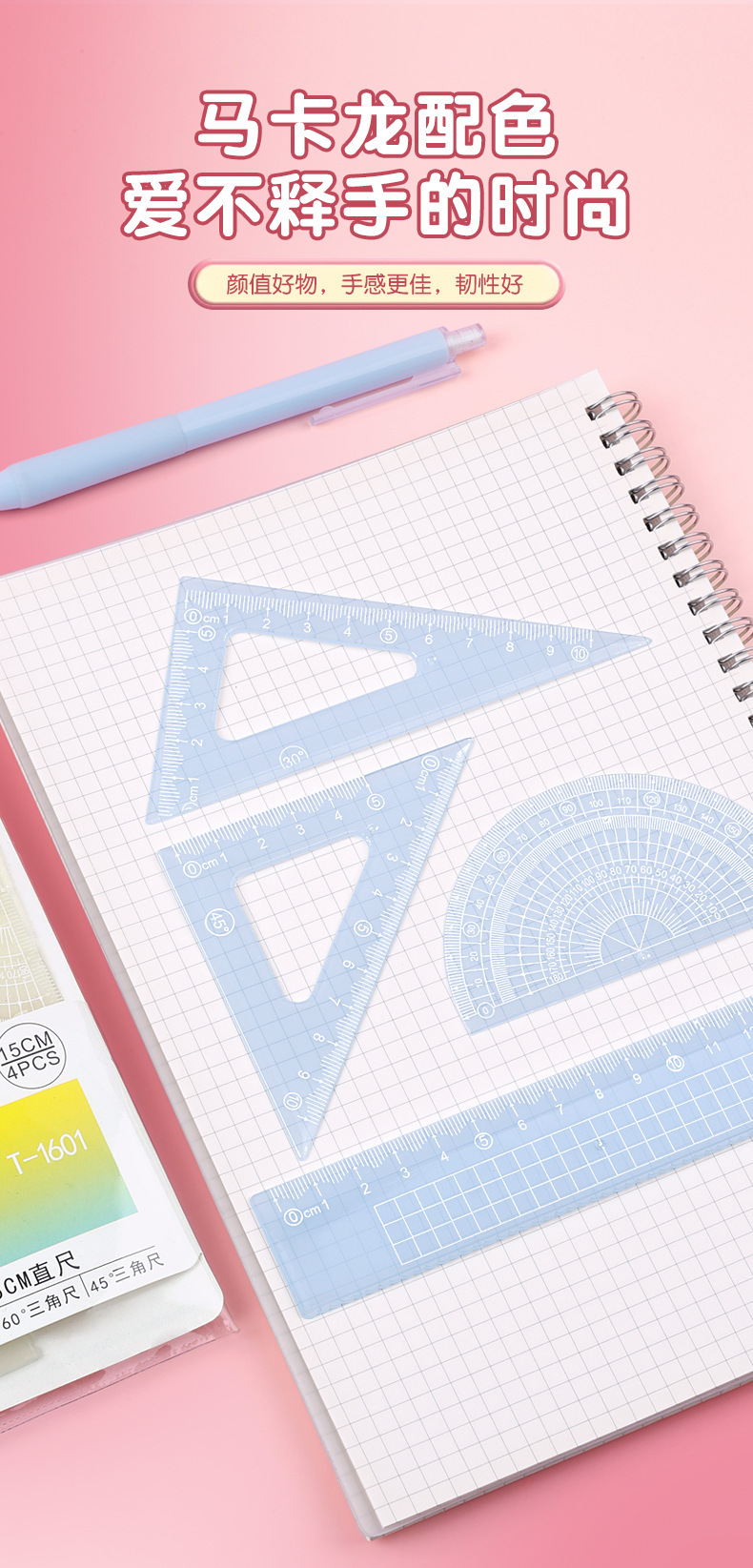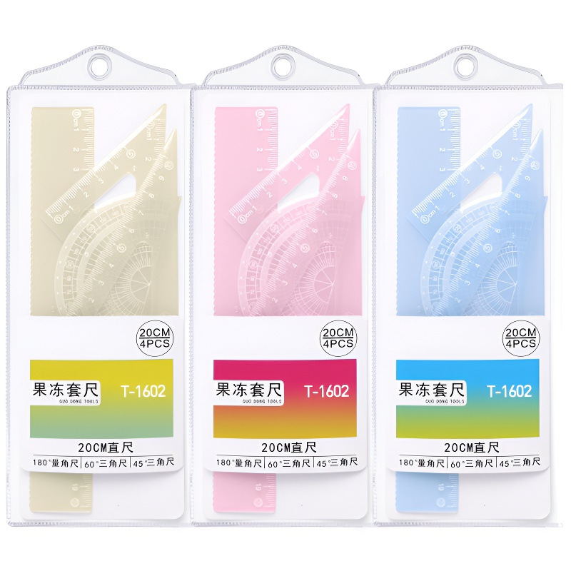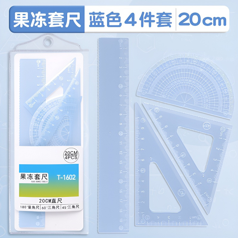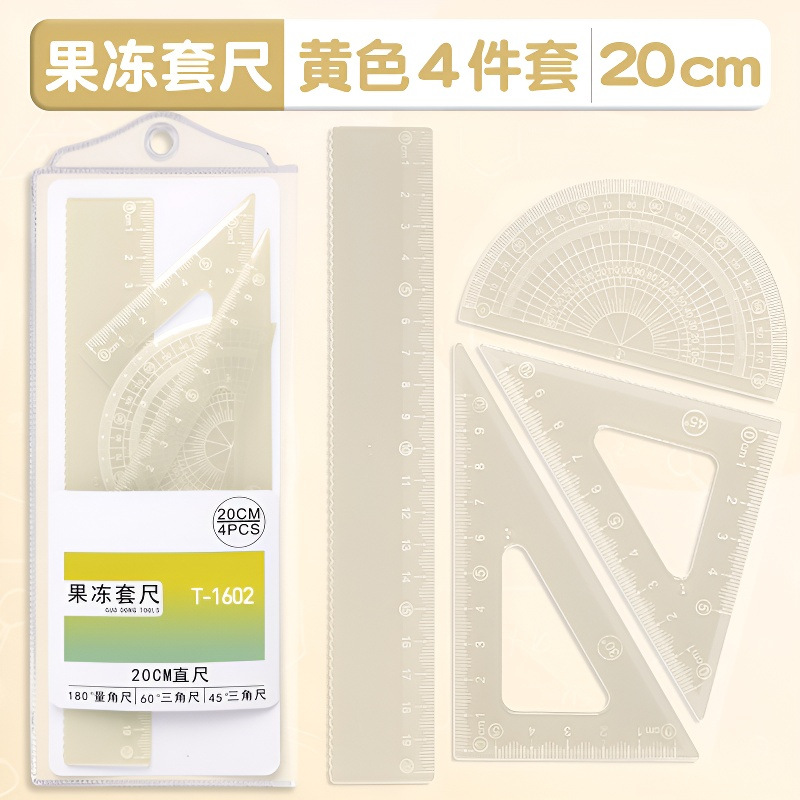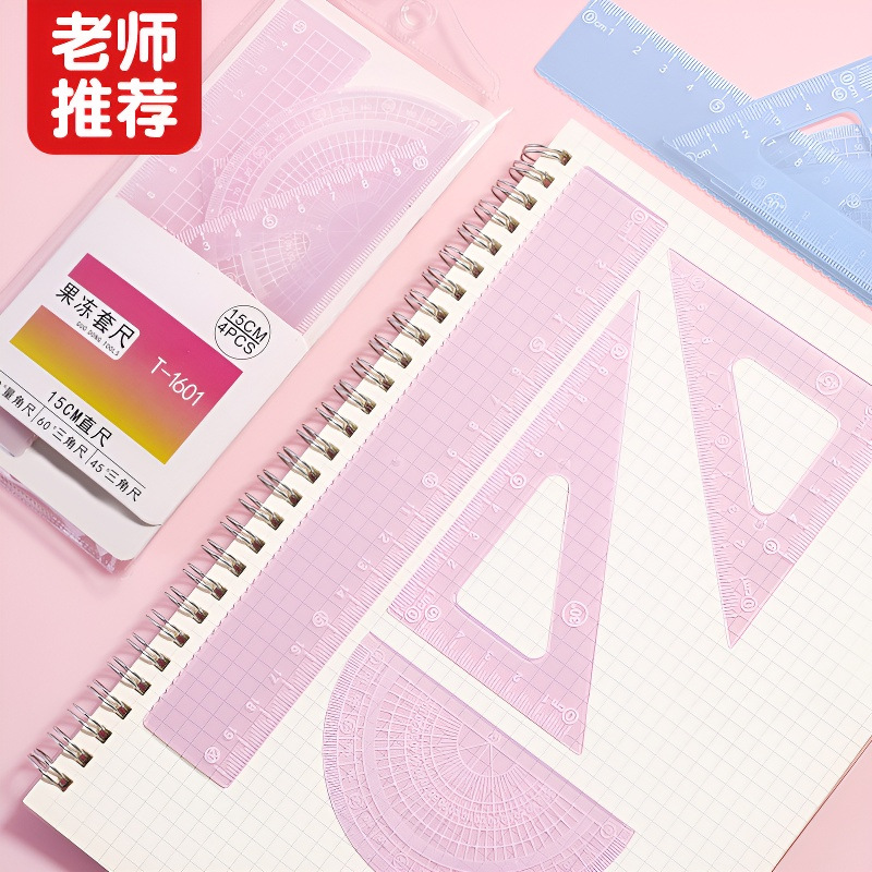 15cm果冻色套尺ins高颜值小学生考试直尺三角板量角器透明简约尺