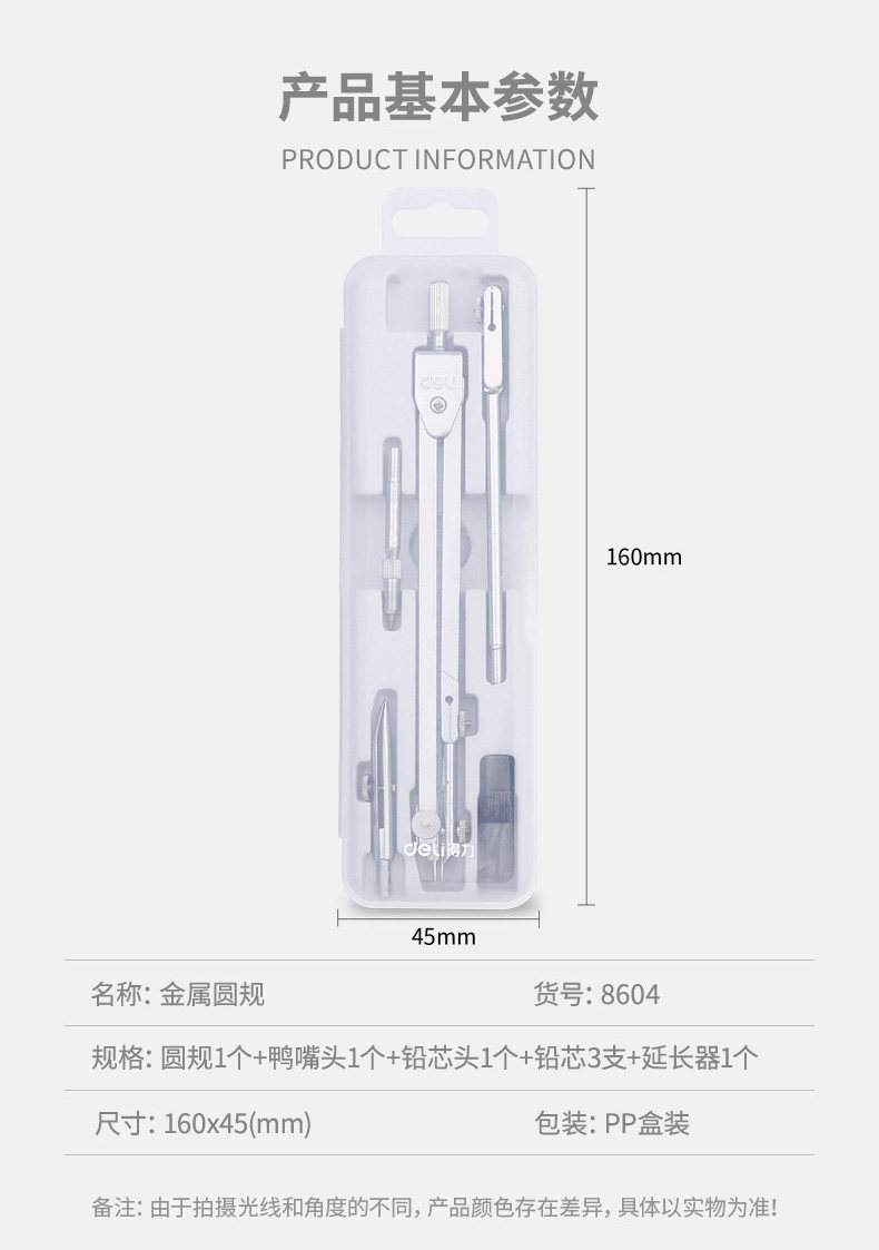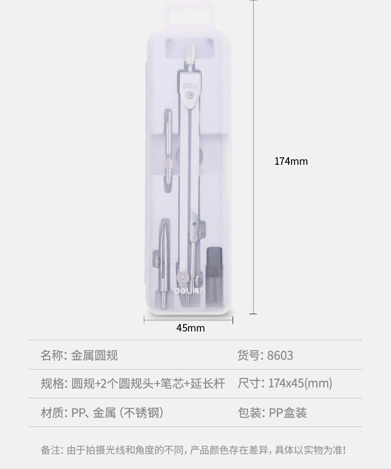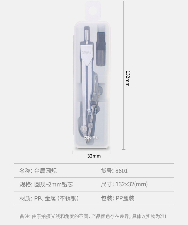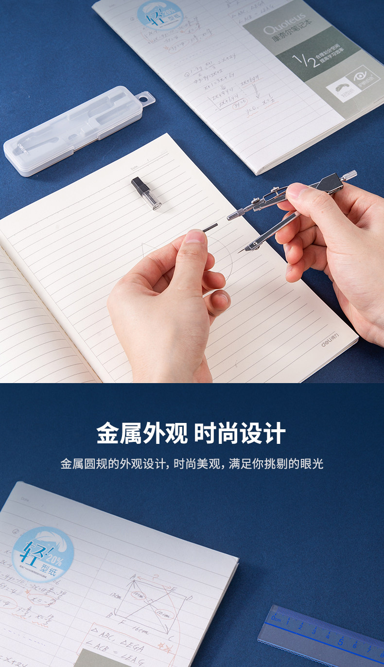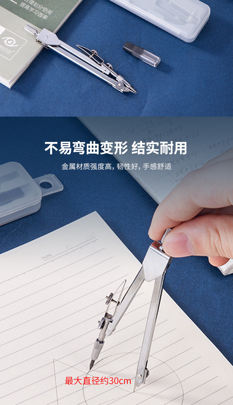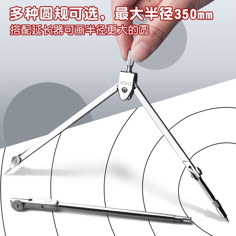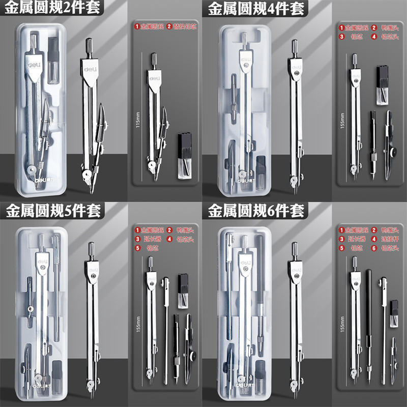 得力金属圆规套装批发初中生专业绘图工具学生专用不锈钢圆规笔芯