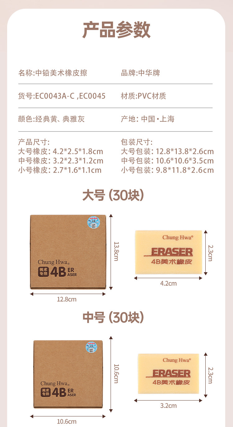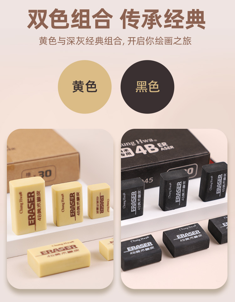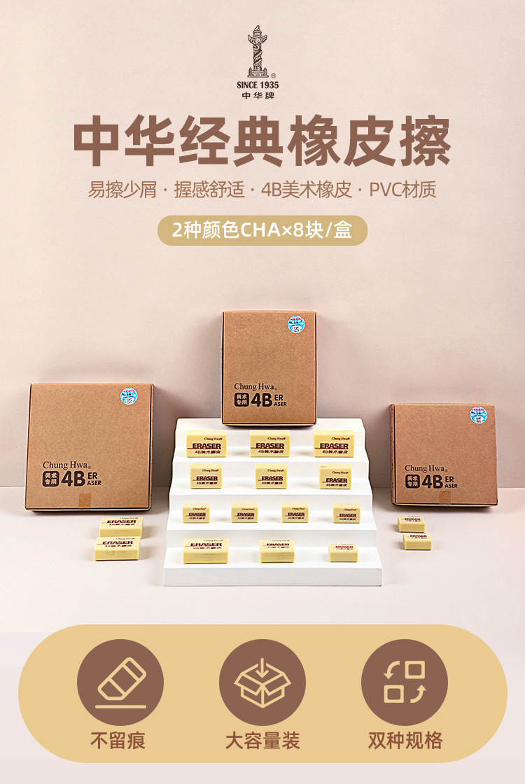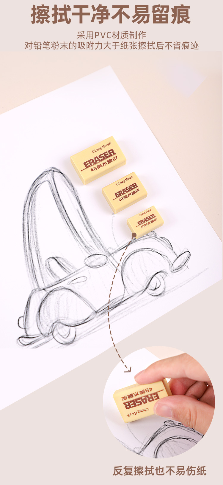 中华文具小学生专用无屑超干净不留痕大号橡皮擦橡皮美术用品批发
