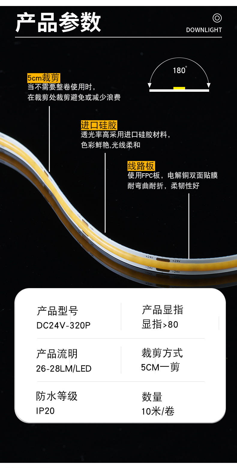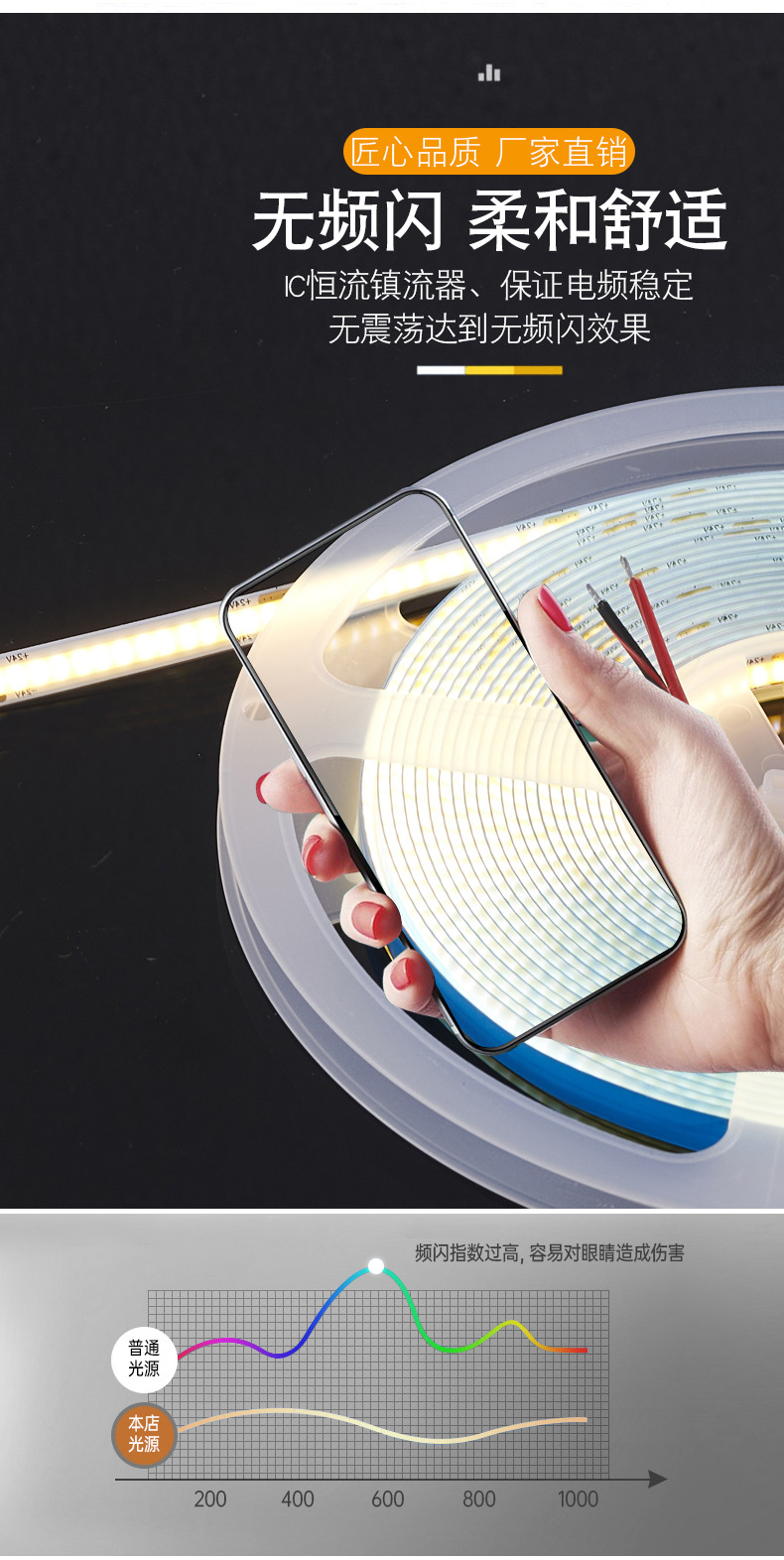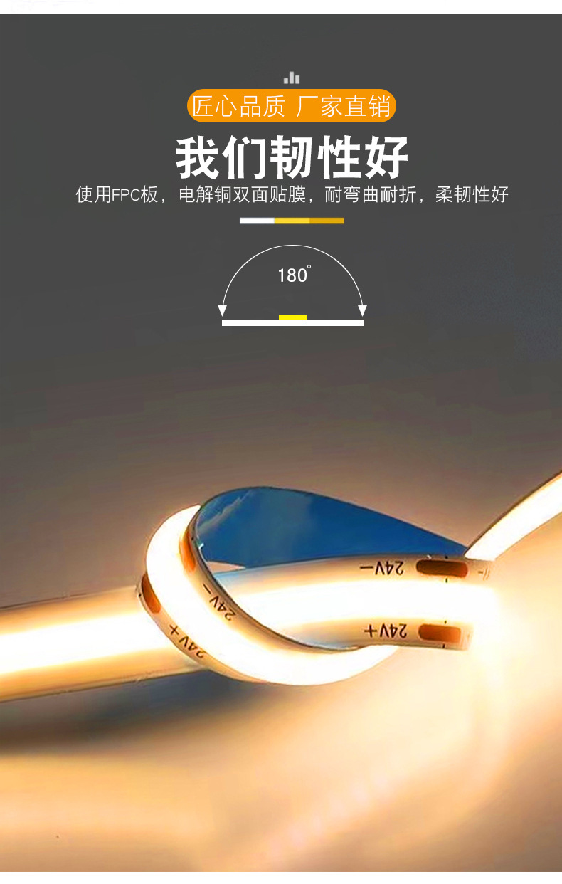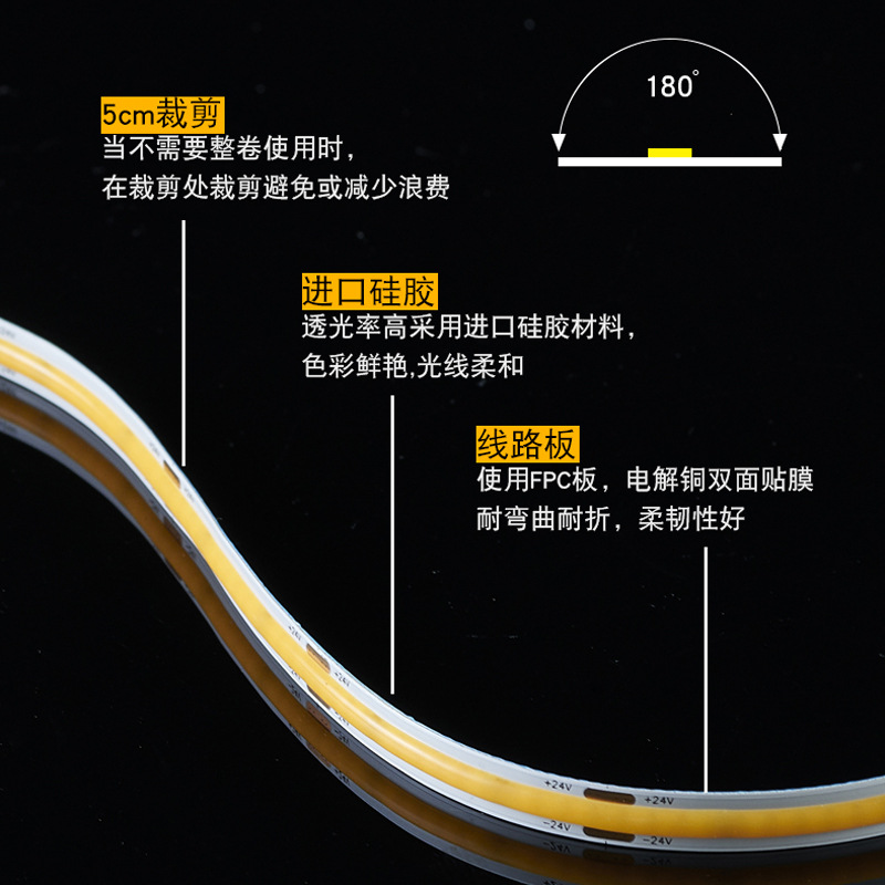 cob灯带高亮低压柔性软灯条无光斑照明线性橱柜灯带