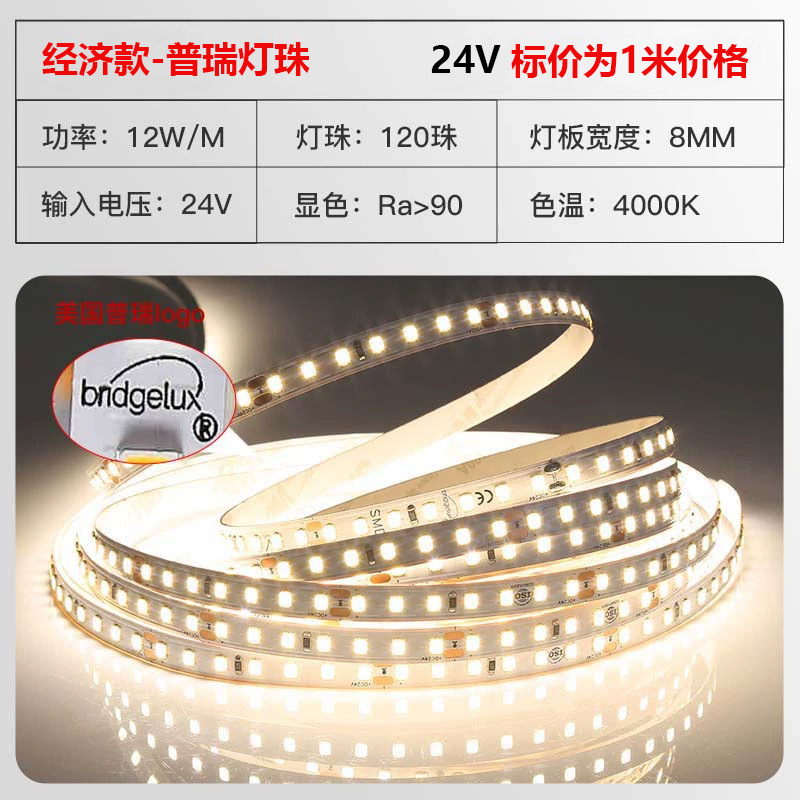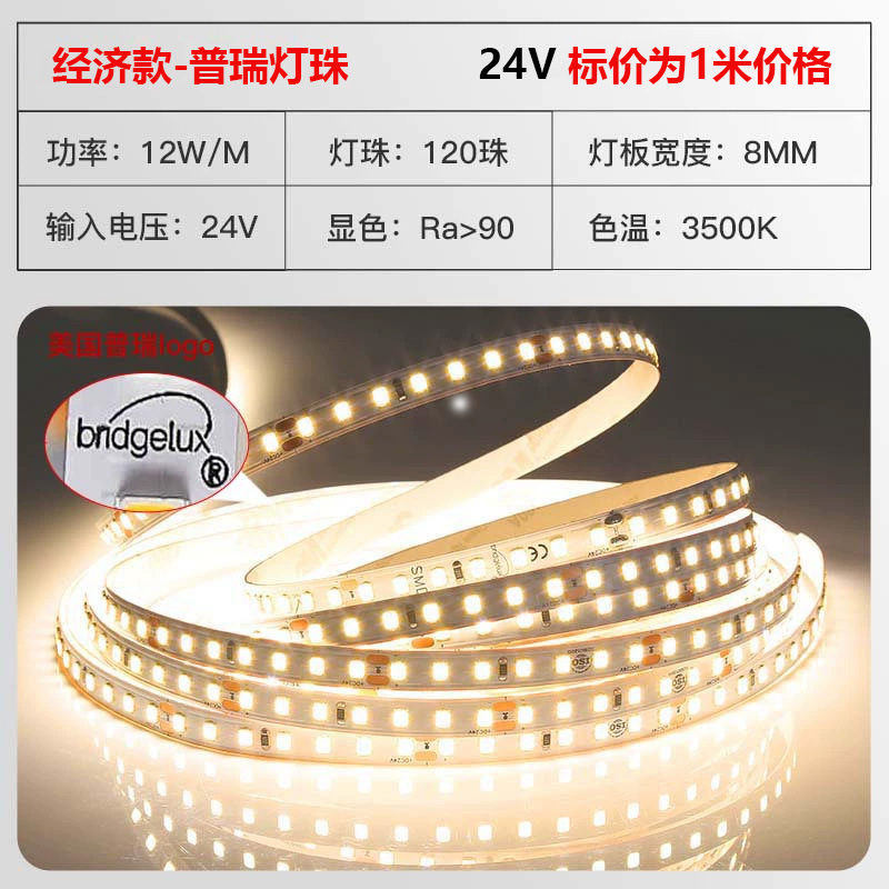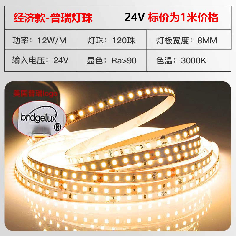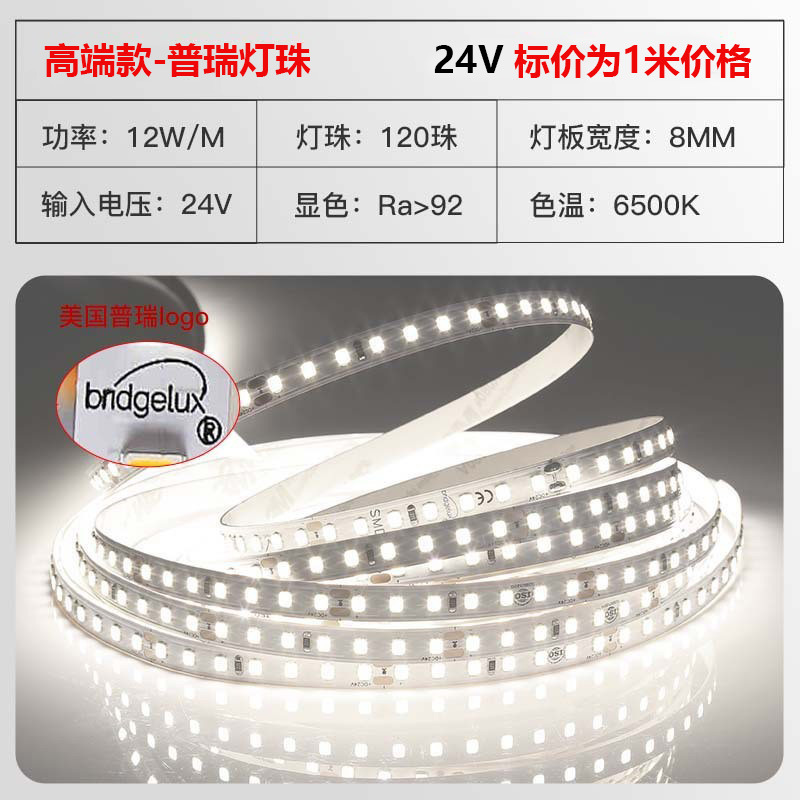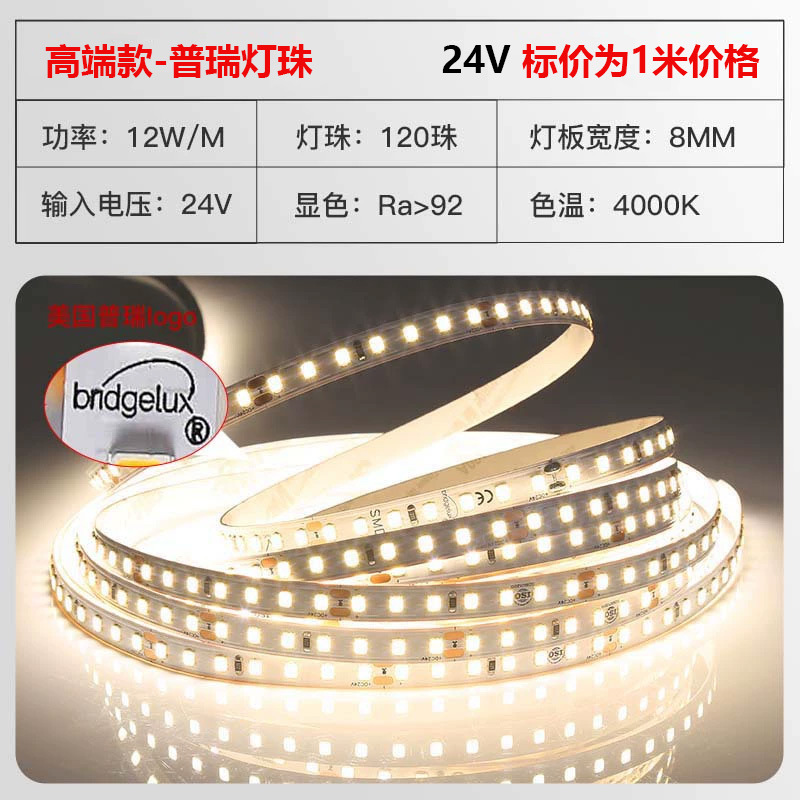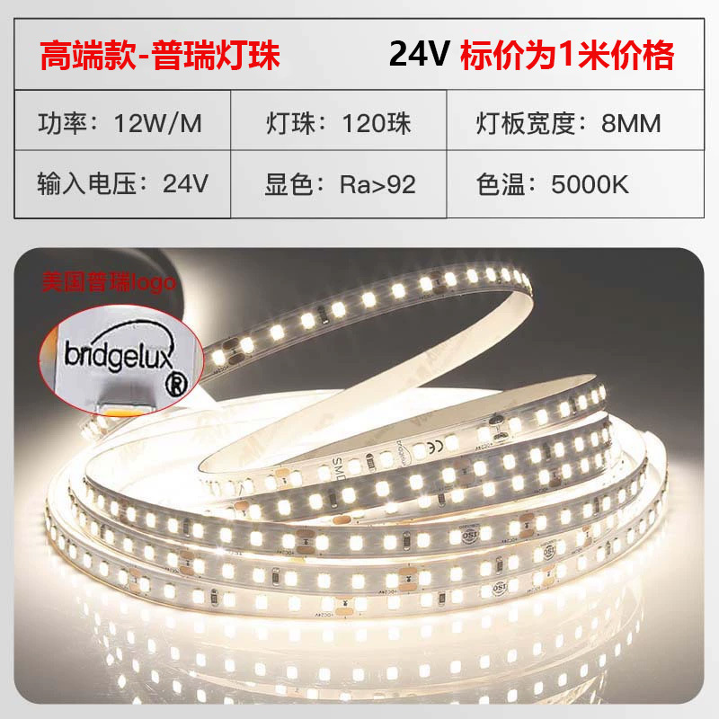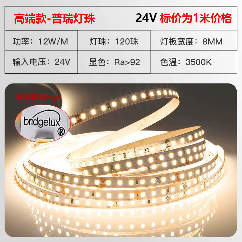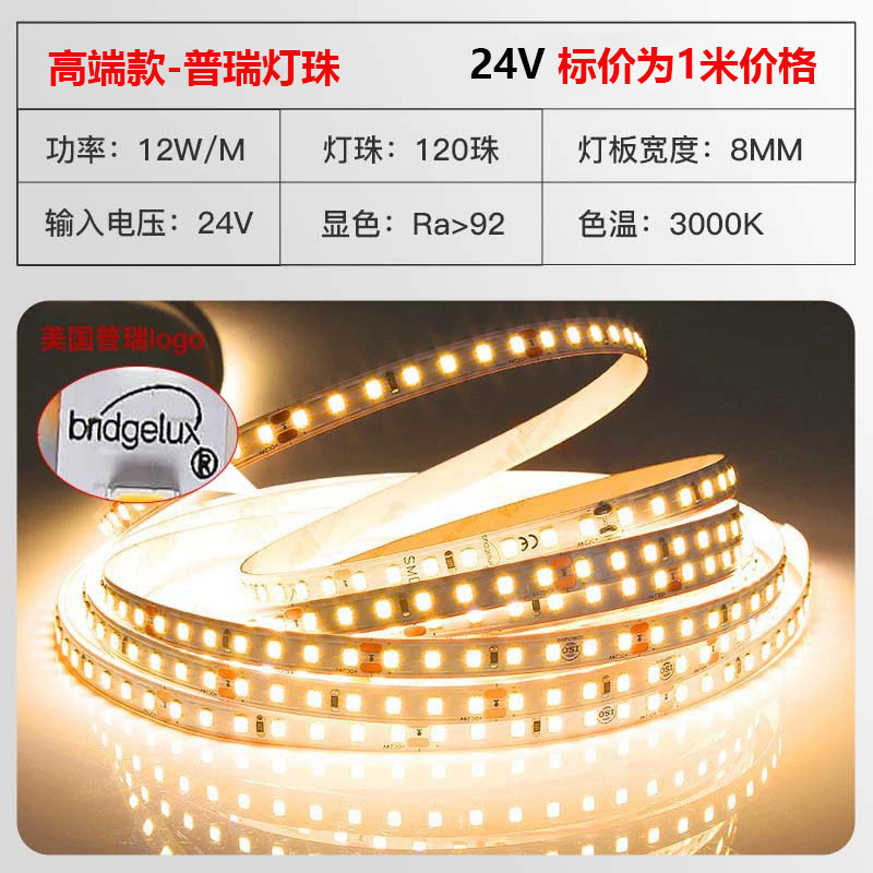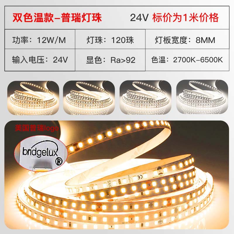普瑞24V低压灯带led灯条自粘高显指超亮双色变光柔性电镀2835灯带