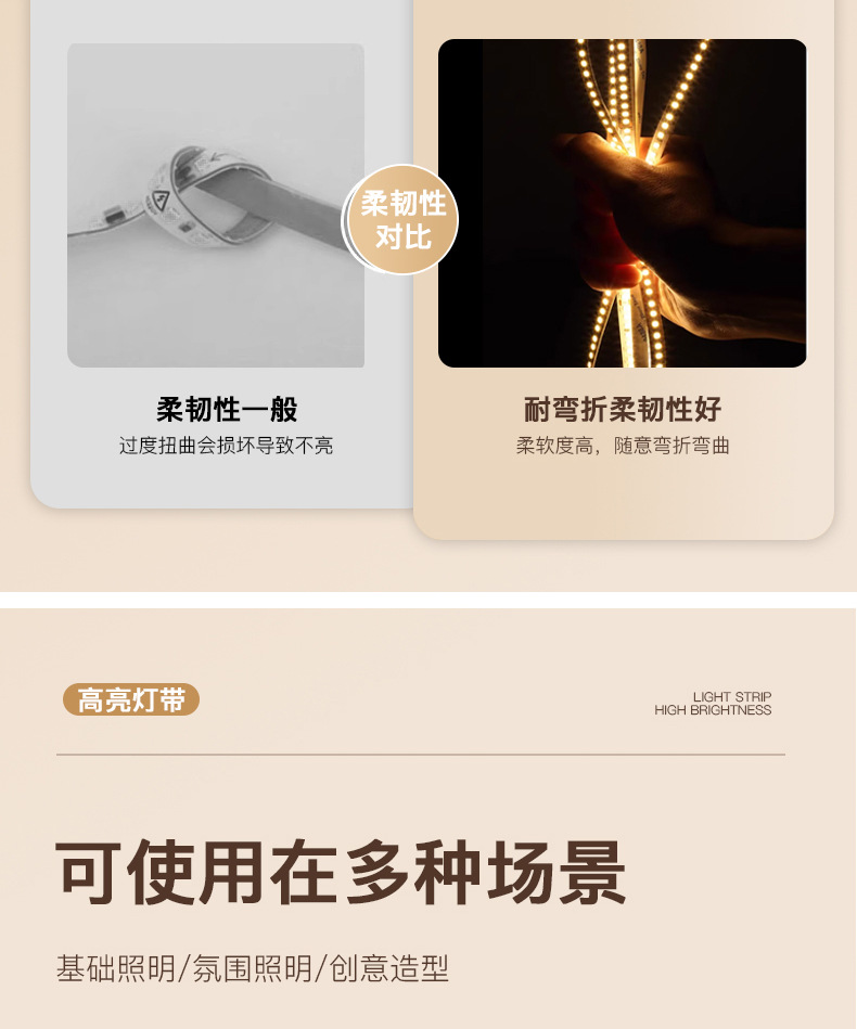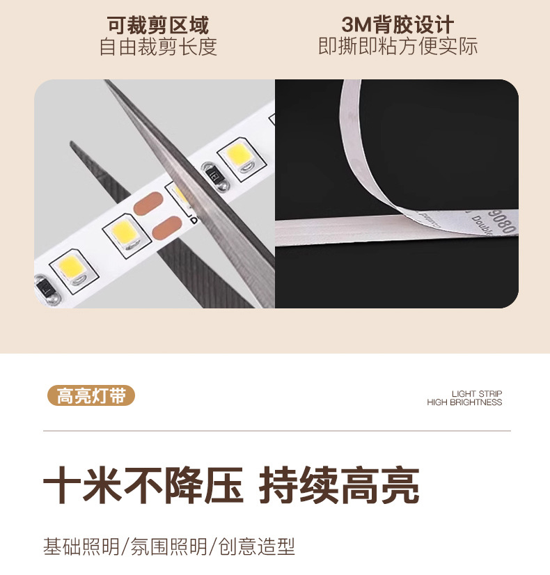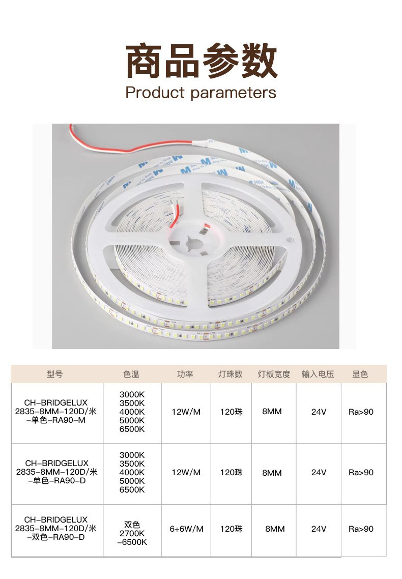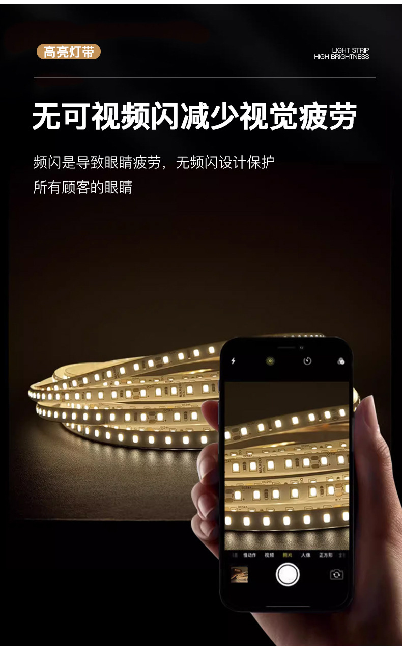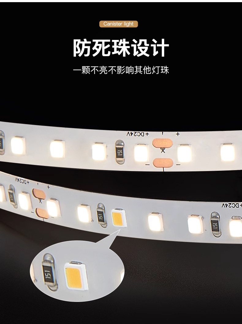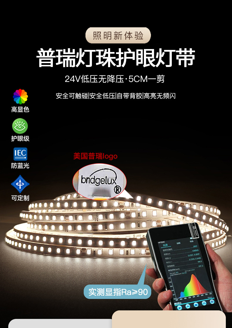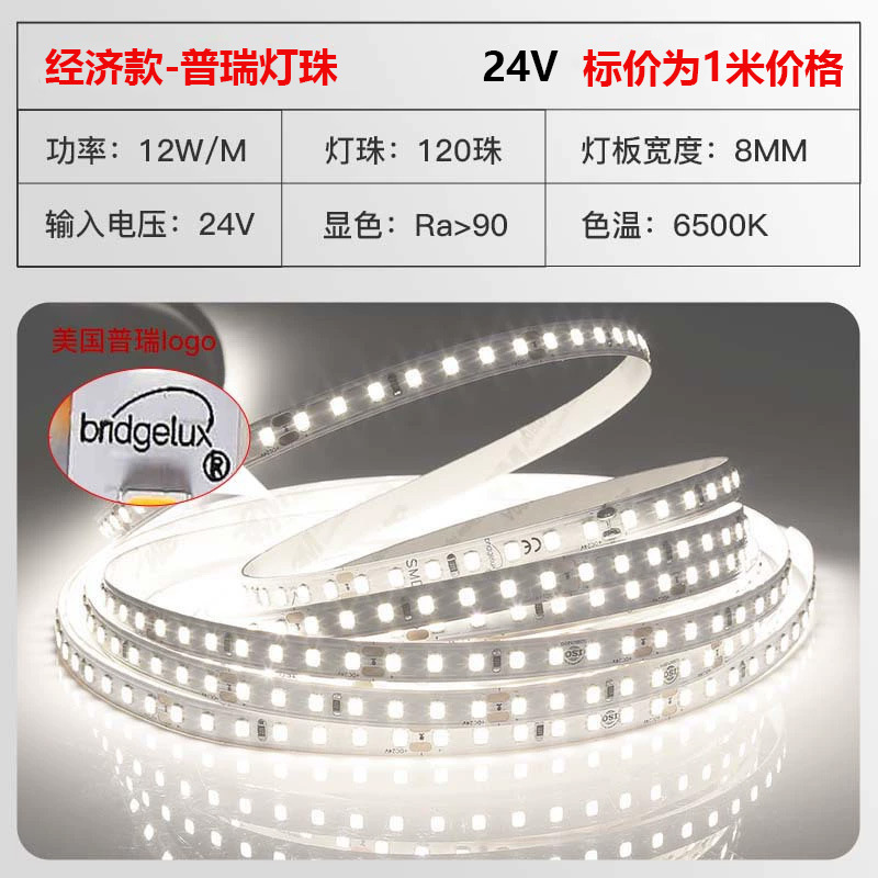 普瑞24V低压灯带led灯条自粘高显指超亮双色变光柔性电镀2835灯带