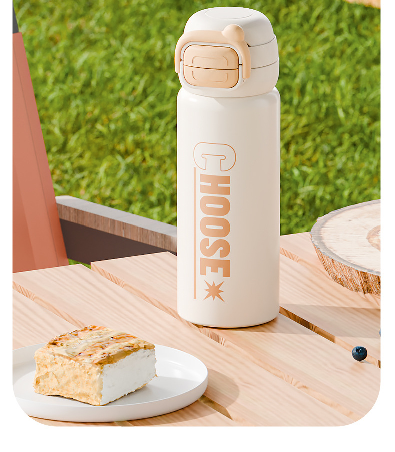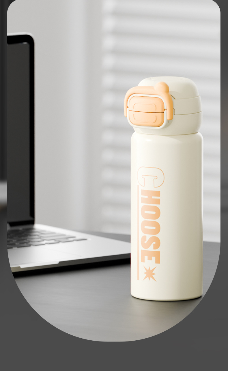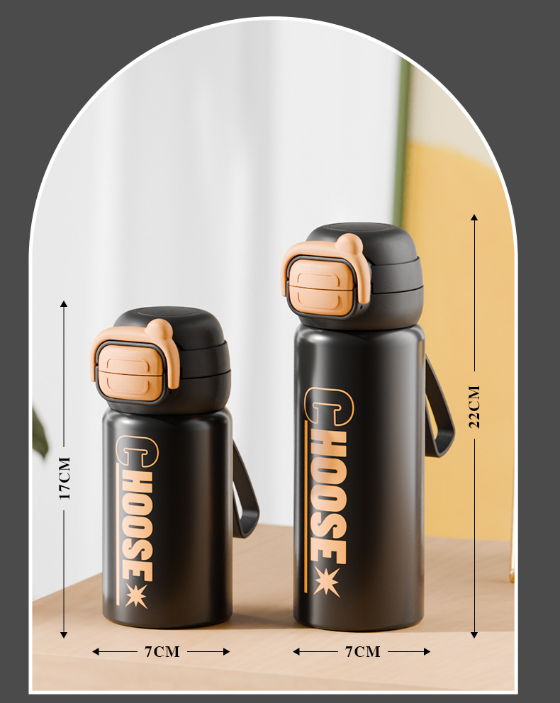 304不锈钢真空保温杯套装厂家批发直身简约弹跳杯外出便携带提绳