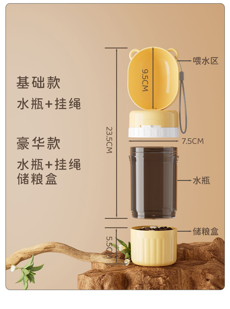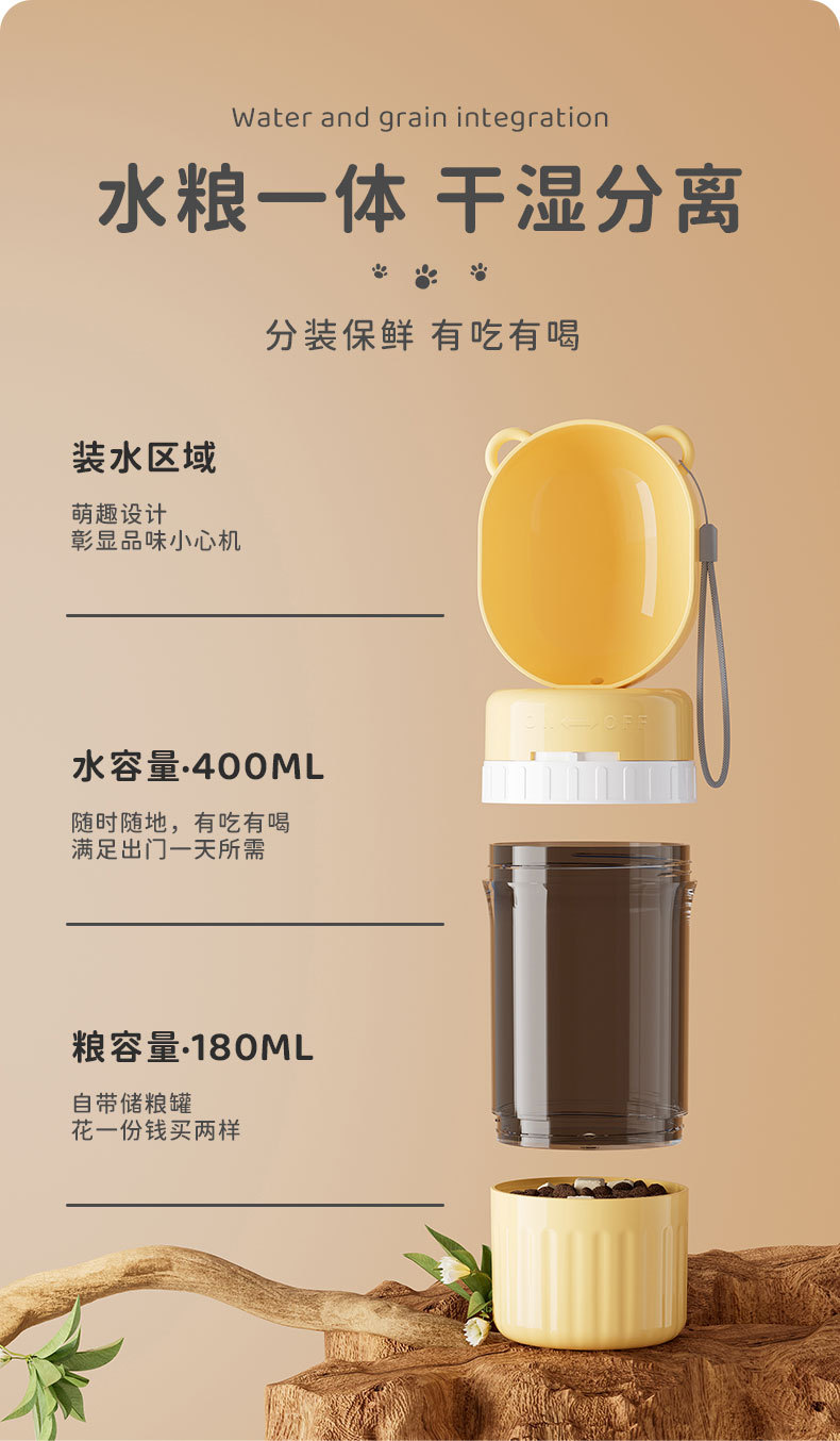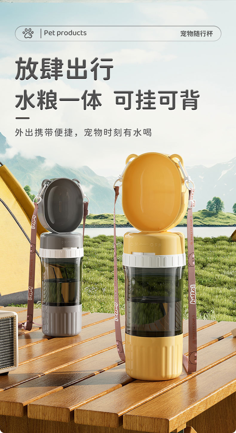 宠物外出水壶可挂可背水粮一体大容量防漏便携饮水器户外遛狗必备