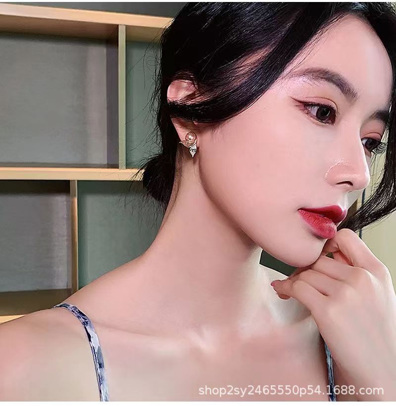 925纯银针珍珠耳钉2024年新款潮感时尚耳环女网红爆款耳饰品