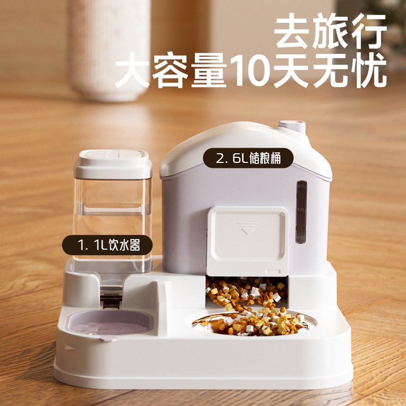 雪顶自动喂食喂水器猫咪大容量饮水机一体喝水狗碗防打翻源头厂家