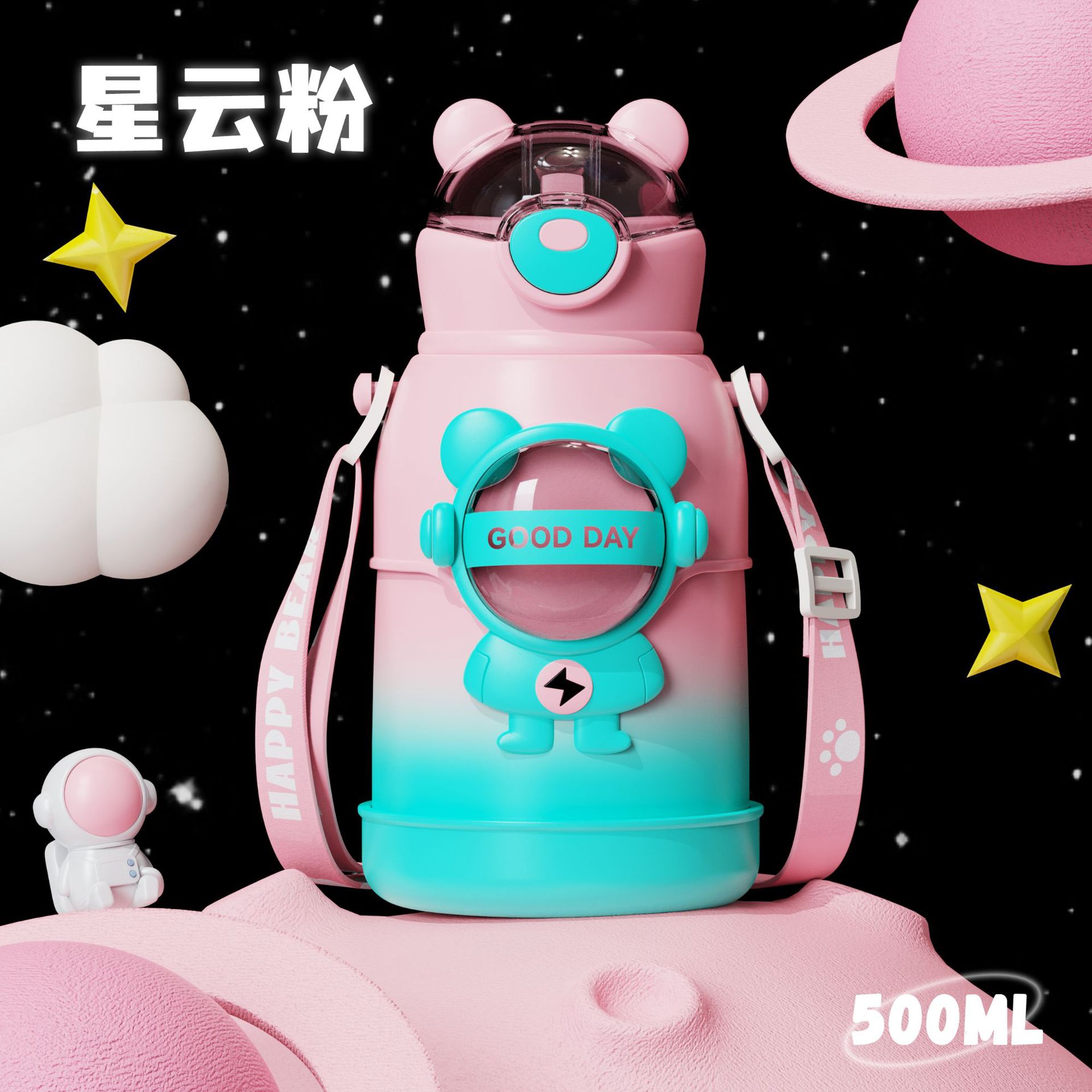 新款高颜值便携儿童保温杯卡通保温壶学生背带316不锈钢吸管水杯