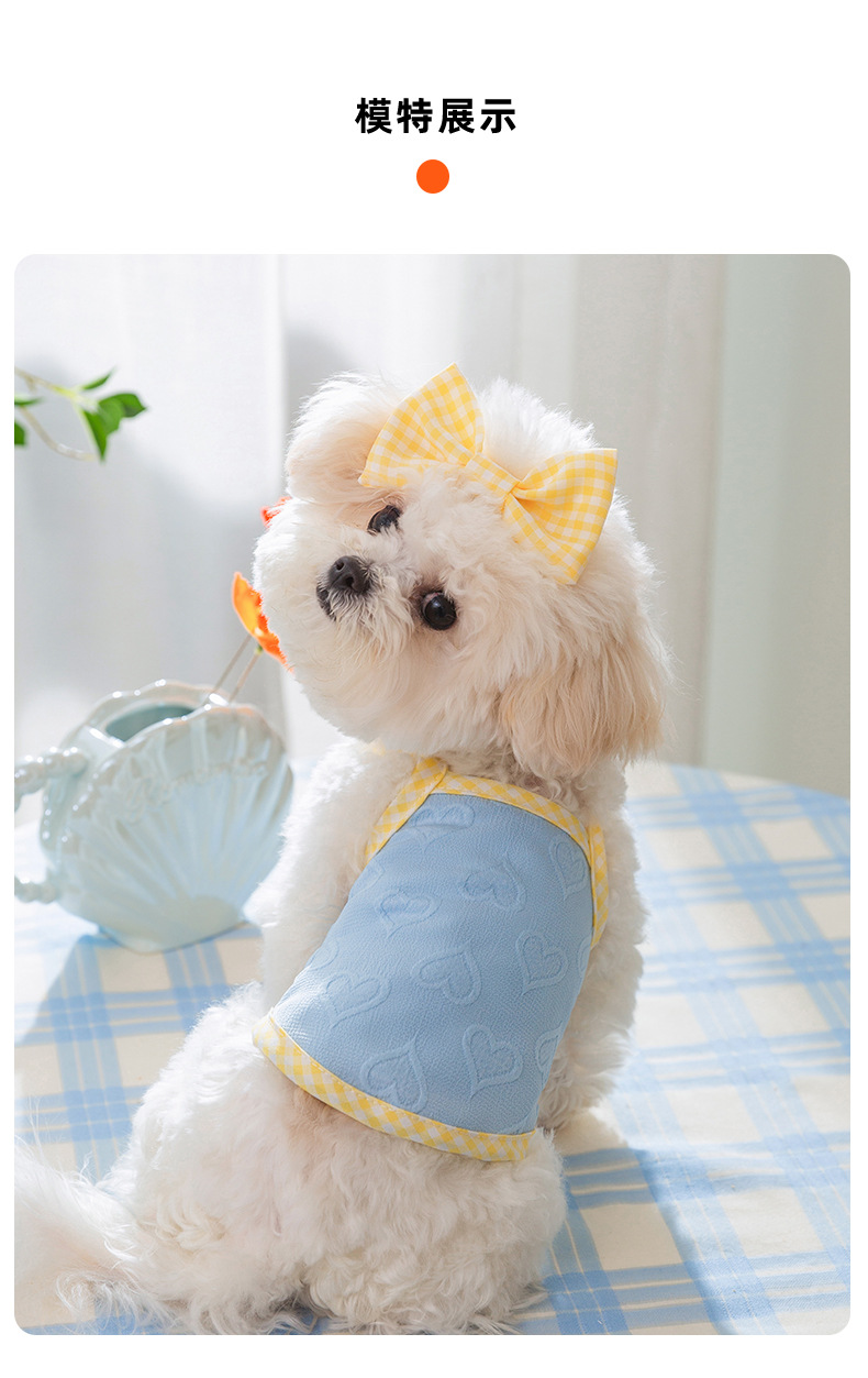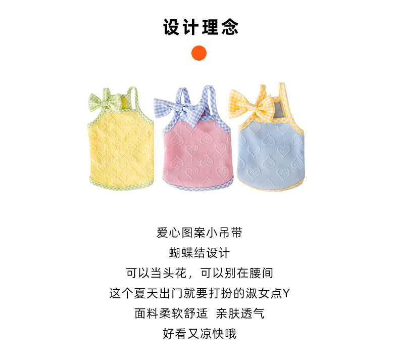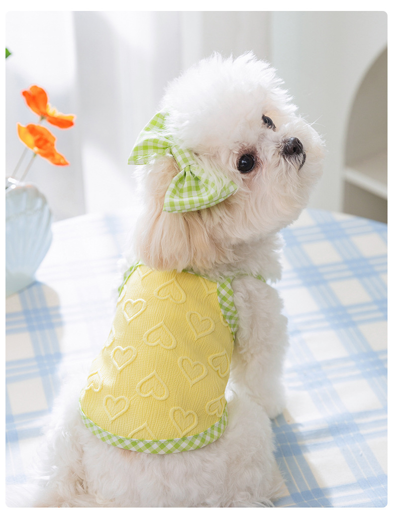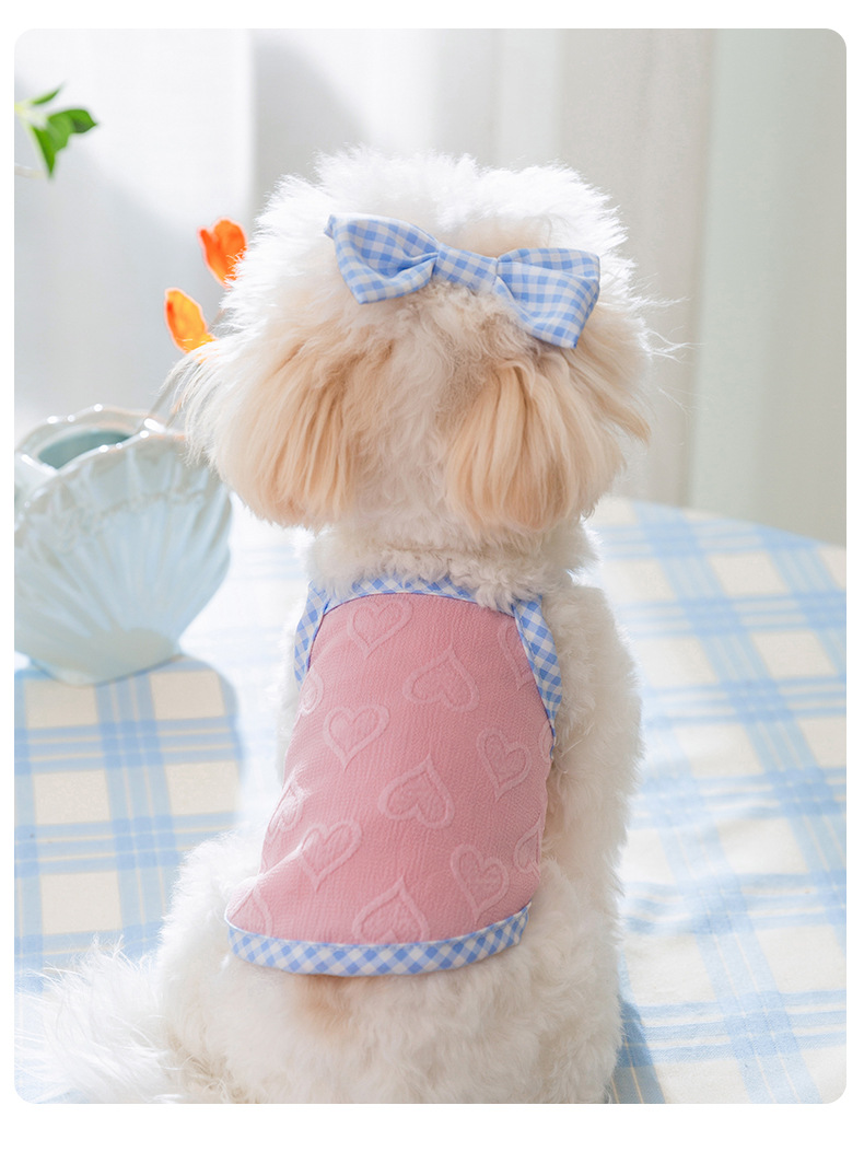 爱心浮雕纹理蝴蝶结吊带背心小型犬比熊猫咪春夏宠物狗狗衣服批发