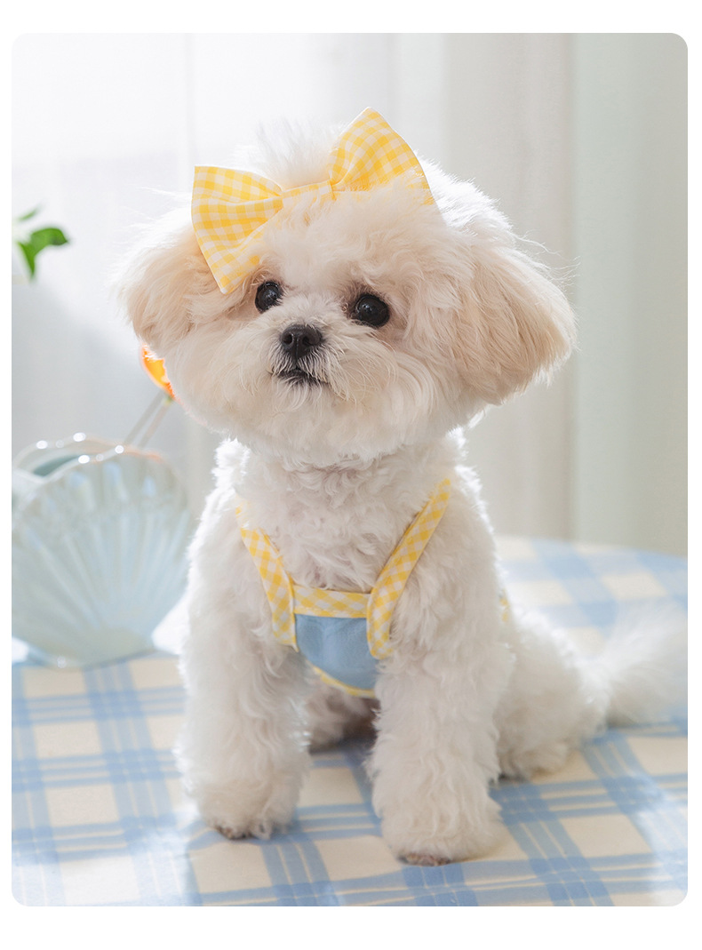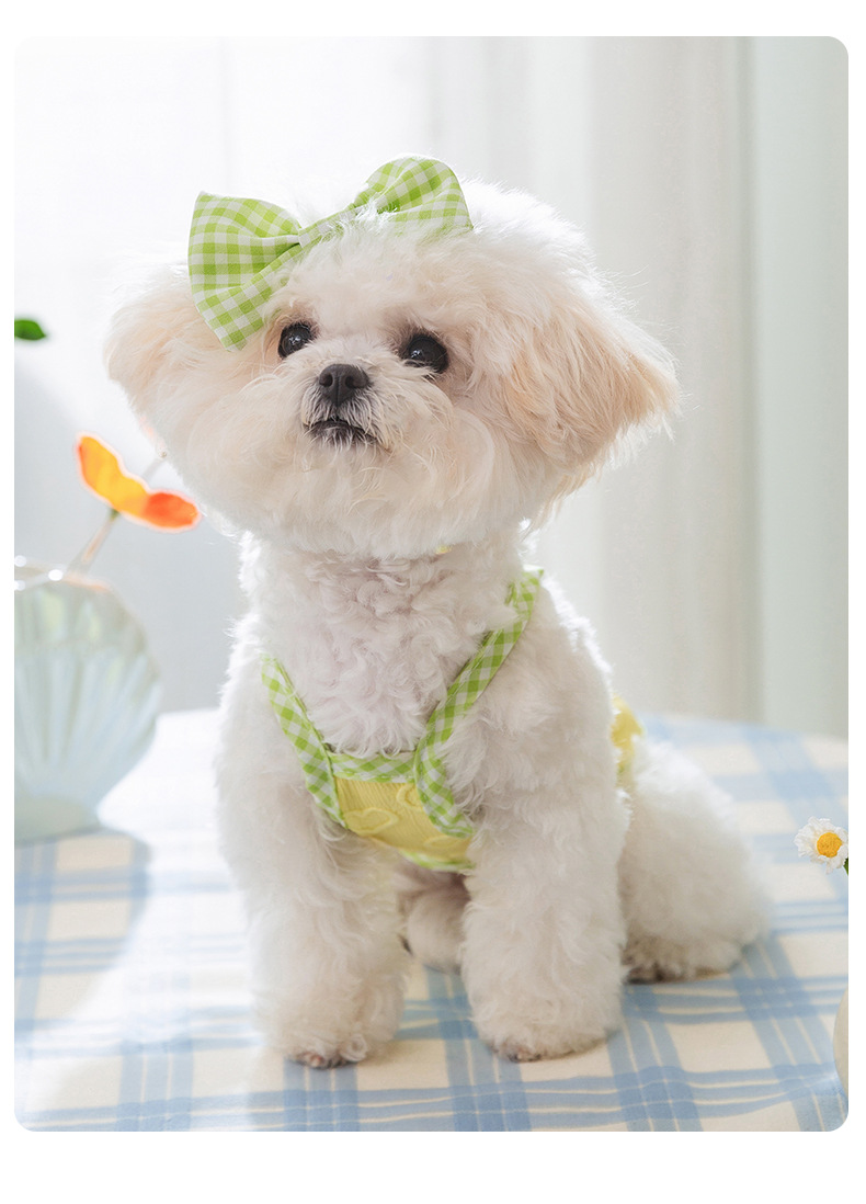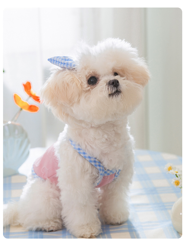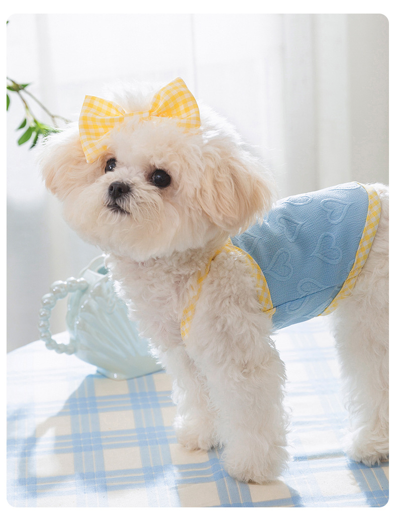 爱心浮雕纹理蝴蝶结吊带背心小型犬比熊猫咪春夏宠物狗狗衣服批发