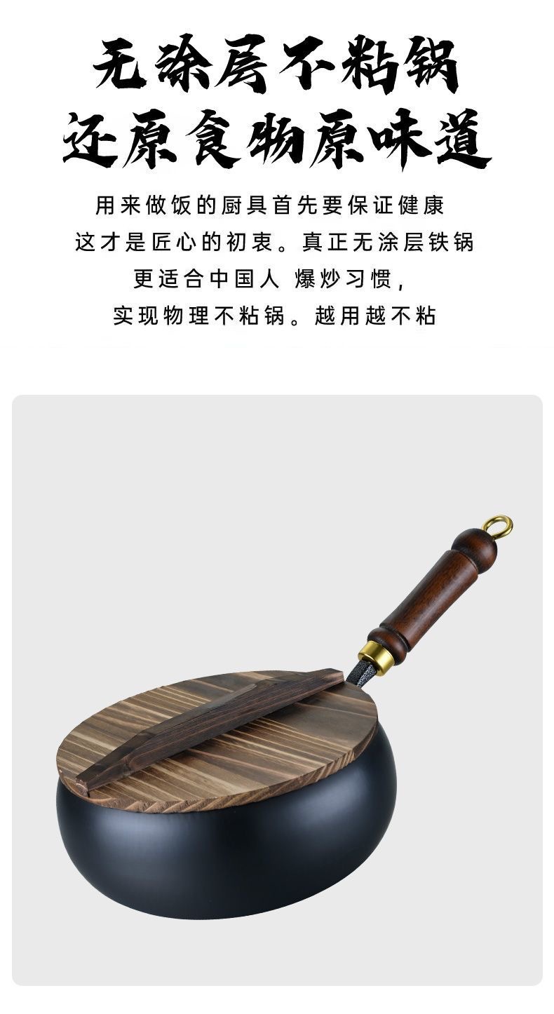 新款章丘传统古法家用大肚锅炖锅不粘汤锅电磁炉无涂层铁锅24CM