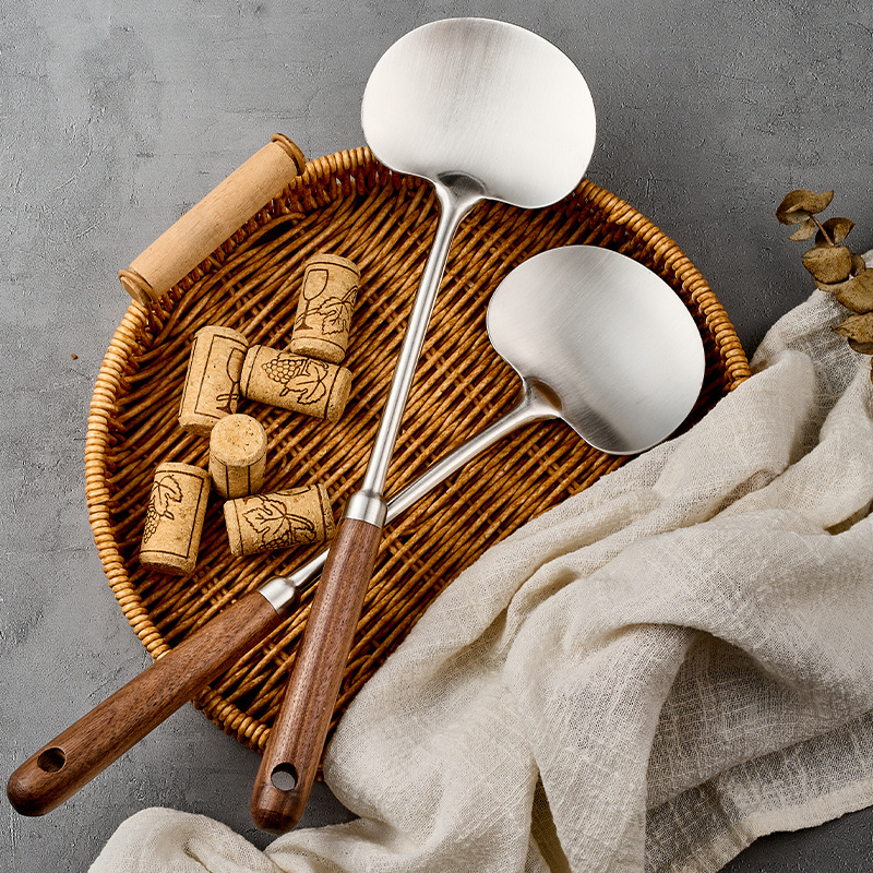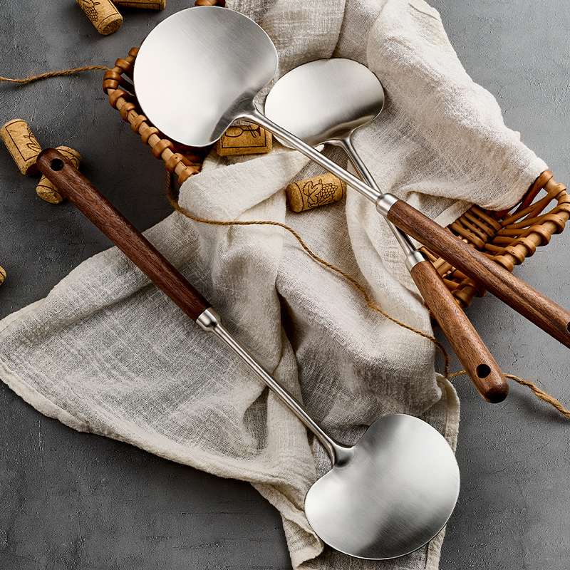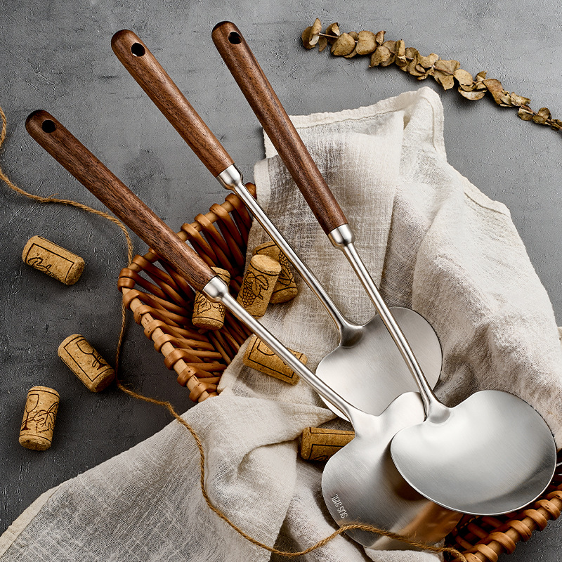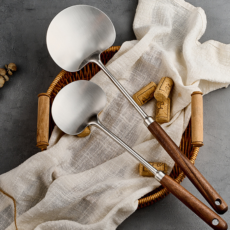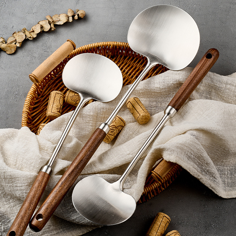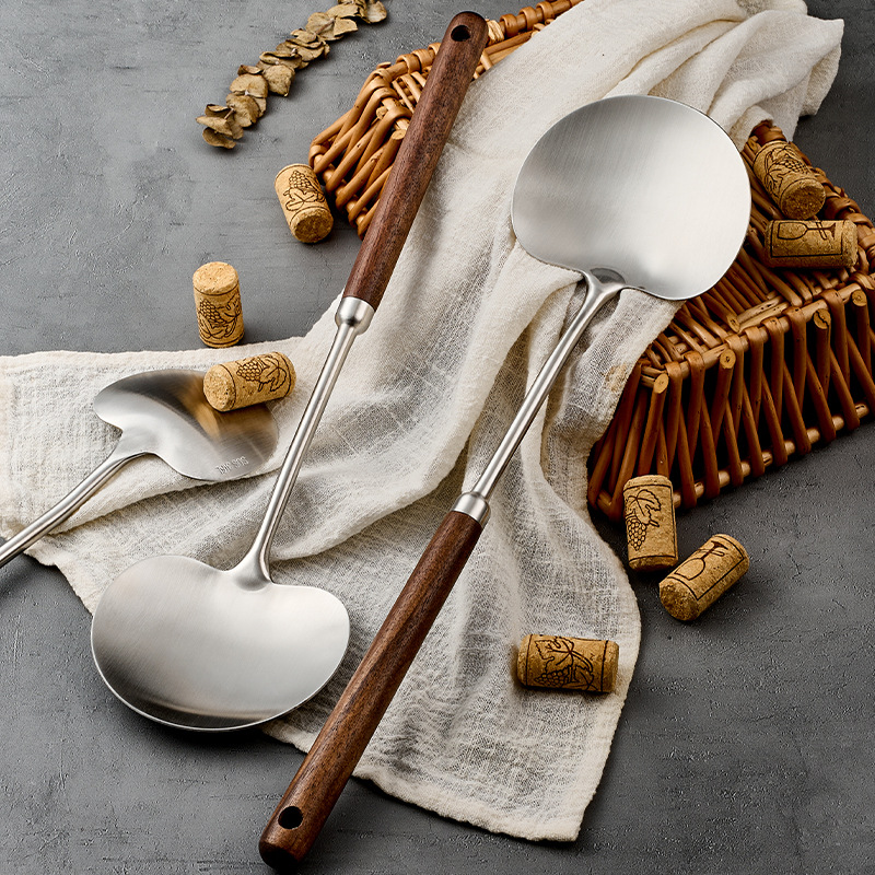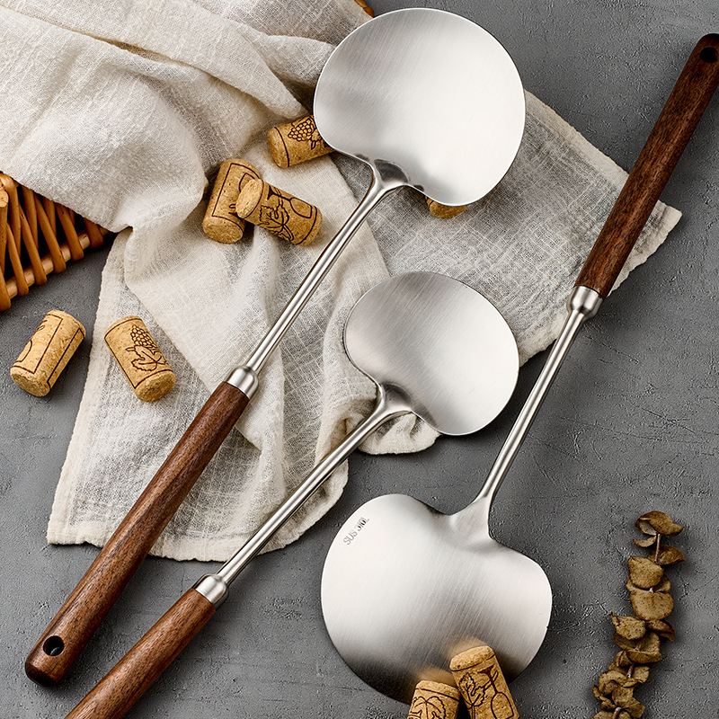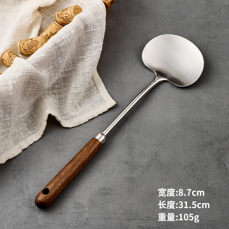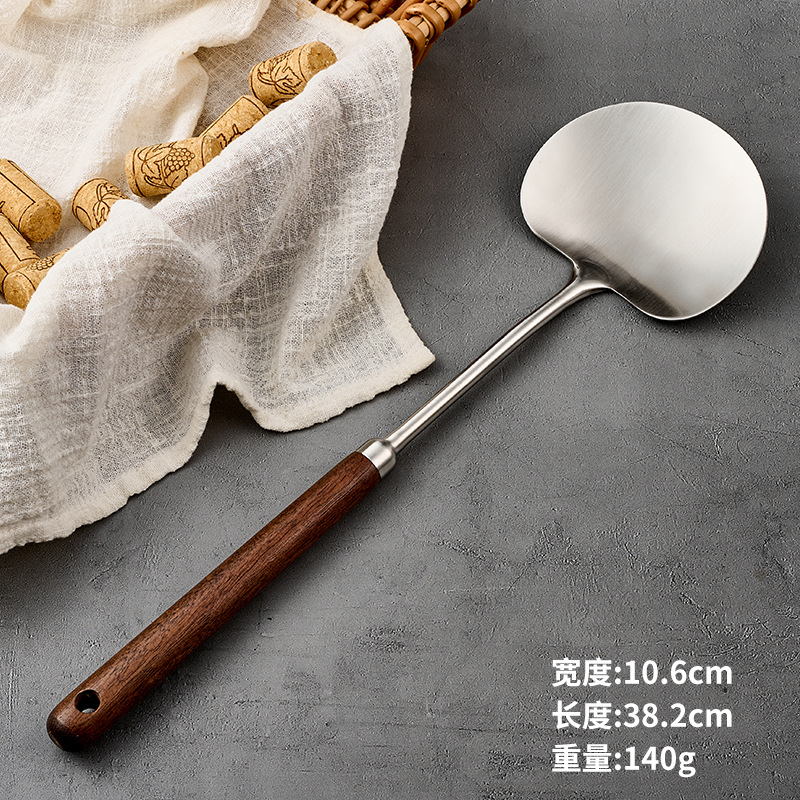 316l stainless steel walnut mushroom spatula household apple shovel kitchen spatula long handle anti-scald cooking ladel