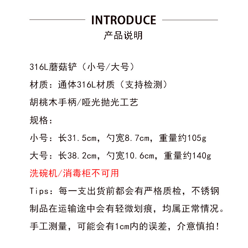 full 316l-walnut mushroom shovel [large]](全316L-胡桃木蘑菇铲【大号】) USD $3.09 50 handle available